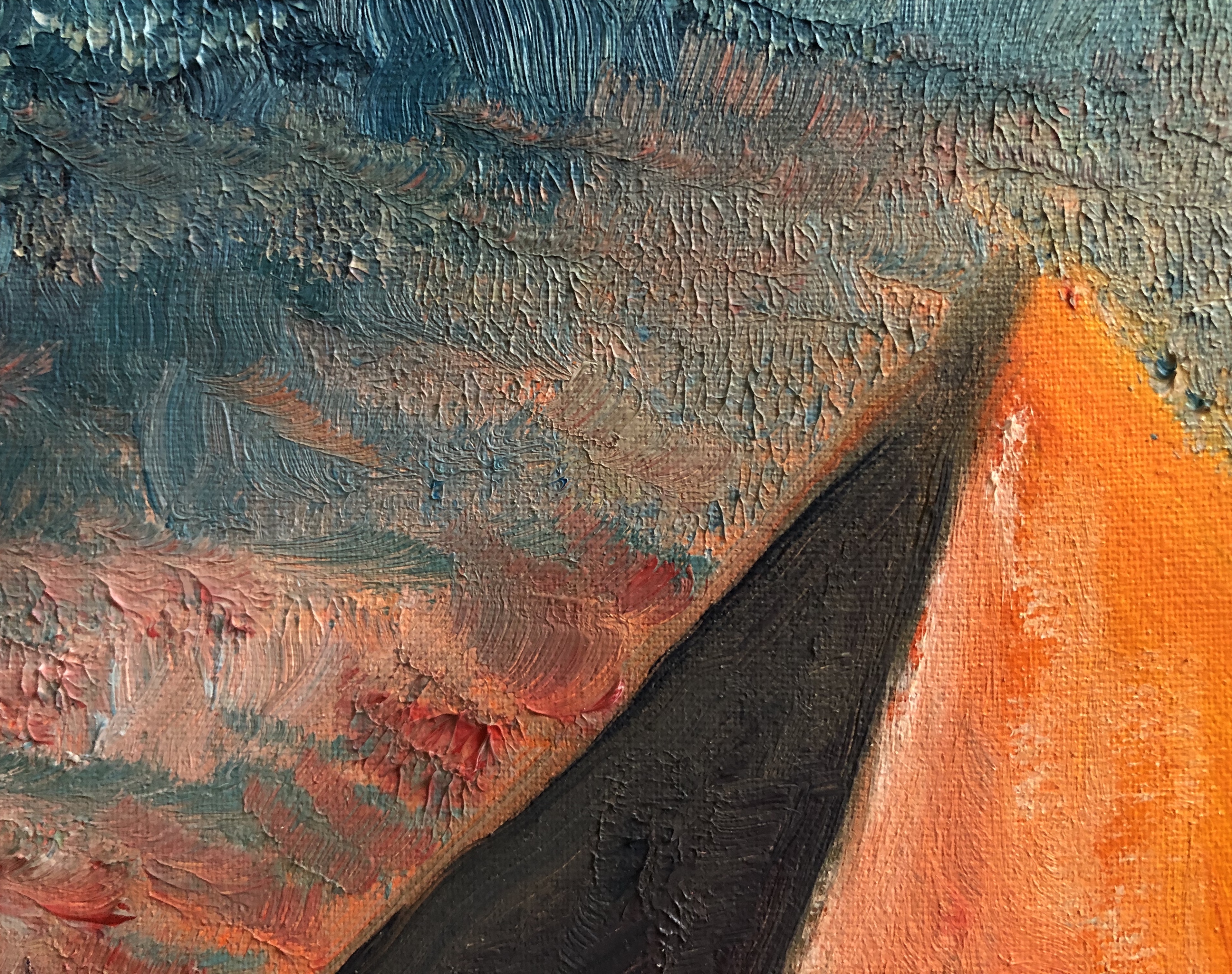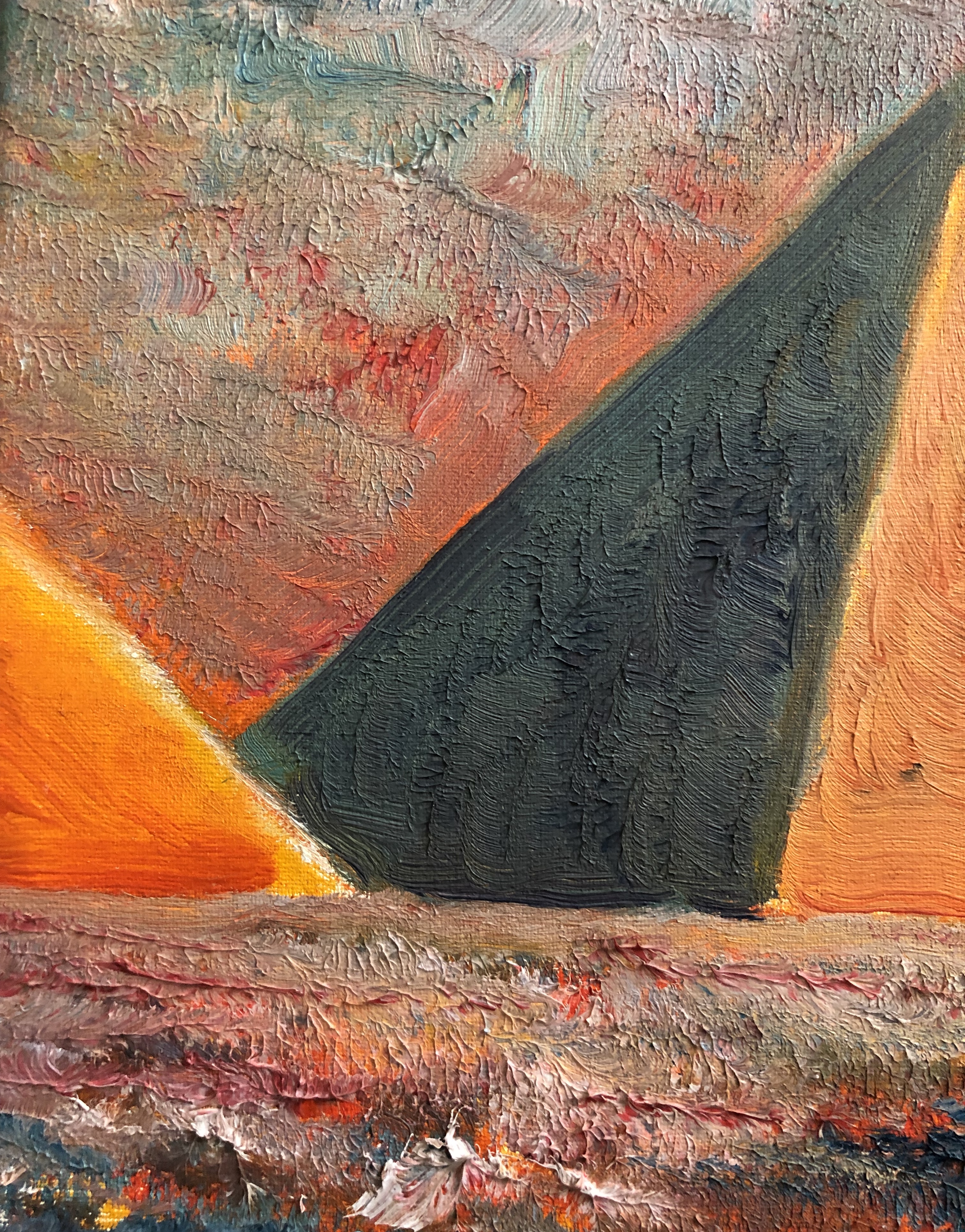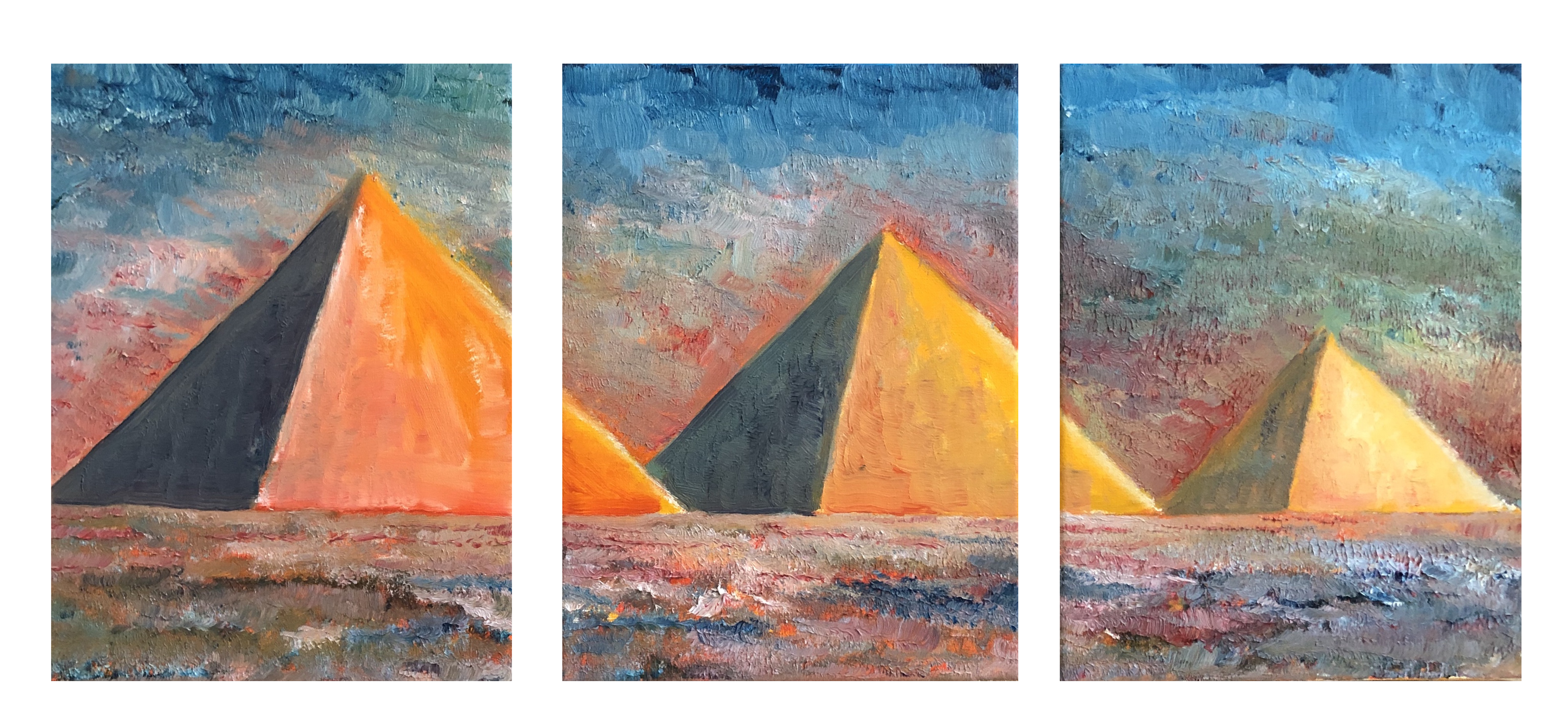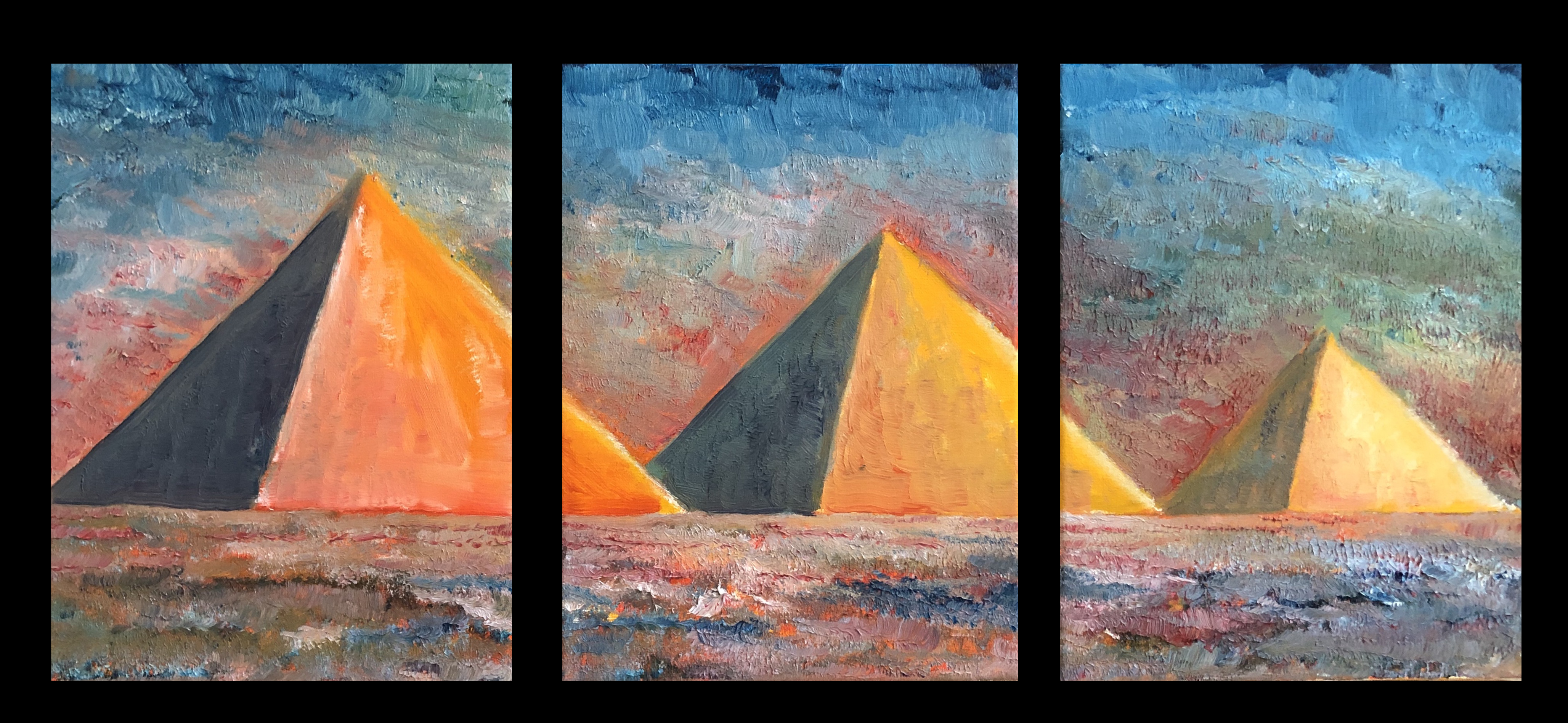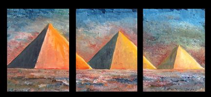 WORK MADE IN OIL COMPOSED OF A TRIPTYCH. AN EXPLOSION OF COLORS DESCRIBE A SUNSET OVER THE 3 PYRAMIDS.
