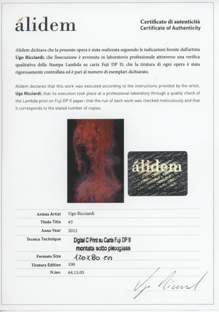 EN The Italian-Swiss photographer Ugo Ricciardi lives and works in Turin. After earning two master’s degrees in fashion photography from the Kaverdash School in Milan, he embarked on a career as a photographer, working for the photojournalism agency La Presse and as the assistant of the well-known Giuseppe Pino. During the same period, between 1998 and 2003 he was also an assistant at Fabrizio Ferri’s Superstudio Industria, where he collaborated with international professionals such as the Austrian photographer and musician Andreas Bitesnich and Bruno Bisang, internationally renowned as one of the best fashion photographers. After his time in Milan, Ricciardi returned to Turin in 2004 and focused professionally on the fields of fashion photography and advertising, collaborating with major Italian brands such as Roncato, Mondadori, Keramine H, Lisap, People Milano, Les Pieces Uniques and Luk Ap. In 2004 he also exhibited his Angeli di Pietra at Mara Granzotto’s space, Photoikon in Turin, then presenting the series the following year in Treviso (2005). In 2007 he participated in a group exhibition of the collection of works by the painter Enrico Colombotto Rosso. Between 2008 and 2012 he taught portrait photography at the Ph Libero association in Turin. At the same time, inspired by his constant trips to Africa and the United States, he began to produce personal projects, mainly probing the subjects of the fleetingness of existence and the transformation of material. In 2014 he participated in the collective exhibition entitled Un Certain Regard, promoted by the designer Walter Dang and staged at the Galleria San Federico in Turin. IT Ugo Ricciardi, di origine italo-svizzera, vive e lavora a Torino. Dopo aver conseguito due Master in Fotografia di Moda presso la Kaverdash School di Milano, avvia la sua carriera di fotografo lavorando per l’agenzia di fotogiornalismo La Presse e come assistente del noto fotografo Giuseppe Pino. Negli stessi anni, tra il 1998 il 2003, è stato anche assistente presso Superstudio Industria di Fabrizio Ferri, dove ha collaborato con professionisti internazionali come il fotografo e musicista austriaco Andreas Bitesnich e Bruno Bisang, riconosciuto internazionalmente come uno tra i migliori fotografi di moda. Dopo la parentesi milanese, nel 2004 Ugo Ricciardi rientra a Torino e si concentra professionalmente nel campo della fotografia di moda e di pubblicità, avviando collaborazioni in tutta Italia per importanti brand nazionali tra cui Roncato, Mondadori, Keramine H, Lisap, People Milano, Les Pieces Uniques e Luk Ap. Lo stesso anno, nello spazio di Mara Granzotto, il Photoikon di Torino, espone la serie Angeli di Pietra, ripresentata anche l’anno successivo a Treviso (2005). Nel 2007 prende parte a una mostra collettiva della collezione di opere del pittore Enrico Colombotto Rosso. Tra il 2008 e il 2012 è stato docente di fotografia di ritratto presso l’associazione Ph Libero a Torino e parallelamente, ispirato dai costanti viaggi in Africa e negli Stati Uniti, avvia una produzione di progetti personali, con cui affronta principalmente i temi della caducità dell’esistenza e della trasformazione della materia. Nel 2014 partecipa all’esposizione collettiva Un Certain Regard voluta dallo stilista Walter Dang e allestita presso la Galleria San Federico di Torino.