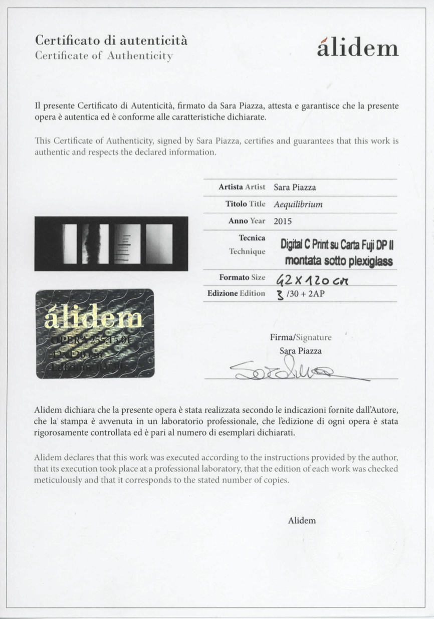 EN After graduating in Physics and Math, Sara Piazza decided to attend the Istituto Italiano di Fotografia in Milan, in order to pursue a professional career in photography. At the IIF, she had a chance to experiment all the potentialities of the photographic medium. At the end of her studies, she was selected by the Istituto Italiano di Fotografia to feature in a collective show organised on occasion of the eight edition of Photofestival, a cultural event sponsored by AIF - Associazione Italiana Foto e Digital Imaging - and part of the photo fair Photoshow (Milan, 2009). In the following years, Sara Piazza participated in several international art fairs. In 2013, her work was staged at Swab Barcelona, in 2014 and 2015 at the Affordable Art Fair Milano. Her shots have also been shown in France, at the Galerie Etienne des Causans (Paris, 2014), on occasion of the Salone Art3F (Lyon, 2015) and the Salon international d’art contemporain Art3F (Nice, 2015), and in the Netherlands at the Affordable Art Fair Amsterdam (2015). IT Dopo la laurea in Scienze Fisiche e Matematiche Sara Piazza avvia la sua carriera di fotografa professionista diplomandosi presso l’Istituto Italiano di Fotografia di Milano dove inizia molto presto a sperimentare le potenzialità del mezzo fotografico. Al termine del suo percorso formativo è selezionata dall’Istituto Italiano di Fotografia per la mostra collettiva curata in occasione dell’ottava edizione di Photofestival un evento culturale promosso da AIF - Associazione Italiana Foto e Digital Imaging – collateralmente alla fiera di fotografia Photoshow (Milano 2009). Nel corso degli anni Sara Piazza è stata protagonista di importanti fiere di arte contemporanea a livello internazionale. Nel 2013 è presente a Swab Barcelona nel 2014 e nel 2015 ad Affordable Art Fair Milano. Parallelamente agli impegni italiani le opere fotografiche di Sara raggiungono anche la Francia presso la Galerie Etienne des Causans (Parigi 2014) e in occasione del Salone Art3F (Lione 2015) e del Salon international d’art contemporain Art3F (Nizza 2015) e l’Olanda Affordable Art Fair Amsterdam (2015).