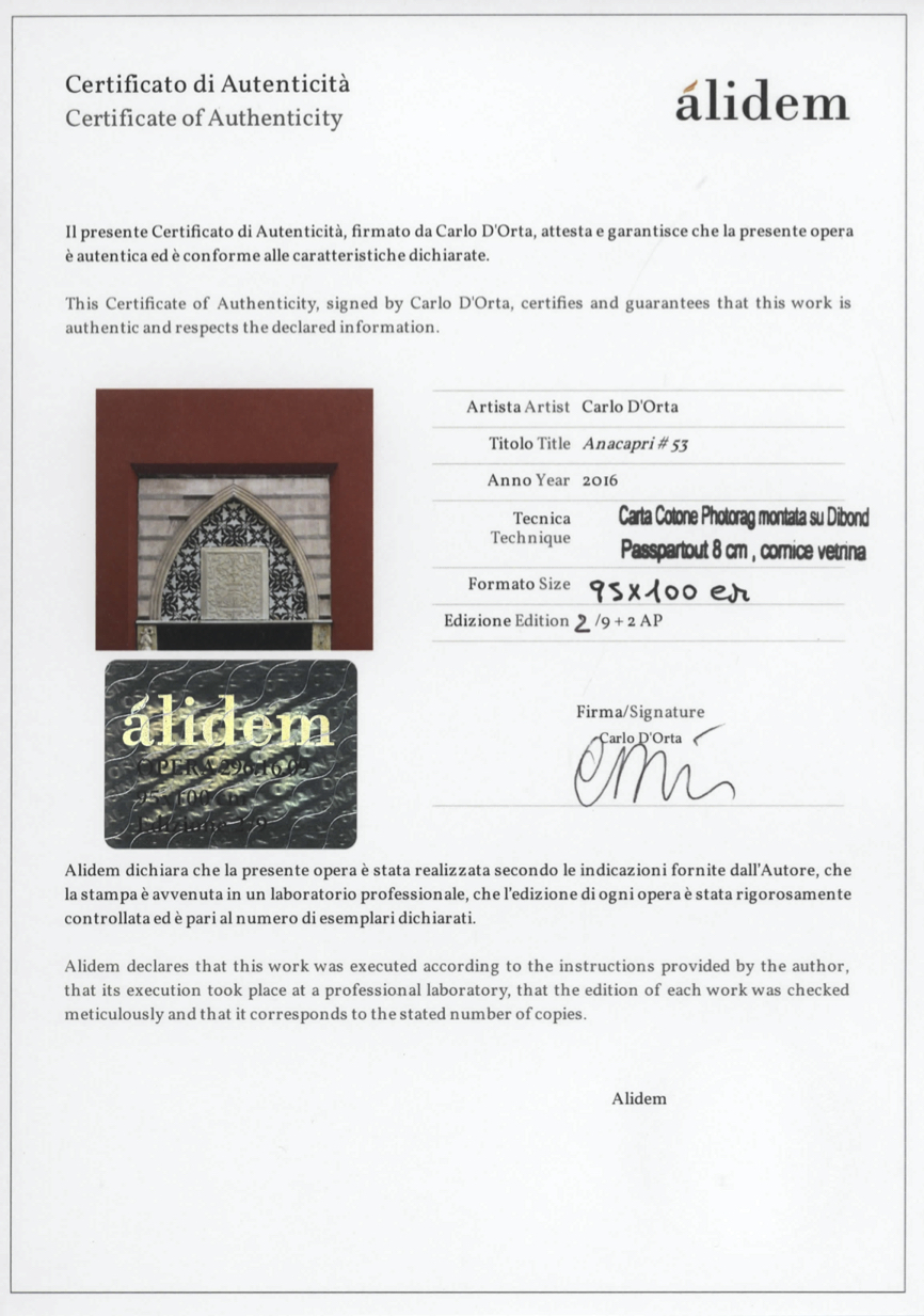 CARTA COTONE PHOTORAG MONTATA SU DIBOND, PASSPARTOUT 8 CM, CORNICE VETRINA