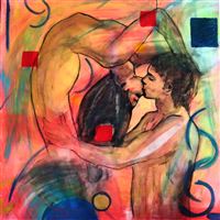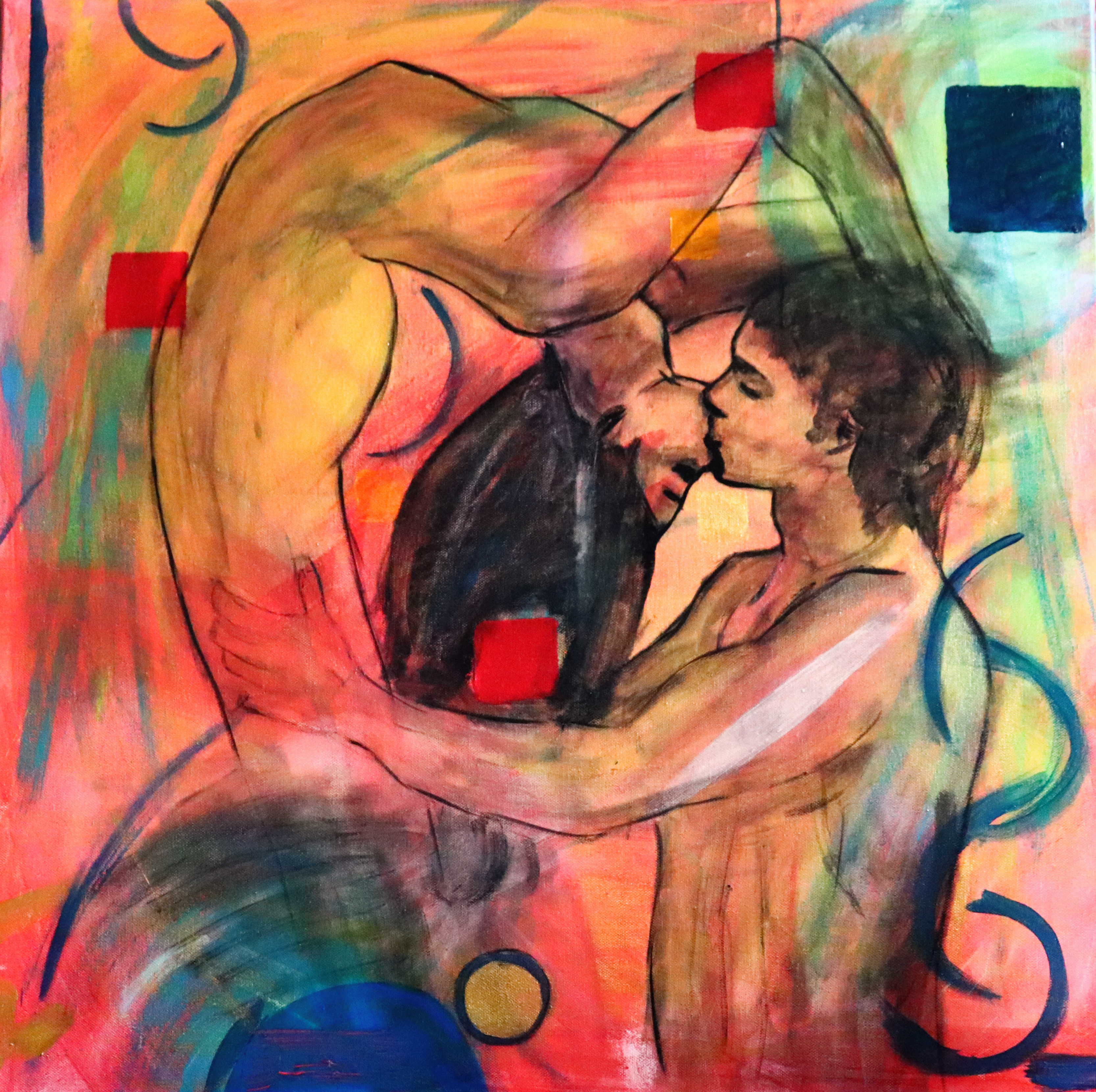 OPERA SU TELA: DUE FIGURE IN UN EQUILIBRIO DIVERSO, MAGARI ANCHE DIFFICILE, MA CHE FORMANO ARMONIA, AMORE, FELICITÀ, BENESSERE, FIDUCIA E PACE.