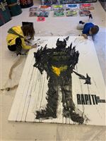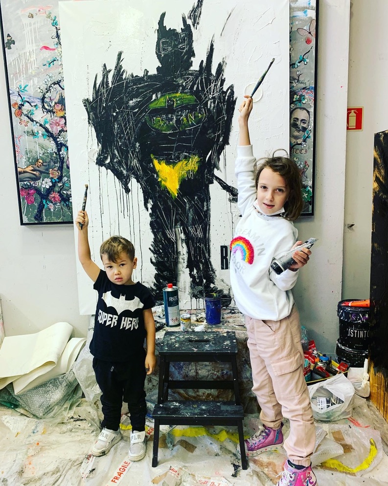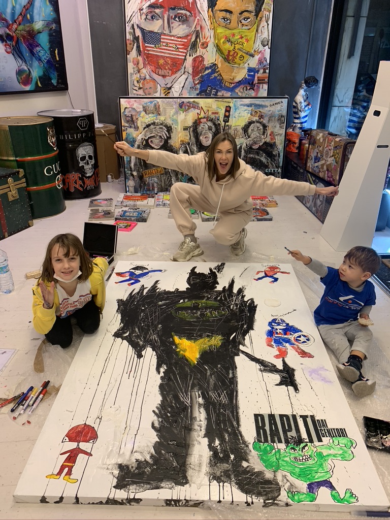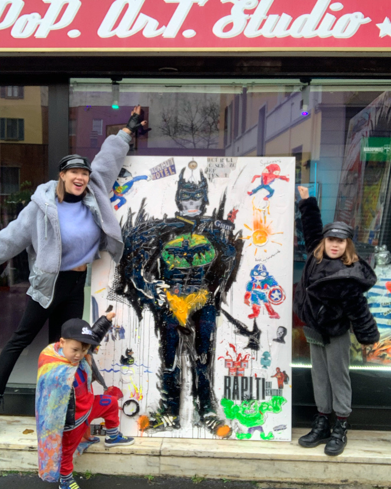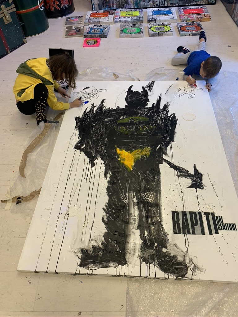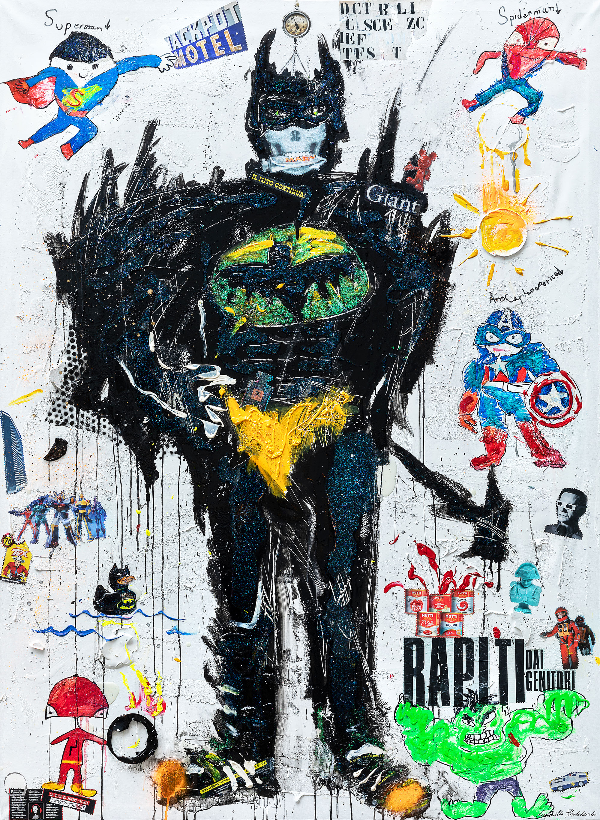 BADMAN OPERA REALIZZATA A SEI MANI.. LE MANI DELL'ARTISTA E DEI SUOI DUE FIGLI EVA E NIKITA. DUE MONDI SI INCONTRANO, QUELLO INFANTILE CON LE FANTASIE TIPICHE DEI BAMBINI E QUELLO CONTEMPORANEO CHE NE RESTITUISCE UNA VISIONE QUASI MAGICA ATTRAVERSO GLI OCCHI PULITI DELL'INFANZIA. UN GRANDE EROE, È IL PROTAGONISTA DI QUEST'OPERA, ALTO ED IMMENSO, UN GIGANTE BUONO PRONTO A PROTEGGERE PICCOLE E GRANDI PAURE . SI TRATTA DI BATMAN, UN SUPEREROE DAL CARATTERE SCONTROSO, DESTINATO A DIVENTARE L'ICONA DELL'EROE CONTEMPORANEO,UN PERSONAGGIO MISTERIOSO, AVVOLTO NEL SUO MANTELLO NERO, IN UN'ATMOSFERA IPNOTICA CHE CONTINUA AD INCANTARCI. UNA MASCHERA CHE NASCONDE L'UOMO E LE SUE IMPERFEZIONI PER RESTITUIRCI L'EROE, IN TUTTA LA SUA FORZA. UN'OPERA APPARENTEMENTE SEMPLICE NASCONDE MESSAGGI IMPORTANTI. LA DICOTOMIA UOMO-SIMBOLO DIVENTA UNA RIFLESSIONE SULLA PERSONALITÀ DELL'UOMO COMUNE, UN SEMPLICE CAMBIO DI VOCALI TRASFORMA UN UOMO CATTIVO BADMAN IN UN EROE CONTEMPORANEO, PRONTO A PROTEGGERE I SOGNI DEI MONDI MAGICI CHE POPOLANO LE FANTASIE DEI BAMBINI. GUARDIANO DELL'INSCONSIO, VEGLIERÀ INCONTRASTATO NELLE NOTTI BUIE, PRONTO A PROTEGGERE LA FRAGILITÀ DEI PIÙ PICCOLI. ARTWORK MADE BY SIX HANDS .. THE HANDS OF THE ARTIST AND HES TWO CHILDREN EVA AND NIKITA. TWO WORLDS MEET, THE INFANTILE ONE WITH THE TYPICAL CHILDREN'S FANTASIES AND THE CONTEMPORARY ONE WHICH GIVES AN ALMOST MAGICAL VISION THROUGH THE CLEAN EYES OF CHILDHOOD. A GREAT HERO IS THE PROTAGONIST OF THIS ARTWORK, TALL AND IMMENSE, A GOOD GIANT READY TO PROTECT SMALL AND LARGE FEARS. THIS IS BATMAN, A SUPERHERO WITH A GRUMPY CHARACTER, DESTINED TO BECOME THE ICON OF THE CONTEMPORARY HERO, A MYSTERIOUS CHARACTER, WRAPPED IN HIS BLACK CLOAK, IN A HYPNOTIC ATMOSPHERE THAT CONTINUES TO ENCHANT US. A MASK THAT HIDES MAN AND HIS IMPERFECTIONS TO GIVE US BACK THE HERO, IN ALL HIS STRENGTH. A SEEMINGLY SIMPLE ARTWORK HIDES IMPORTANT MESSAGES. THE MAN-SYMBOL DICHOTOMY BECOMES A REFLECTION ON THE PERSONALITY OF THE COMMON MAN, A SIMPLE CHANGE OF VOWELS TRANSFORMS A BAD MAN BADMAN INTO A CONTEMPORARY HERO, READY TO PROTECT THE DREAMS OF THE MAGICAL WORLDS THAT POPULATE THE FANTASIES OF CHILDREN. GUARDIAN OF THE UNCONSCIOUS, HE WILL WATCH UNDISPUTED IN THE DARK NIGHTS, READY TO PROTECT THE FRAGILITY OF THE LITTLE ONES.