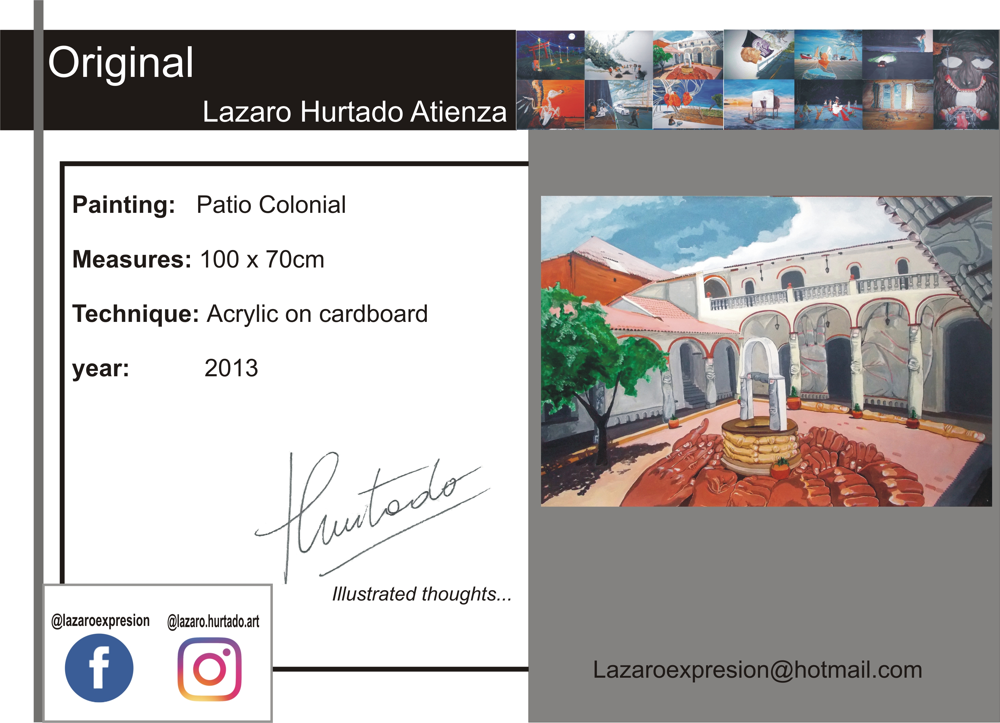 Lázaro Hurtado is an argentinian artist currently living in Buenos Aires, Argentina, were he works .Graduate Fine arts “ Bachillerato de Bellas Artes “ affiliated National University of La Plata. He states than more than an artist, he is a thinker.His work born from the necesity of expressing thoughts and conceptions of the World that surrounds him. The images he offers us project humanistic messages, the nature of mankind, the possible and the ridiculous. He makes comments about reality and the social forces and orders, but at the same time he demostrates a playful face, ironic in some cases. The transcription of inner alchemies into paintings of surrealist character wakes a curiosity in the viewer. The spectators would often find themselves been tickle by the ideas and concepts on reality and human behaviour that he seems to contemplate and rebuilt on his mind. The images you see are the working mechanics of a brain on a mind made world... Media: www.facebook.com/lazaroexpresion http://lazaro-hurtado.pixels.com http://www.redbubble.com/people/lazarohurtado https://twitter.com/lazaroexpresion 2019 _ Bio-Art Contest winner Excellence Prize . Seoul, South korea _ Premios a la Creación Artistica. Universidad de Belgrano. 27° Edición. Buenos Aires 2018 _ Artplu and Artron Art Auction: Western Modern & Contemporary Art _Picturesque Hotel . Wuxi, China 2017 _ X-Power Gallery Taipei . Taiwan _ Shenzhen International Art Fair. China _ Secoo 707 Deco Art Festival. China _ Artplu & Yidian China Art Auction:Western Contemporary Art Auction. China _ Art Nanjing- Baijiahu Art Mansion. China _ Art revolution Taipei 2017. Taiwan _ Get Art Museum Taipei, Taiwan 2016 _ Eggo Art Fair . Buenos Aires. _ ‘Thoughts’ curated by Tintin Yue JCCAC . Hong Kong _ 22 Salon de Pintura Palermo Viejo. Newbery Central Gallery. _ ‘Out of Gallery’ Hilton Hotel. Nanjin City. China _ Art Suning Plaza Collective Exhibition China _ Exposition at School Freud Lacan La Plata . Argentina 2015 _ Premio a la Creación Artística Universidad de Belgrano Buenos Aires _ Ar(t)gentina and Friends Castello Di Coazzolo (AT) Piemonte Italy _ Ar(t)gentina and Friends Pinacoteca Civica Camo ? Museo di Camo (CN) Piemonte Italy _ Ar(t)gentina and Friends Badnight Café Temporary Home Art Gallery Turín Italy _ ‘Illustrated thoughts’ Instituto de Capacitación Política. Argentina _ Museum of Contemporary Art, Artplu Shanghái, China _ 'Art on the Clouds', The Blue Skyline, Camphorwood, Wuxi City, China. _ " VIDEO KILLED THE ART STAR #2 "Spazio Arte 24, Via Corte 24, Dogliani Italy _ Tokyo International Art Fair Digital showcase Quest Hall Harajuku , Tokyo, Japan . _ Art Revolution Taipei 2015 Taiwan _ Arte La Plata stand unipersonal Argentina _ ‘ Colours of the World’ International Collective Exposition Bellas Artes. Museum And Academy., Bs As Argentina _ Motor Village Gallery City of Turin. Italy_ _ "il colori latini nell'arte contemporanea" Mondovi Piazza City of Mondovi, Cuneo, Italy 2014 _ ‘Becoming Conscience’ Cultural Centre Islas Malvinas Bs.As. Argentina _ 160th Stock Market Anniversary Buenos Aires. Argentina _ 1st Salón Municipal de Ilustration .La Plata . Argentina _ That Damned Show Detroit 2014 with a fineart canvas print ‘Lost sometimes’ USA