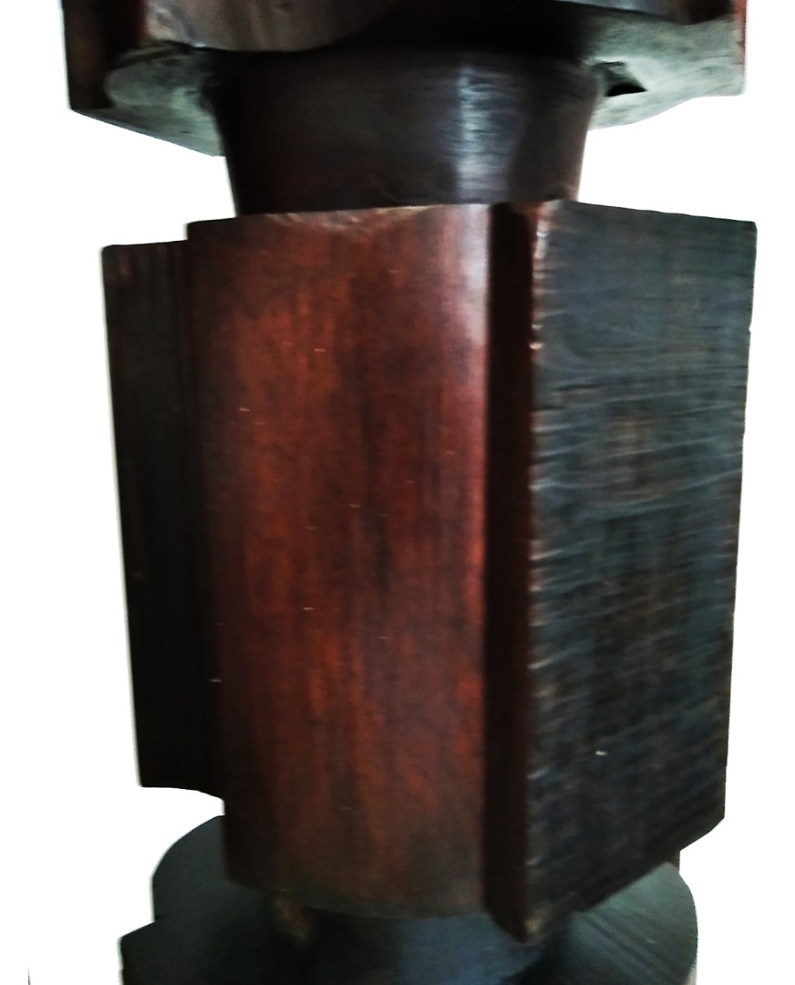 MADERA TALLADA Y CON UN MÓDULO DE RESINA CENTRAL Y ENSAMBLADA Y ELEMENTO METÁLICO TORNILLO EN SU PARTE SUPERIOR