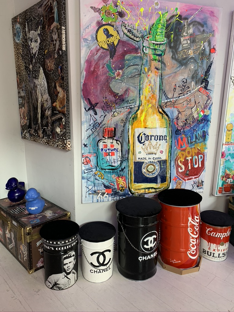 SERIE VOYAGE NATA NEI MESI CHE HANNO CONTRADDISTINTO LE FASI DELLA DIFFUSIONE DEL COVID 19, QUESTA SERIE ATTRAVERSA CON IRONICA POSITIVITÀ I MOMENTI PIÙ DRAMMATICI DI QUESTA COMPLESSA FASE DI PORTATA MONDIALE. CONCEPITA PRIMA ANCORA DEL DIFFONDERSI DELLA PANDEMIA, QUASI COME SE FOSSE STATA ANTICIPATA DAL PENSIERO DELLA RADCHENKO, HA LA FORZA DI TRASPORTARCI ATTRAVERSO CITTÀ AMMALIANTI SVUOTATE DALL'ENERGIA DELLA QUOTIDIANITÀ, E VIAGGI CARICHI DI SPERANZA, CHE CI FANNO VOLARE IN ALTO PROPRIO COME QUELLA MONGOLFIERA CARICA DI SOGNI. UN AMORE DIVERSO, E UN BACIO SENZA CONTATTO, AFFRONTANO TEMATICHE CONTEMPORANEE DI DIFFICILE ACCETTAZIONE. L'ARTE DELLA RADCHENKO, HA IL POTERE RIGENERANTE DELLA RINASCITA, RACCONTATO IN UN QUADRO SIMBOLICO "IL RISVEGLIO DOPO LA CONFUSIONE" CHE SI CONFRONTA CON IL DRAMMA DELLA PANDEMIA, LASCIANDOCI SEMPRE UNA SPERANZA DI NUOVI INIZI, PROPRIO COME I SUOI PICCOLI FIORI CHE SBOCCIANO COLORANDO IL GRIGIO DEL TEMPO. L'AMORE AI TEMPI DEL CORONA VIRUS, RACCONTATO IN QUEST'OPERA DECISAMENTE EMBLEMATICA DEL TEMPO IN CUI VIVIAMO. LA MARCA DELLA FAMOSA BIRRA RICHIAMA PER OMONIMIA, I FATTI DI ATTUALITÀ ASCOLTATI NEI TELEGIORNALI E VISSUTI DA TUTTI NOI. UN BACIO SCAMBIATO ATTRAVERSO UNA MASCHERINA, DIVENTA IL "CORONA KISS " TITOLO DELL'OPERA. DUE AMANTI QUASI SFOCATI, COME SE FOSSERO NASCOSTI, LASCIANO IL POSTO D'ONORE ALLA BOTTIGLIA DI BIRRA CHE DIVENTA LA PROTAGONISTA DELL'OPERA, COSÌ COME IL CORONA VIRUS LO È DIVENTATO DELLE NOSTRE VITE E NELLE NOSTRE CITTÀ. UNA MILANO, SI RACCONTA , NEI SUOI MONUMENTI SIMBOLO, POSTI SULLO SFONDO, COME SE CI FOSSIMO DIMENTICATI DELLA BELLEZZA DI QUESTA CITTÀ, NON VISSUTA PER IMPOSIZIONI. MILANO SI FERMA, MA ACCANTO ALLA CARTELLONISTICA "STOP" LA RADCHENKO HA POSTO LA SCRITTA "DON'T " , COME AD INNEGGIARE UNA RESISTENZA SILENZIOSA CHE CI PORTERÀ NUOVAMENTE A VIVERE IL NOSTRO TEMPO E IL NOSTRO SPAZIO SENZA VINCOLI NÈ RESTRIZIONI VOYAGE SERIES BORN IDURING THOSE MONTHS THAT MARKED THE PHASES OF THE SPREAD OF COVID 19, THIS SERIES GOES THROUGH THE MOST DRAMATIC MOMENTS OF THIS COMPLEX GLOBAL PHASE WITH IRONIC POSITIVITY. CONCEIVED EVEN BEFORE THE SPREAD OF THE PANDEMIC, ALMOST AS IF IT HAD BEEN ANTICIPATED BY THE THOUGHT OF RADCHENKO, IT HAS THE STRENGTH TO TRANSPORT US THROUGH FASCINATING CITIES EMPTIED OF THE ENERGY OF EVERYDAY LIFE, AND JOURNEYS FULL OF HOPE, WHICH MAKE US FLY HIGH JUST LIKE THAT BALLOON FULL OF DREAMS. A DIFFERENT LOVE, AND A KISS WITHOUT CONTACTLESS, FACE CONTEMPORARY ISSUES THAT ARE DIFFICULT TO ACCEPT. RADCHENKO'S ART HAS THE REGENERATING POWER OF REBIRTH, TOLD IN A SYMBOLIC PAINTING "THE AWAKENING AFTER THE CONFUSION" THAT CONFRONTS THE TRAGEDY OF THE PANDEMIC, ALWAYS LEAVING US WITH HOPE OF NEW BEGINNINGS, JUST LIKE HER LITTLE BLOSSOMING FLOWERS COLORING THE GRAY OF TIME. LOVE DURING THE TIME OF THE CORONA VIRUS, TOLD IN THIS DECIDEDLY EMBLEMATIC ARTWORK OF THE TIME IN WHICH WE LIVE. THE BRAND OF THE FAMOUS BEER REFERS BY HOMONYMY TO THE CURRENT EVENTS HEARD ON THE NEWS AND EXPERIENCED BY ALL OF US. A KISS THROUGH A MASK BECOMES THE TITLE OF THE ARTWORK "CORONA KISS". TWO BLURRED LOVERS, AS IF THEY WERE HIDDEN, GIVE PRIDE OF PLACE TO THE BOTTLE OF BEER THAT BECOMES THE PROTAGONIST OF THE ARTWORK, JUST AS THE CORONA VIRUS HAS BECOME IT IN OUR LIVES AND IN OUR CITIES. MILAN, IT IS SAID, IN ITS SYMBOLIC MONUMENTS, PLACED IN THE BACKGROUND, AS IF WE HAD FORGOTTEN THE BEAUTY OF THIS CITY, NOT LIVED BY IMPOSITIONS. MILAN STOPS, BUT RADCHENKO HAS PLACED THE WORDS "DON'T" NEXT TO THE "STOP" SIGNS, AS IF TO PRAISE A SILENT RESISTANCE THAT WILL LEAD US ONCE AGAIN TO LIVE OUR TIME AND OUR SPACE WITHOUT CONSTRAINTS OR RESTRICTIONS