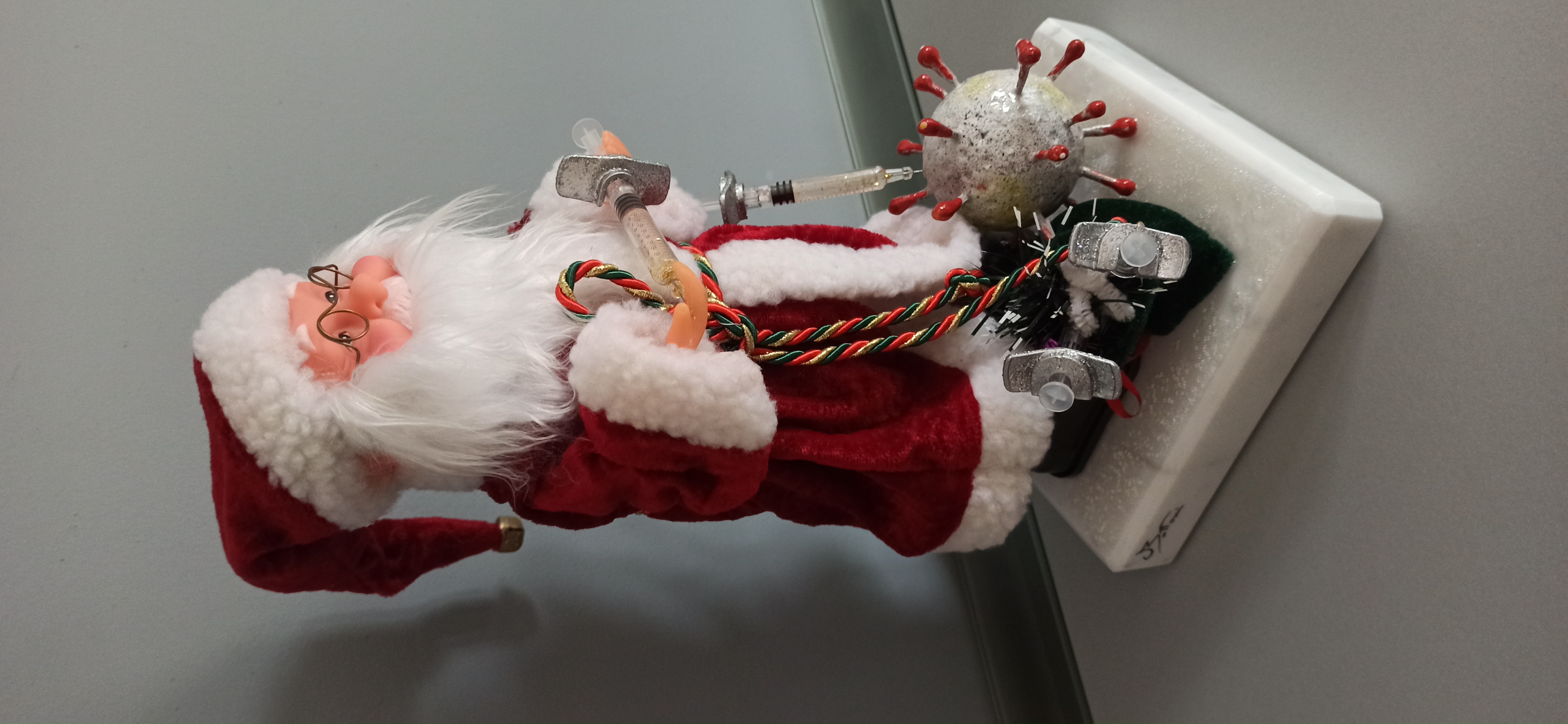 OPERA UNICA REALIZZATA CON TECNICA MISTA. QUEST' ANNO BABBO NATALE PORTERÀ IL REGALO PIÙ BELLO DI SEMPRE A TUTTO IL MONDO. L' OPERA RAPPRESENTA UN MESSAGGIO DI SPERANZA E FIDUCIA A TUTTE LE POPOLAZIONI COLPITE DAL CORONAVIRUS ...CE LA FAREMO A CREARE UN VACCINO PER SCONFIGGERLO !