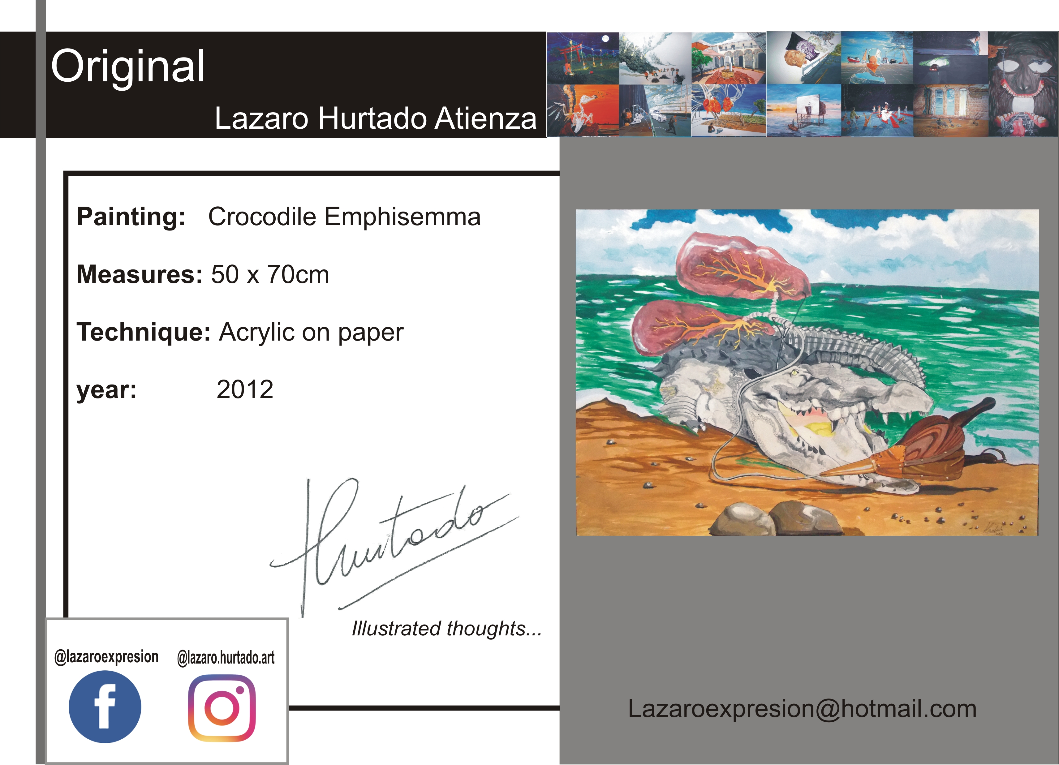 Lázaro Hurtado is an argentinian artist currently living in Buenos Aires, Argentina, were he works .Graduate Fine arts “ Bachillerato de Bellas Artes “ affiliated National University of La Plata. He states than more than an artist, he is a thinker.His work born from the necesity of expressing thoughts and conceptions of the World that surrounds him. The images he offers us project humanistic messages, the nature of mankind, the possible and the ridiculous. He makes comments about reality and the social forces and orders, but at the same time he demostrates a playful face, ironic in some cases. The transcription of inner alchemies into paintings of surrealist character wakes a curiosity in the viewer. The spectators would often find themselves been tickle by the ideas and concepts on reality and human behaviour that he seems to contemplate and rebuilt on his mind. The images you see are the working mechanics of a brain on a mind made world... Media: www.facebook.com/lazaroexpresion http://lazaro-hurtado.pixels.com http://www.redbubble.com/people/lazarohurtado https://twitter.com/lazaroexpresion 2019 _ Bio-Art Contest winner Excellence Prize . Seoul, South korea _ Premios a la Creación Artistica. Universidad de Belgrano. 27° Edición. Buenos Aires 2018 _ Artplu and Artron Art Auction: Western Modern & Contemporary Art _Picturesque Hotel . Wuxi, China 2017 _ X-Power Gallery Taipei . Taiwan _ Shenzhen International Art Fair. China _ Secoo 707 Deco Art Festival. China _ Artplu & Yidian China Art Auction:Western Contemporary Art Auction. China _ Art Nanjing- Baijiahu Art Mansion. China _ Art revolution Taipei 2017. Taiwan _ Get Art Museum Taipei, Taiwan 2016 _ Eggo Art Fair . Buenos Aires. _ ‘Thoughts’ curated by Tintin Yue JCCAC . Hong Kong _ 22 Salon de Pintura Palermo Viejo. Newbery Central Gallery. _ ‘Out of Gallery’ Hilton Hotel. Nanjin City. China _ Art Suning Plaza Collective Exhibition China _ Exposition at School Freud Lacan La Plata . Argentina 2015 _ Premio a la Creación Artística Universidad de Belgrano Buenos Aires _ Ar(t)gentina and Friends Castello Di Coazzolo (AT) Piemonte Italy _ Ar(t)gentina and Friends Pinacoteca Civica Camo ? Museo di Camo (CN) Piemonte Italy _ Ar(t)gentina and Friends Badnight Café Temporary Home Art Gallery Turín Italy _ ‘Illustrated thoughts’ Instituto de Capacitación Política. Argentina _ Museum of Contemporary Art, Artplu Shanghái, China _ 'Art on the Clouds', The Blue Skyline, Camphorwood, Wuxi City, China. _ " VIDEO KILLED THE ART STAR #2 "Spazio Arte 24, Via Corte 24, Dogliani Italy _ Tokyo International Art Fair Digital showcase Quest Hall Harajuku , Tokyo, Japan . _ Art Revolution Taipei 2015 Taiwan _ Arte La Plata stand unipersonal Argentina _ ‘ Colours of the World’ International Collective Exposition Bellas Artes. Museum And Academy., Bs As Argentina _ Motor Village Gallery City of Turin. Italy_ _ "il colori latini nell'arte contemporanea" Mondovi Piazza City of Mondovi, Cuneo, Italy 2014 _ ‘Becoming Conscience’ Cultural Centre Islas Malvinas Bs.As. Argentina _ 160th Stock Market Anniversary Buenos Aires. Argentina _ 1st Salón Municipal de Ilustration .La Plata . Argentina _ That Damned Show Detroit 2014 with a fineart canvas print ‘Lost sometimes’ USA