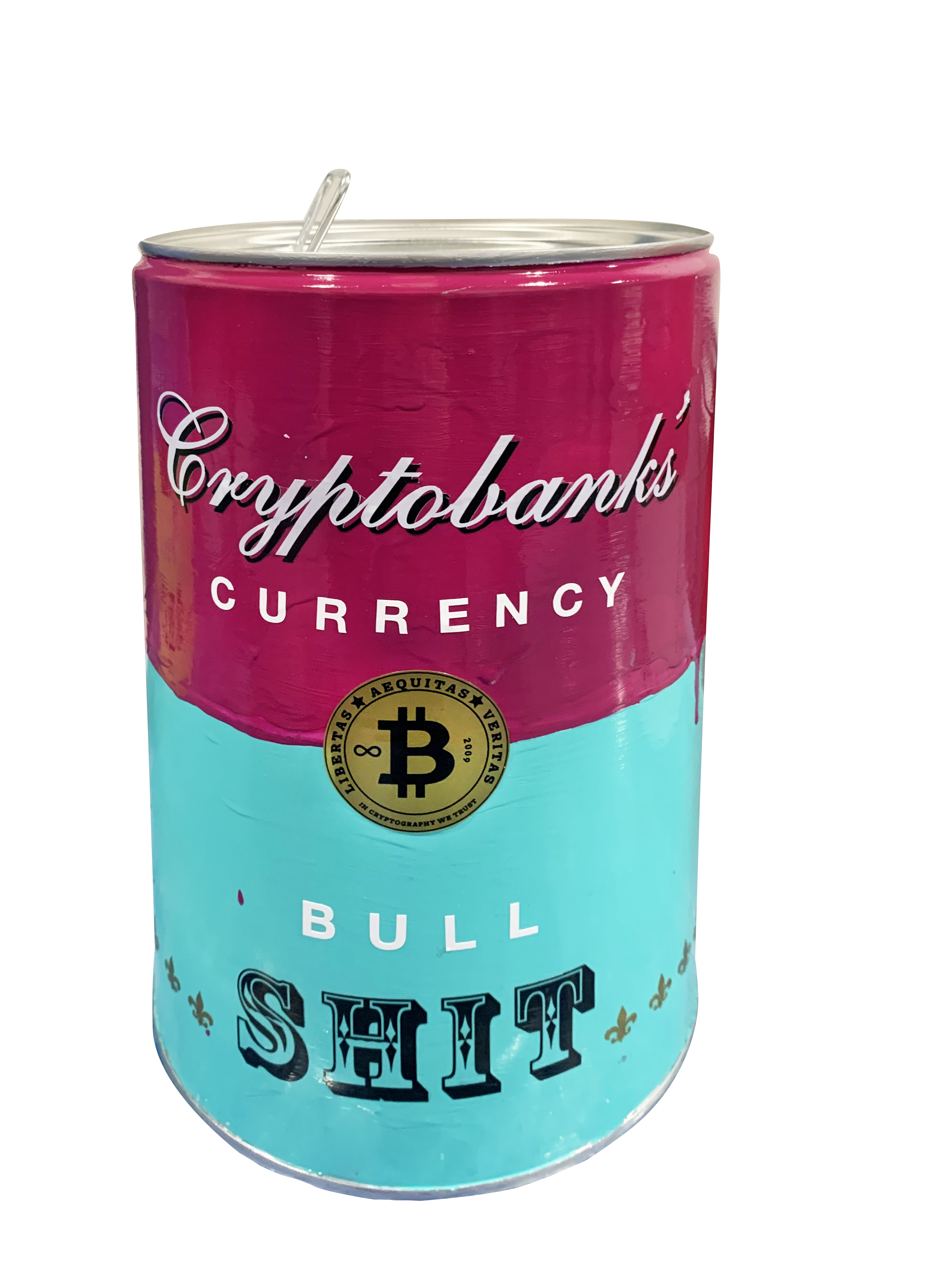 CRYPTOBANKS, È UN PROGETTO REALIZZATO IN ESCLUSIVA PER LA GALLERIA GAM ART, CHE COMMISSIONA A LUDMILLA RADCHENKO LA REINTERPRETAZIONE DELLE ICONICHE LATTINE "CAMPELL'S SOUP" NEI DIECI PANTONI TIPICI DELLA SUA CORRENTE ARTISTICA. L’ARTISTA SIBERIANA PRENDE SPUNTO DAL MONDO CHE LA AFFASCINA IN QUESTO MOMENTO QUELLO DELLE CRIPTOVALUTE. NASCONO COSÌ I CONTENITORI - POP, LIMITED EDITION COMPOSTI DA MASSIMO 100 PEZZI UNICI CHE DIVENTANO UN SALVADANAIO DI CRIPTOVALUTA, ACQUISENDO UN SIGNIFICATO CONCETTUALE CHE GIOCA SULL'ESISTENZA DI UNA MONETA CONTEMPORANEA, CHE NON HA UNA FORMA TANGIBILE, MA VIENE CUSTODITA VIRTUALMENTE IN UN "PIGGY BANK". L'IDEA SI FOCALIZZA SULL'UTILIZZO DI BARATTOLI RICICLATI, CON RIFERIMENTI A PIERO MANZONI, E LA SUA FAMOSA METAFORA "MERDA D'ARTISTA". OGNI PEZZO È REALIZZATO INTERAMENTE A MANO, E LA SUA UNICITÀ SARÀ GARANTITA DA UN CERTIFICATO DIGITALE CHE, GRAZIE ALLA TECNOLOGIA BLOCKCHAIN, DARÀ UN VALORE AGGIUNTO AD OGNI PEZZO. E COME UNA CIGLIEGINA SULLA TORTA, LUDMILLA TROVA IL MODO DI PRODURRE ADDIRITTURA UNA MONETA PERSONALIZZATA, DANDO UN'ABBREVIAZIONE AL CONCETTO ARTISTICO DI BITCOIN FIRMATA CON LE PROPRI INIZIALI. CRYPTOBANKS, IS A PROJECT CREATED EXCLUSIVELY FOR THE GAM ART GALLERY, WHICH COMMISSIONS LUDMILLA RADCHENKO TO REINTERPRET THE ICONIC "CAMPELL'S SOUP" CANS IN THE TEN PANTONES TYPICAL OF HER ARTISTIC MOVEMENT. THE SIBERIAN ARTIST TAKES INSPIRATION FROM THE WORLD THAT FASCINATES HER AT THE MOMENT, THAT OF CRYPTOCURRENCIES. THIS IS HOW THE CONTAINERS - POP, LIMITED EDITION COMPOSED OF UP TO 100 UNIQUE PIECES BECOME A CRYPTOCURRENCY PIGGY BANK, ACQUIRING A CONCEPTUAL MEANING THAT PLAYS ON THE EXISTENCE OF A CONTEMPORARY COIN, WHICH DOES NOT HAVE A TANGIBLE SHAPE, BUT IS VIRTUALLY KEPT IN A " PIGGY BANK ". THE IDEA FOCUSES ON THE USE OF RECYCLED CANS, WITH REFERENCES TO PIERO MANZONI, AND HIS FAMOUS METAPHOR "ARTIST'S SHIT". EACH PIECE IS MADE ENTIRELY BY HAND, AND ITS UNIQUENESS WILL BE GUARANTEED BY A DIGITAL CERTIFICATE WHICH, THANKS TO THE BLOCKCHAIN TECHNOLOGY, WILL GIVE ADDED VALUE TO EACH PIECE. AND LIKE A CHERRY ON A CAKE, LUDMILLA FINDS A WAY TO EVEN PRODUCE A PERSONALIZED COIN, GIVING AN ABBREVIATION TO THE ARTISTIC CONCEPT OF BITCOIN SIGNED WITH HER INITIALS