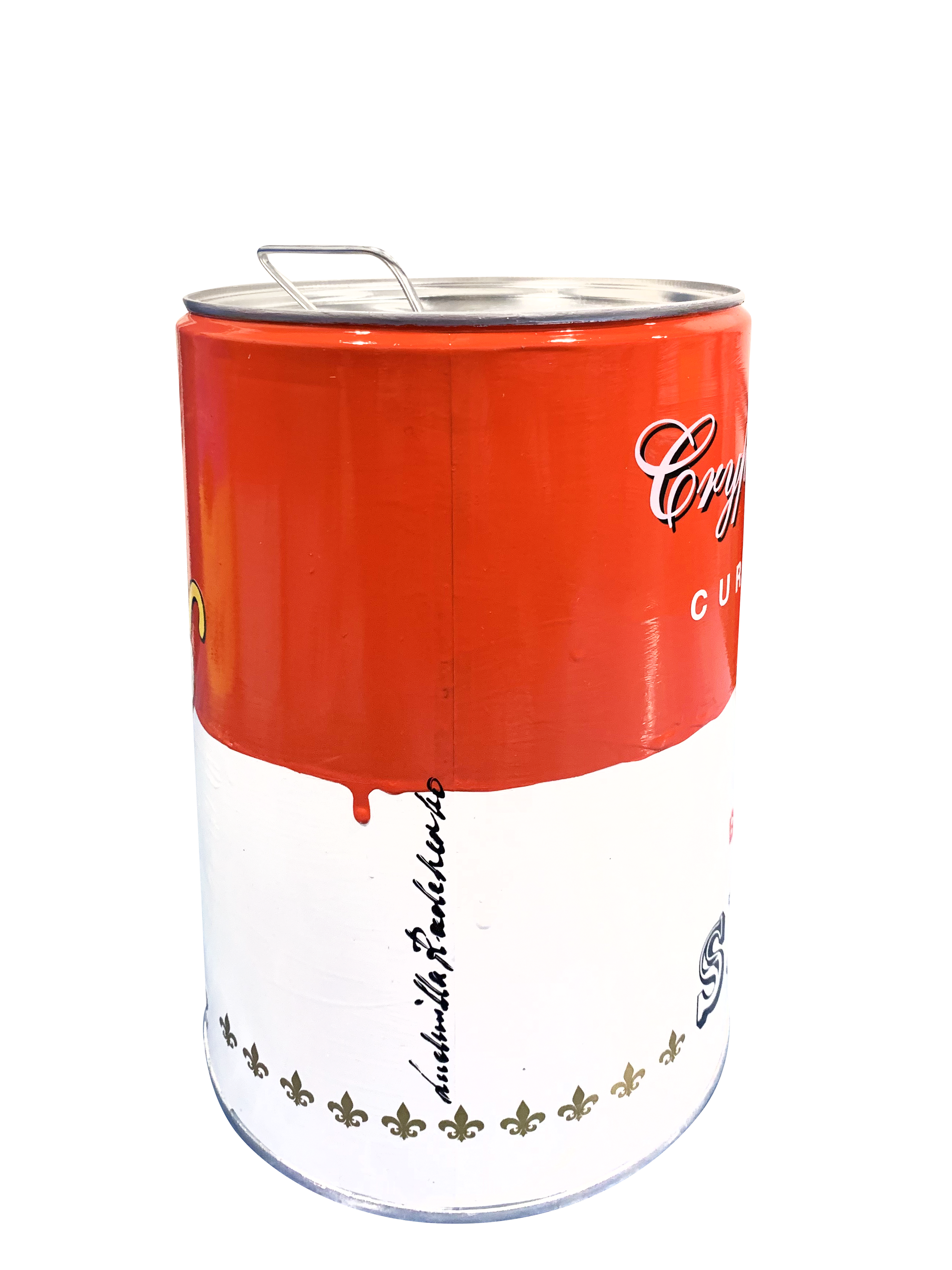 CRYPTOBANKS, È UN PROGETTO REALIZZATO IN ESCLUSIVA PER LA GALLERIA GAM ART, CHE COMMISSIONA A LUDMILLA RADCHENKO LA REINTERPRETAZIONE DELLE ICONICHE LATTINE "CAMPELL'S SOUP" NEI DIECI PANTONI TIPICI DELLA SUA CORRENTE ARTISTICA. L’ARTISTA SIBERIANA PRENDE SPUNTO DAL MONDO CHE LA AFFASCINA IN QUESTO MOMENTO QUELLO DELLE CRIPTOVALUTE. NASCONO COSÌ I CONTENITORI - POP, LIMITED EDITION COMPOSTI DA MASSIMO 100 PEZZI UNICI CHE DIVENTANO UN SALVADANAIO DI CRIPTOVALUTA, ACQUISENDO UN SIGNIFICATO CONCETTUALE CHE GIOCA SULL'ESISTENZA DI UNA MONETA CONTEMPORANEA, CHE NON HA UNA FORMA TANGIBILE, MA VIENE CUSTODITA VIRTUALMENTE IN UN "PIGGY BANK". L'IDEA SI FOCALIZZA SULL'UTILIZZO DI BARATTOLI RICICLATI, CON RIFERIMENTI A PIERO MANZONI, E LA SUA FAMOSA METAFORA "MERDA D'ARTISTA". OGNI PEZZO È REALIZZATO INTERAMENTE A MANO, E LA SUA UNICITÀ SARÀ GARANTITA DA UN CERTIFICATO DIGITALE CHE, GRAZIE ALLA TECNOLOGIA BLOCKCHAIN, DARÀ UN VALORE AGGIUNTO AD OGNI PEZZO. E COME UNA CIGLIEGINA SULLA TORTA, LUDMILLA TROVA IL MODO DI PRODURRE ADDIRITTURA UNA MONETA PERSONALIZZATA, DANDO UN'ABBREVIAZIONE AL CONCETTO ARTISTICO DI BITCOIN FIRMATA CON LE PROPRI INIZIALI. CRYPTOBANKS, IS A PROJECT CREATED EXCLUSIVELY FOR THE GAM ART GALLERY, WHICH COMMISSIONS LUDMILLA RADCHENKO TO REINTERPRET THE ICONIC "CAMPELL'S SOUP" CANS IN THE TEN PANTONES TYPICAL OF HER ARTISTIC MOVEMENT. THE SIBERIAN ARTIST TAKES INSPIRATION FROM THE WORLD THAT FASCINATES HER AT THE MOMENT, THAT OF CRYPTOCURRENCIES. THIS IS HOW THE CONTAINERS - POP, LIMITED EDITION COMPOSED OF UP TO 100 UNIQUE PIECES BECOME A CRYPTOCURRENCY PIGGY BANK, ACQUIRING A CONCEPTUAL MEANING THAT PLAYS ON THE EXISTENCE OF A CONTEMPORARY COIN, WHICH DOES NOT HAVE A TANGIBLE SHAPE, BUT IS VIRTUALLY KEPT IN A " PIGGY BANK ". THE IDEA FOCUSES ON THE USE OF RECYCLED CANS, WITH REFERENCES TO PIERO MANZONI, AND HIS FAMOUS METAPHOR "ARTIST'S SHIT". EACH PIECE IS MADE ENTIRELY BY HAND, AND ITS UNIQUENESS WILL BE GUARANTEED BY A DIGITAL CERTIFICATE WHICH, THANKS TO THE BLOCKCHAIN TECHNOLOGY, WILL GIVE ADDED VALUE TO EACH PIECE. AND LIKE A CHERRY ON A CAKE, LUDMILLA FINDS A WAY TO EVEN PRODUCE A PERSONALIZED COIN, GIVING AN ABBREVIATION TO THE ARTISTIC CONCEPT OF BITCOIN SIGNED WITH HER INITIALS