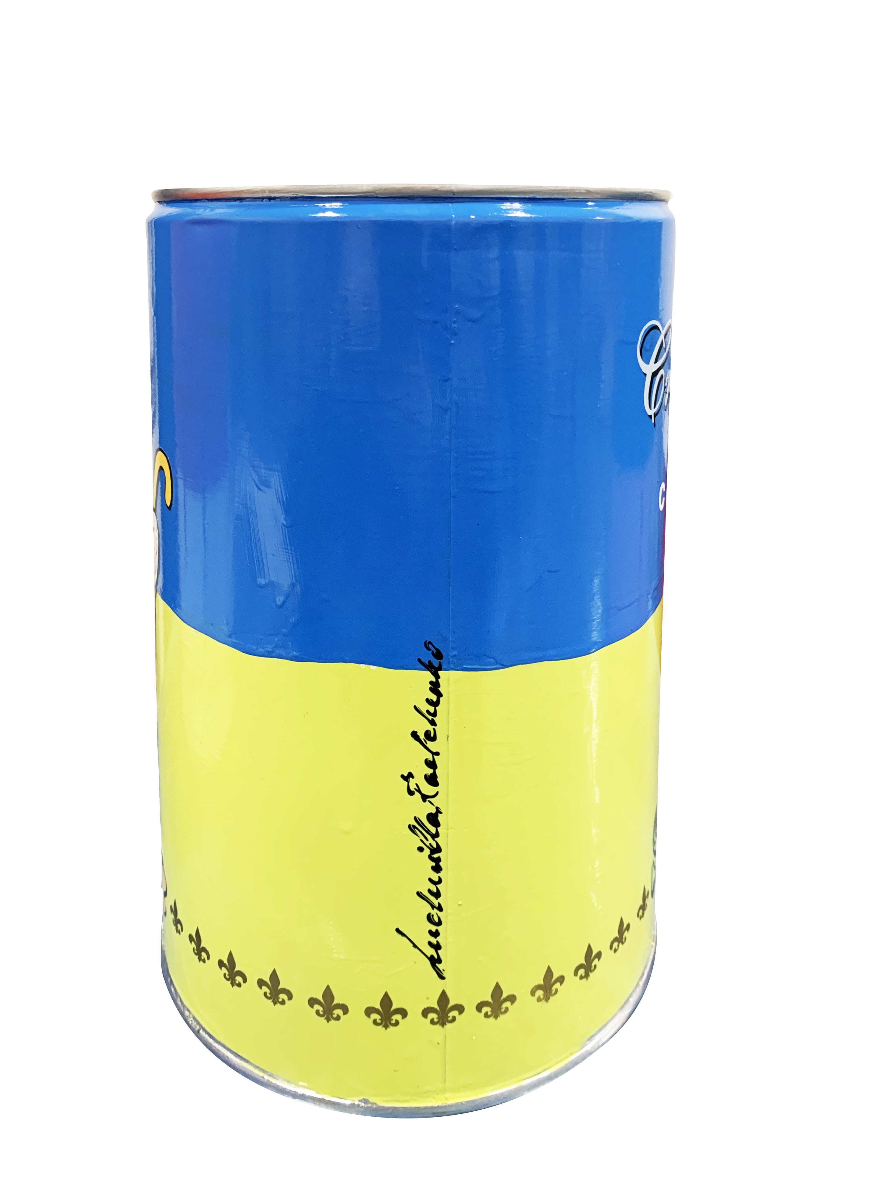 TECHNIQUE: COLLAGE, ACRYLIC, RESIN ON RECICLED CAN