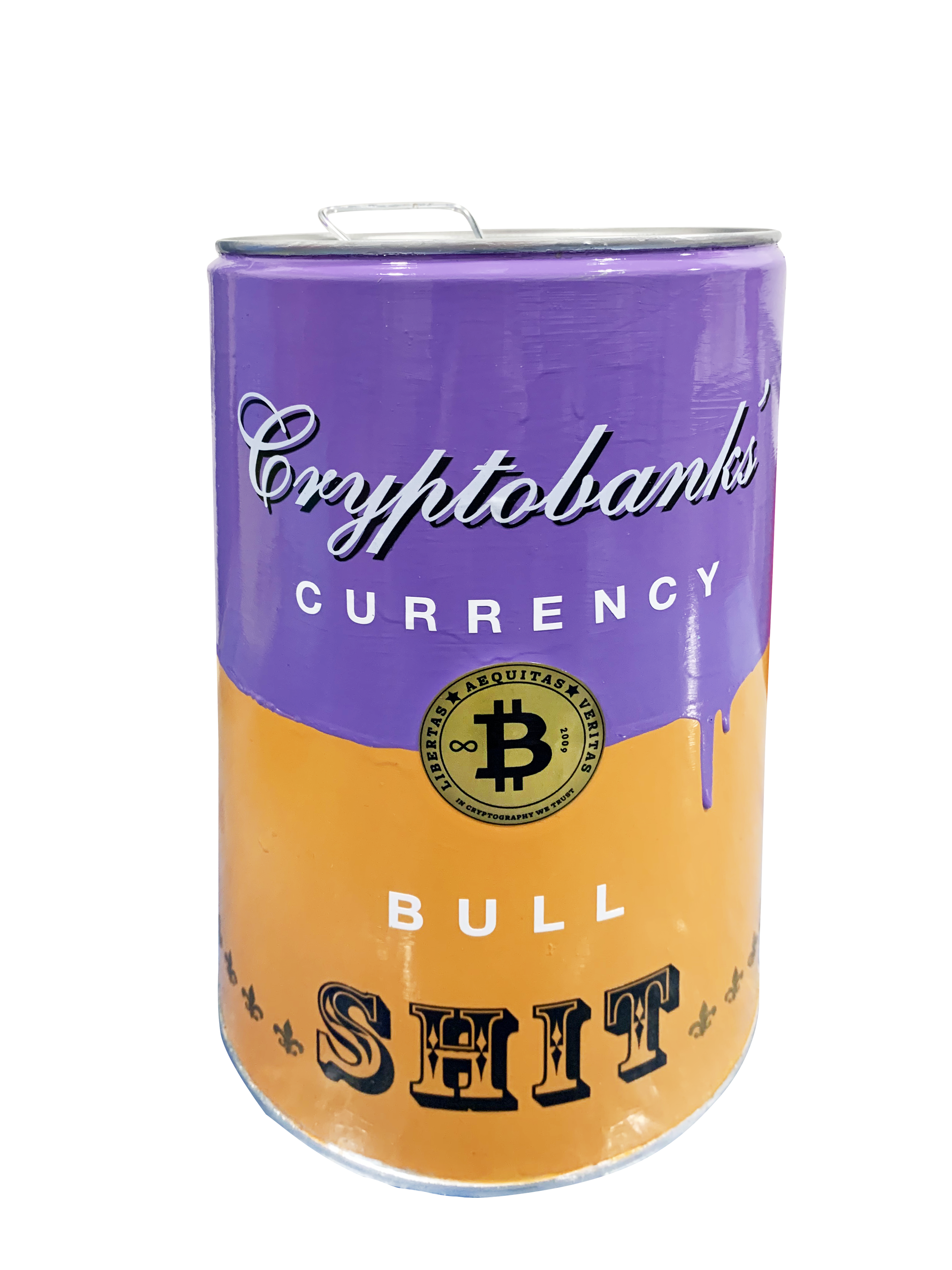 CRYPTOBANKS, È UN PROGETTO REALIZZATO IN ESCLUSIVA PER LA GALLERIA GAM ART, CHE COMMISSIONA A LUDMILLA RADCHENKO LA REINTERPRETAZIONE DELLE ICONICHE LATTINE "CAMPELL'S SOUP" NEI DIECI PANTONI TIPICI DELLA SUA CORRENTE ARTISTICA. L’ARTISTA SIBERIANA PRENDE SPUNTO DAL MONDO CHE LA AFFASCINA IN QUESTO MOMENTO QUELLO DELLE CRIPTOVALUTE. NASCONO COSÌ I CONTENITORI - POP, LIMITED EDITION COMPOSTI DA MASSIMO 100 PEZZI UNICI CHE DIVENTANO UN SALVADANAIO DI CRIPTOVALUTA, ACQUISENDO UN SIGNIFICATO CONCETTUALE CHE GIOCA SULL'ESISTENZA DI UNA MONETA CONTEMPORANEA, CHE NON HA UNA FORMA TANGIBILE, MA VIENE CUSTODITA VIRTUALMENTE IN UN "PIGGY BANK". L'IDEA SI FOCALIZZA SULL'UTILIZZO DI BARATTOLI RICICLATI, CON RIFERIMENTI A PIERO MANZONI, E LA SUA FAMOSA METAFORA "MERDA D'ARTISTA". OGNI PEZZO È REALIZZATO INTERAMENTE A MANO, E LA SUA UNICITÀ SARÀ GARANTITA DA UN CERTIFICATO DIGITALE CHE, GRAZIE ALLA TECNOLOGIA BLOCKCHAIN, DARÀ UN VALORE AGGIUNTO AD OGNI PEZZO. E COME UNA CIGLIEGINA SULLA TORTA, LUDMILLA TROVA IL MODO DI PRODURRE ADDIRITTURA UNA MONETA PERSONALIZZATA, DANDO UN'ABBREVIAZIONE AL CONCETTO ARTISTICO DI BITCOIN FIRMATA CON LE PROPRI INIZIALI. CRYPTOBANKS, IS A PROJECT CREATED EXCLUSIVELY FOR THE GAM ART GALLERY, WHICH COMMISSIONS LUDMILLA RADCHENKO TO REINTERPRET THE ICONIC "CAMPELL'S SOUP" CANS IN THE TEN PANTONES TYPICAL OF HER ARTISTIC MOVEMENT. THE SIBERIAN ARTIST TAKES INSPIRATION FROM THE WORLD THAT FASCINATES HER AT THE MOMENT, THAT OF CRYPTOCURRENCIES. THIS IS HOW THE CONTAINERS - POP, LIMITED EDITION COMPOSED OF UP TO 100 UNIQUE PIECES BECOME A CRYPTOCURRENCY PIGGY BANK, ACQUIRING A CONCEPTUAL MEANING THAT PLAYS ON THE EXISTENCE OF A CONTEMPORARY COIN, WHICH DOES NOT HAVE A TANGIBLE SHAPE, BUT IS VIRTUALLY KEPT IN A " PIGGY BANK ". THE IDEA FOCUSES ON THE USE OF RECYCLED CANS, WITH REFERENCES TO PIERO MANZONI, AND HIS FAMOUS METAPHOR "ARTIST'S SHIT". EACH PIECE IS MADE ENTIRELY BY HAND, AND ITS UNIQUENESS WILL BE GUARANTEED BY A DIGITAL CERTIFICATE WHICH, THANKS TO THE BLOCKCHAIN TECHNOLOGY, WILL GIVE ADDED VALUE TO EACH PIECE. AND LIKE A CHERRY ON A CAKE, LUDMILLA FINDS A WAY TO EVEN PRODUCE A PERSONALIZED COIN, GIVING AN ABBREVIATION TO THE ARTISTIC CONCEPT OF BITCOIN SIGNED WITH HER INITIALS