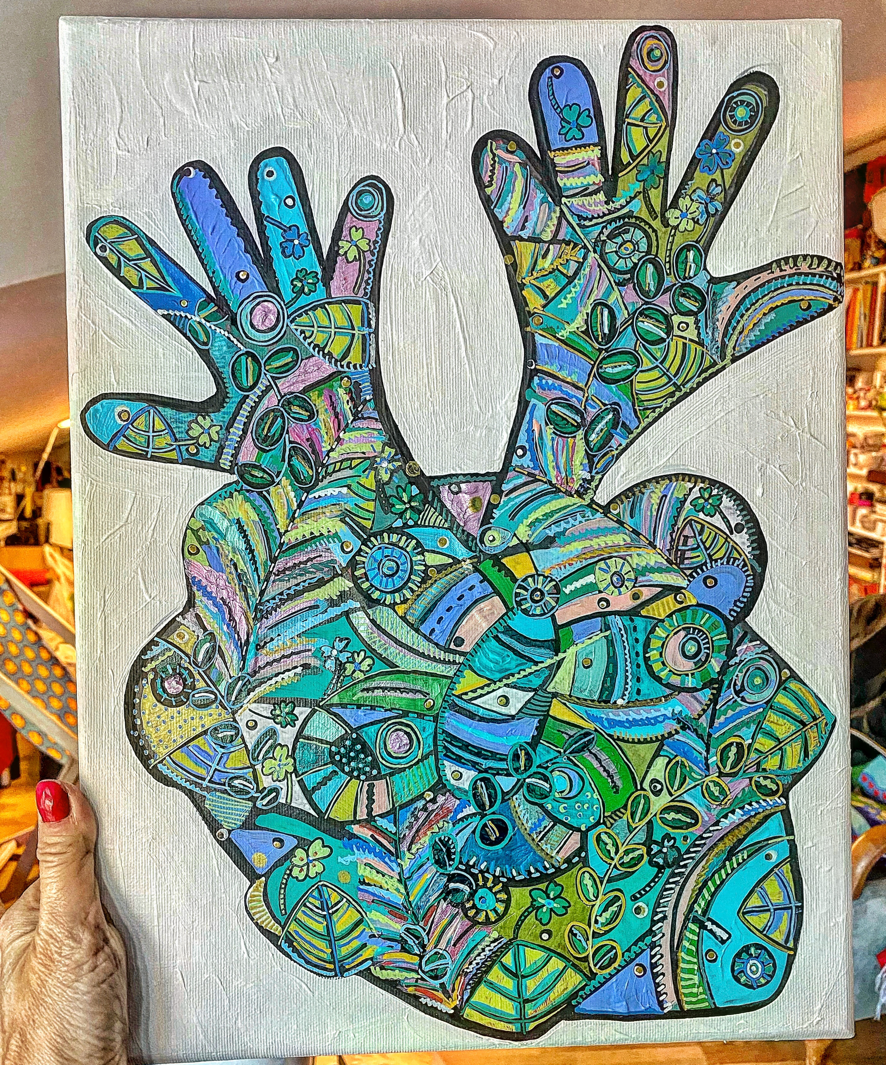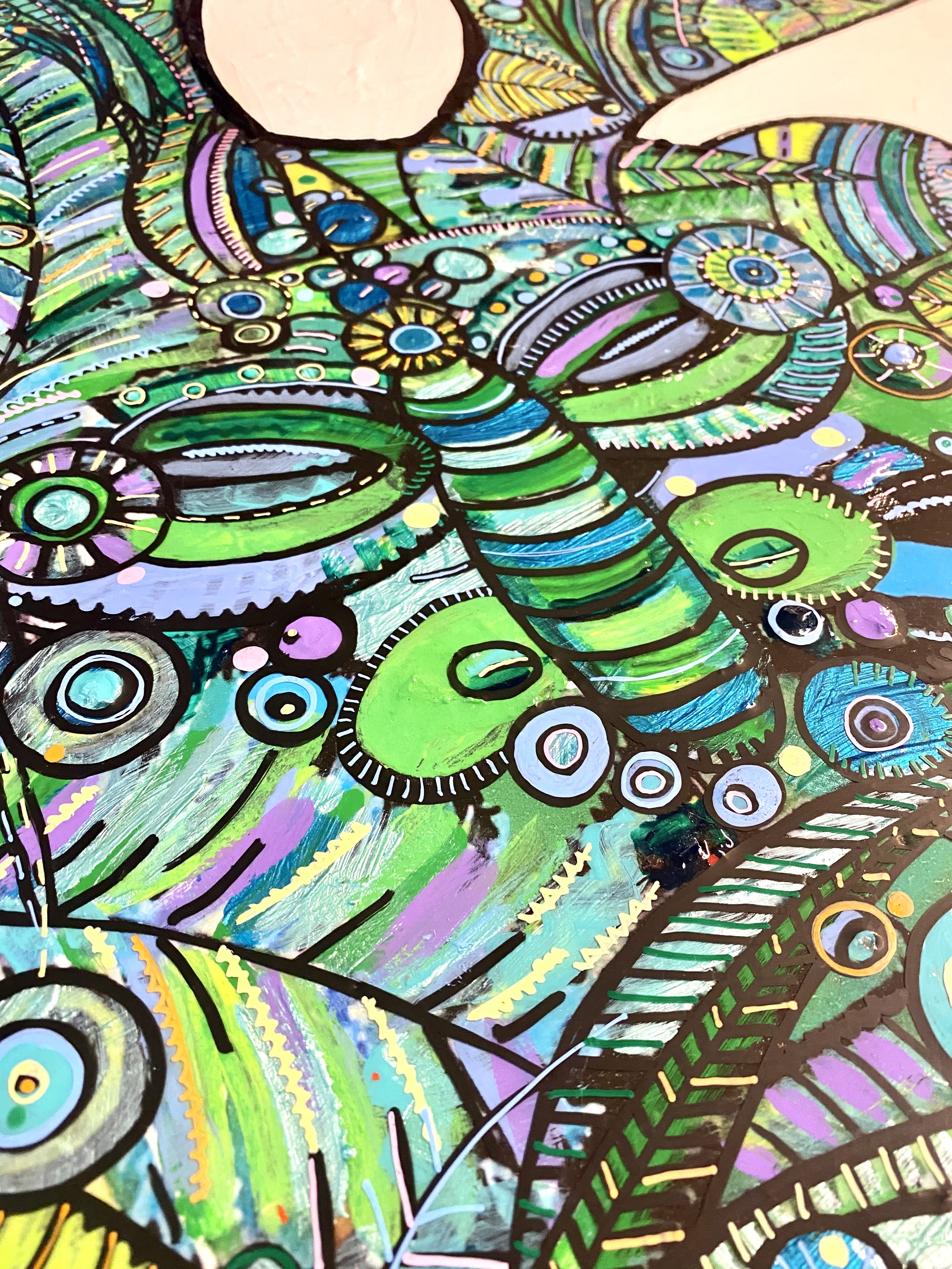 IL QUADRO FATTO TUTTO COMPLETAMENTE A MANO, È UN INSIEME DI MATERIALI DIVERSI: DA UNA PRIMA PASSATA CON PENNE E MATITE, AD UNA SECONDA DI ACRILICI A PENNELLO, AD UNA TERZA DI RESINE STRATIFICATE. È UN FORTE MESSAGGIO DI RICERCA DEL BELLO DENTRO DI NOI, QUEL GIARDINO SEGRETO CHE TUTTI POSSEDIAMO IN FONDO AL CUORE NEL QUALE CI ANDIAMO A SALVARE, UN GIARDINO SEGRETO CHE SPESSO E PER LO PIU' RIESCE A SALVARCI DALLA BRUTTEZZA DEL MONDO. LA CARATTERISTICA PRINCIPALE DI QUESTI QUADR È IL LAVORO PROGRESSIVO, DI PASSAGGI SU PASSAGGI DI MATERIALI E AGGIUNTE CHE POSSONO ARRIVARE ANCHE A VENTI LAVORAZIONI DIFFERENTI. ----------------- THE FRAMEWORK, COMPLETELY HANDMADE, IS A SET OF DIFFERENT MATERIALS: FROM A FIRST PASS WITH PENS AND PENCILS, TO A SECOND OF ACRYLICS BY BRUSH, TO A THIRD OF LAMINATED RESINS. IT IS A STRONG MESSAGE OF SEARCHING FOR THE BEAUTY INSIDE OF US, THAT SECRET GARDEN THAT WE ALL OWN AT THE BOTTOM OF THE HEART IN WHICH WE GO TO SAVE, A SECRET GARDEN THAT OFTEN AND FOR THE MOST MANAGES TO SAVE US FROM THE UGLY OF THE WORLD. THE MAIN CHARACTERISTIC OF THESE QUADR IS THE PROGRESSIVE WORK, OF PASSES ON PASSAGES OF MATERIALS AND ADDITIONS THAT CAN ALSO ARRIVE TO TWENTY DIFFERENT PROCESSES.