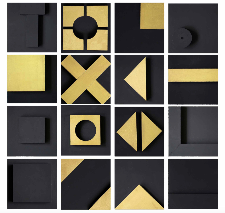 ES UN RELIEVE DE 16 MÓDULOS DE 20X20 CM CADA UNO , Y QUE OCUPA PUESTO DE ESTA FORMA QUE APARECE EN LA FOTO 80 X80 CM PERO PUEDEN SER COLOCADOS A LIBERTAD DE COMPOSICIÓN SEGÚN SE DESEE O NECESITE EL ESPACIO A COLOCAR. Y ES DE MIS ÚLTIMOS TRABAJOS EN BUSQUEDA DE SIMPLIFICACIÓN Y DE INCORPORAR COLOR .