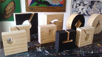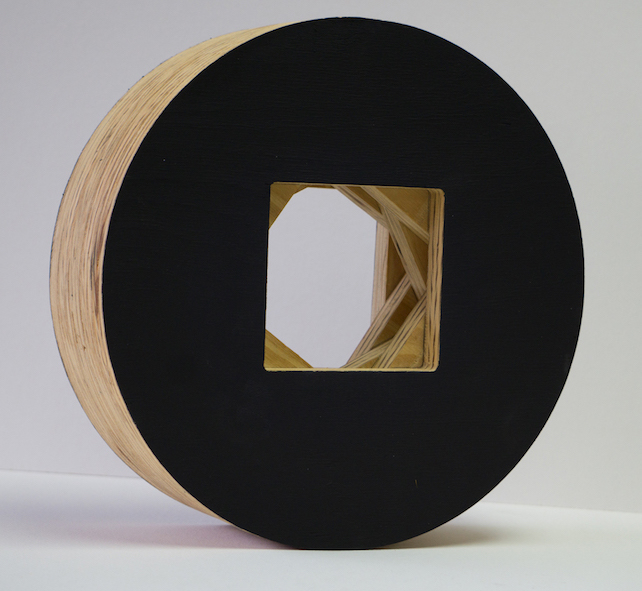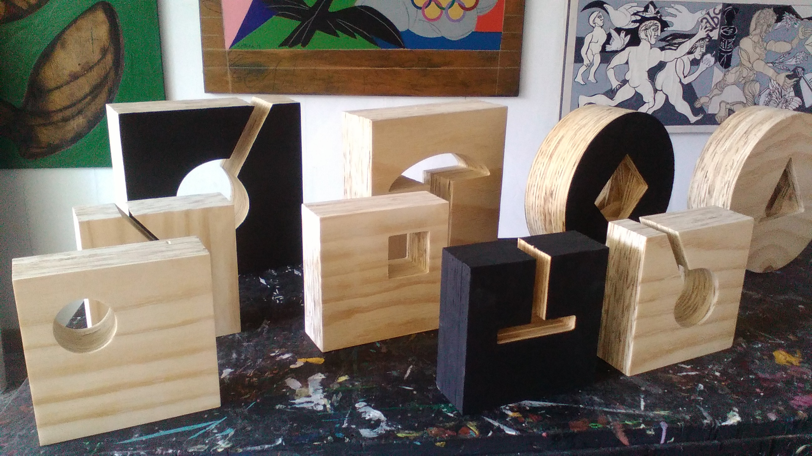 MADERA CORTADA A LÁSER Y ENSAMBLADA CON TINTA NEGRA