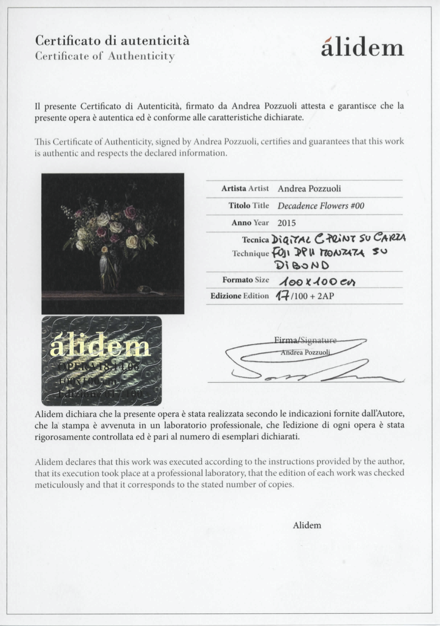 EN Andrea Pozzuoli showed his artistic talent at an early age, trying his hand at sculpture and painting. He grew up in an artistic environment that offered him countless stimuli, both avant-garde and traditionalist, that oriented him towards new horizons but also attracted him to the values of classicism. Pozzuoli then trained in the visual arts: he attended the State Art Institute in Cantù and completed his studies at the G. Terragni Art High School, where he started to photograph subjects to be transported to canvas. His gradual move towards photography, following in his father’s footsteps, culminated with his enrolment at the Italian Photography Institute (IIF) in Milan, where he experimented with various approaches – from fashion photography to portraiture and still life – to mould his personal artistic vision. In 2010, for the first Italian Photography Festival organized by the AFI – Italian Photography Archive – at the Fondazione Bandera per l’Arte in Busto Arsizio, he was one of the leading figures in the exhibition by students at the IIF, entitled Landscape – Vision from Young Photographers curated by Erminio Annunzi, photographer and teacher of photographic technique at the IIF. The following year he participated in MIA – Milan Image Art Fair, exhibiting at the IIF stand. In 2011 he was also one of the semi-finalists for the Cairo Prize in the photography section. Three years later – in 2014 – he returned to MIA – Milan Image Art Fair, where he had a solo stand in the ‘Proposta MIA’ section, at which he illustrated a subjective and relativistic world through the photographs in the It Is Not ’600 series. IT Andrea Pozzuoli sin dalla giovane età esprime il proprio talento artistico cimentandosi nella scultura e nella pittura. Cresce in un ambiente artistico da cui riceve stimoli sia avanguardistici sia tradizionalisti, che lo orientano verso orizzonti nuovi e al contempo lo attraggono verso i valori della classicità. Intraprende un percorso formativo che si inscrive nel segno delle arti visive: frequenta l’Istituto Statale d’Arte a Cantù e conclude gli studi presso il Liceo Artistico G. Terragni, dove inizia a fotografare soggetti da trasporre su tela. Il graduale avvicinamento alla fotografia, seguendo le orme paterne, culmina con l’iscrizione all’Istituto Italiano di Fotografia (IIF) di Milano, dove sperimenta diversi approcci – dalla fotografia di moda alla ritrattistica fino allo still life – per dare forma alla sua personale visione artistica. Nel 2010, in occasione del primo Festival Fotografico Italiano, organizzato dall’AFI – Archivio Fotografico Italiano – presso la Fondazione Bandera per l’Arte di Busto Arsizio, è tra i protagonisti della mostra degli studenti dell’IIF Landscape – Vision from young photographers curata da Erminio Annunzi, fotografo e docente di tecnica fotografica all’Istituto Italiano di Fotografia. L’anno successivo partecipa al MIA – Milan Image Art Fair esponendo con lo stand dell’Istituto Italiano di Fotografia. Sempre nel 2011 è tra i semifinalisti al Premio Cairo nella sezione fotografia. Tre anni più tardi, nel 2014, si ripresenta al MIA – Milan Image Art Fair, dove è protagonista con uno stand personale nella sezione ‘Proposta MIA’, in cui racconta un mondo soggettivo, relativistico, attraverso le fotografie della serie It is not ’600.