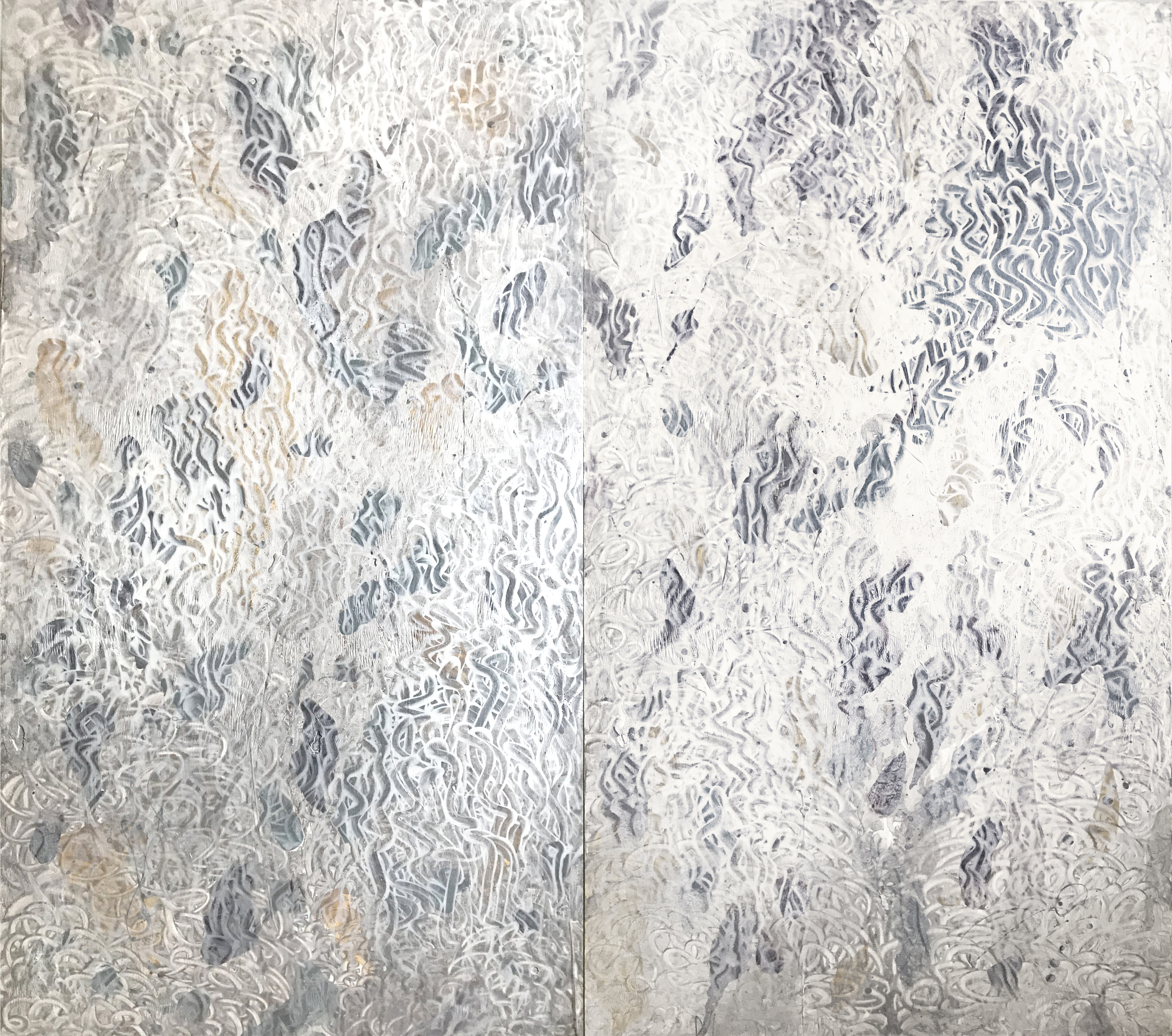 WHEN WORKING ON THE PAINTING "DOUBLE FOG" WAS USED HARMONY DIVIDED-A COMPLIMENTARY COMBINATION OF COLORS. I WAS INSPIRED BY THE PROCESS OF WORKING WITH FINGERS, THE CONNECTION WITH THE CANVAS DURING IMPROVISATION WAS MAXIMUM. THE OVERALL TONE FLOWS FROM LIGHT TO DARKER.