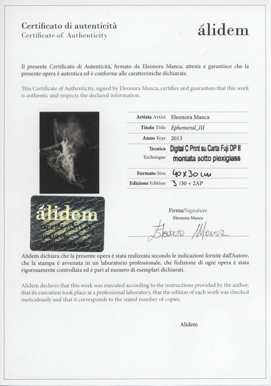 DIGITAL C PRINT SU CARTA FUJI DP II, MONTATA SOTTO PLEXIGLASS EDIZIONE 3/30 + 2AP DIGITAL C PRINT ON FUJI DP II PAPER, MOUNTED UNDER PLEXIGLASS EDITION 3/30 + 2AP