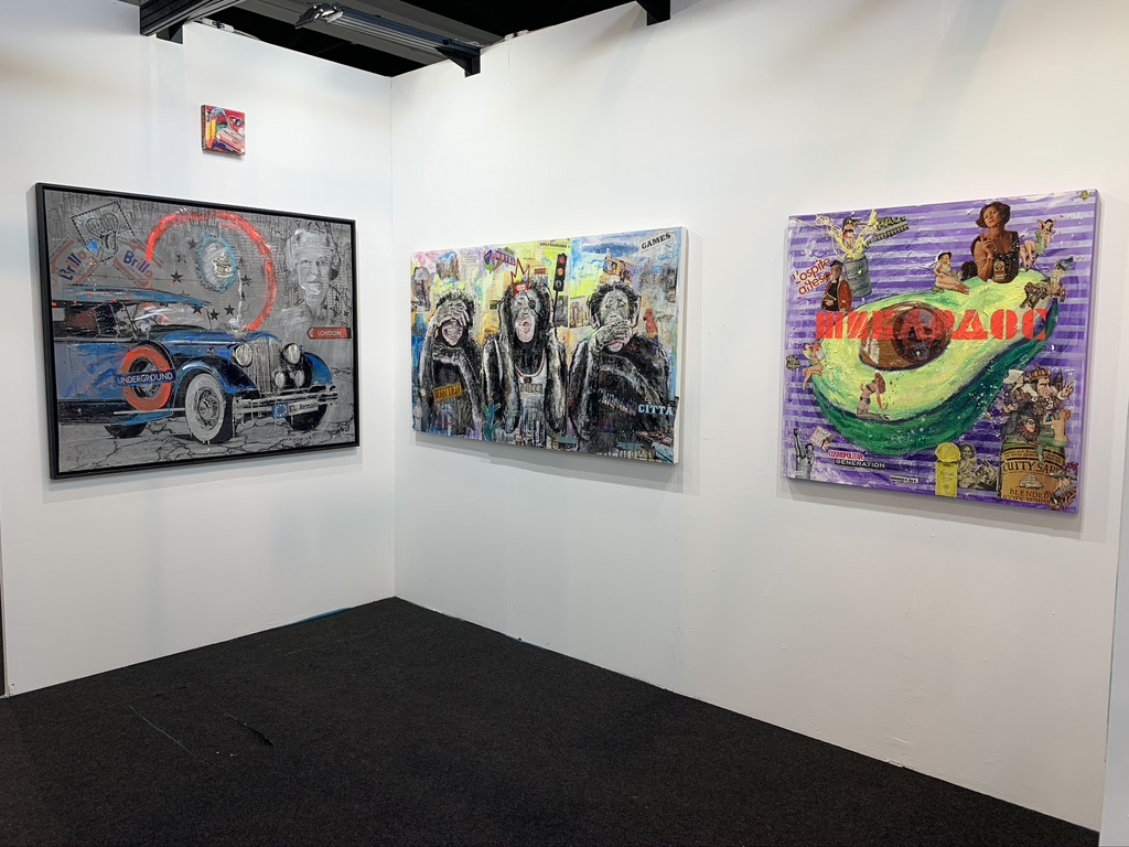 COLLAGE DIGITALE STAMPATO SU TESSUTO CATARIFRANGENTE, ACRILICO E RESINA FLESSIBILE. LE OPERE DI QUESTA SERIE SONO CARATTERIZZATE DA UNA VIVACITÀ PARTICOLARE, GRAZIE AL MATERIALE CAPACE DI RIFLETTE LA LUCE DIRETTA, GENERALMENTE UTILIZZATO PER I GILET INDOSSATI PER SICUREZZA DURANTE I LAVORI IN CORSO.