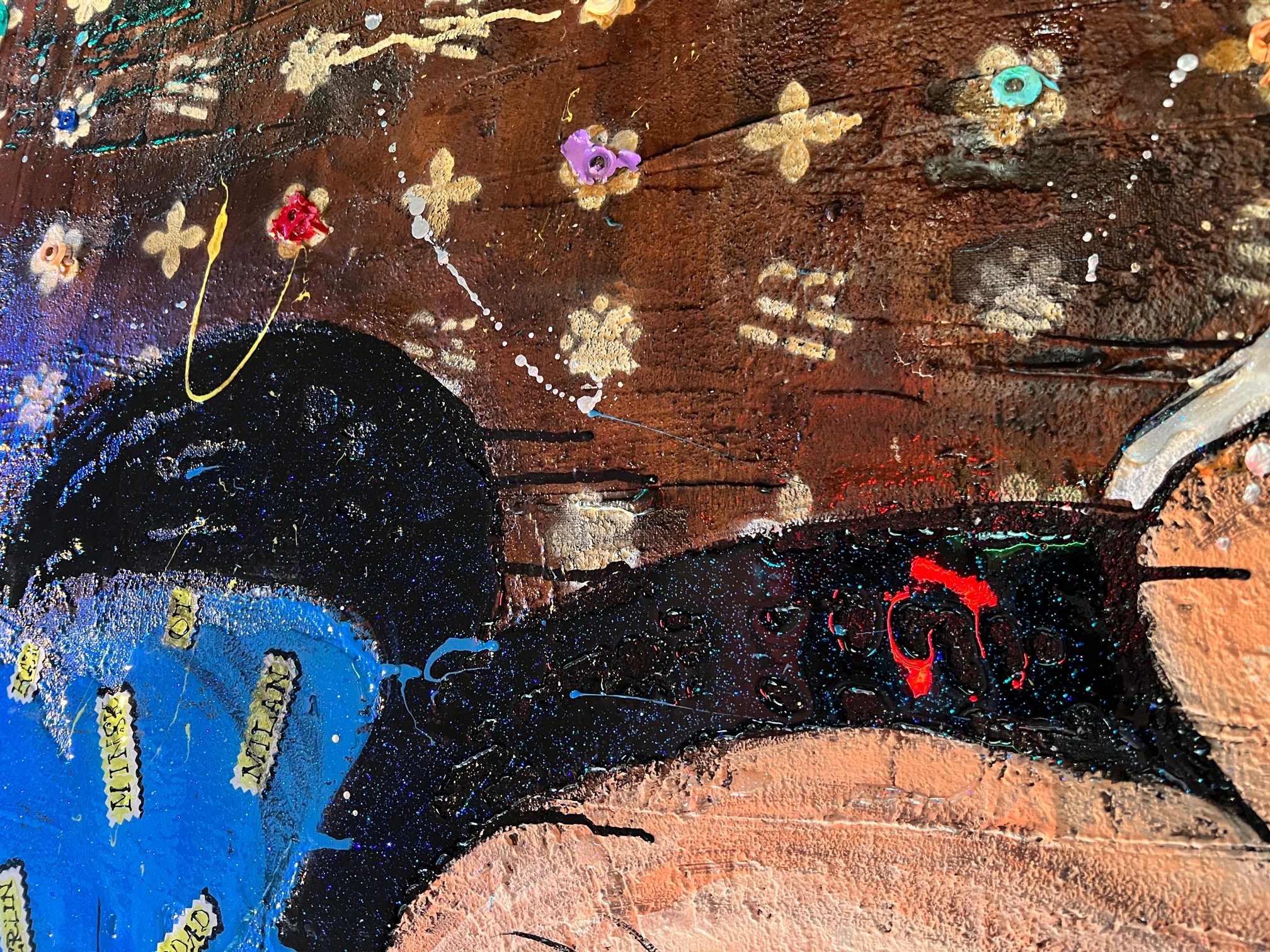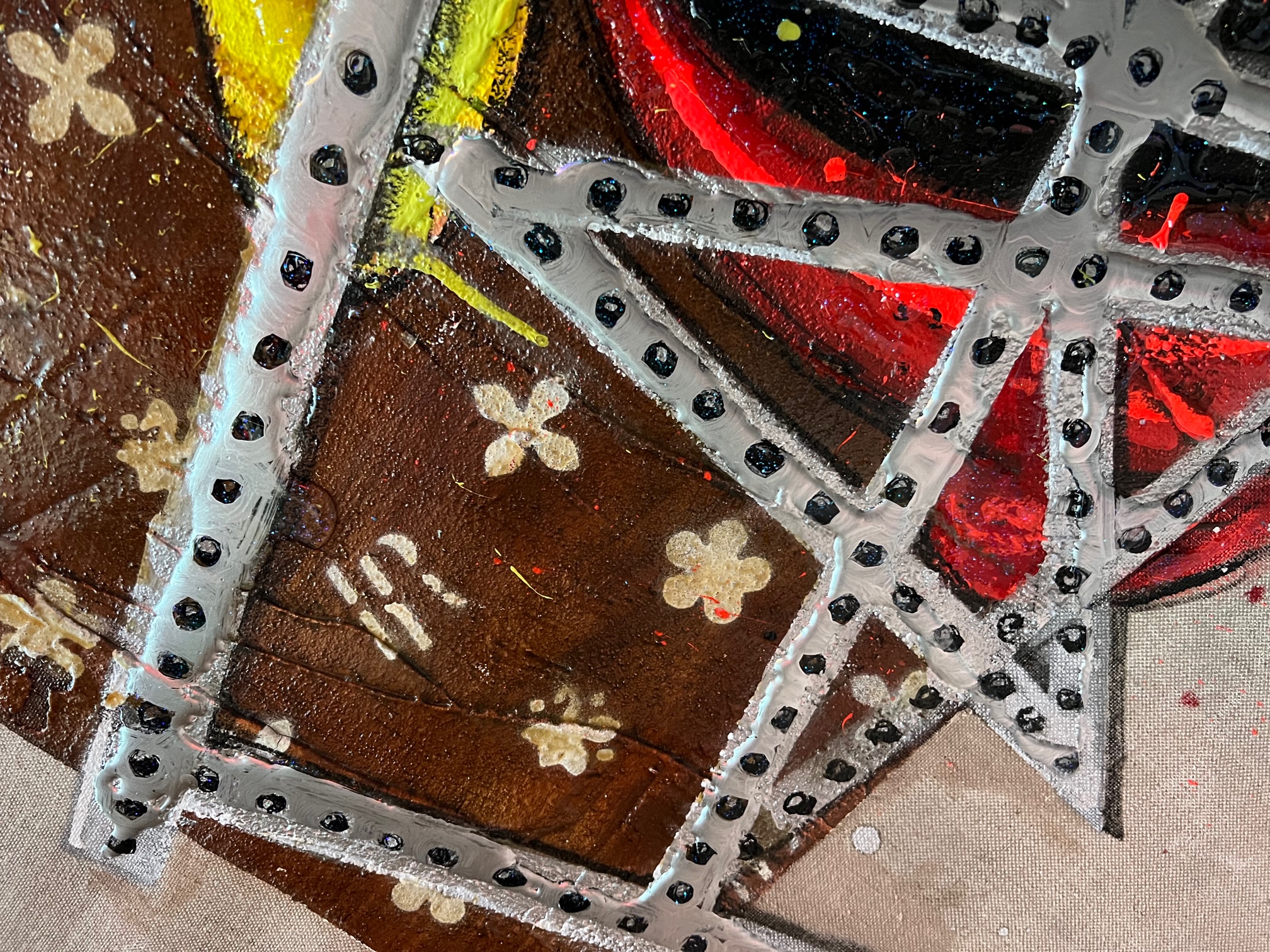 TECHNIQUE: COLLAGE, ACRYLIC, RESIN ON CANVAS