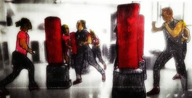 IN THIS CASE, I TRIBUTED ONE OF MY PREFERRED SPORT ACTIVITY, THE FIT BOXE. I PRINTED DOWN ONE IMAGE FROM THE VIDEO TUTORIAL, I RETOUCHED BY HAND AND THEN I REWORKED IT PERFORMING A DIGITAL TRANSFORMATION. YOU CAN SEE THE DRAFT BELOW ON THE LEFT, I NAMED THE FILE FITBOXERS ON PAPER ON PAPER. THE DIGITAL TRANSFORMATION ON THE RIGHT BELOW, NAMED FITBOXERS DIGITAL. THE PHYSICAL PIECE IS 22 LENGHT (CM) AND 15 HEIGHT (CM), I SELL THE TWO FILES DIGITALLY CERTIFICATED BY ARTID IN PAIRING WITH THE PAPER COPY.