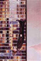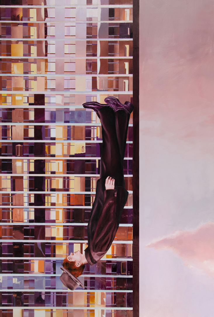 IT IS A WORK WITH A MYSTERIOUS MEANING IN WHICH A DISTINGUISHED MAN, WEARING A HAT AND SUIT, SEEMS TO KNOW HOW TO FLY
