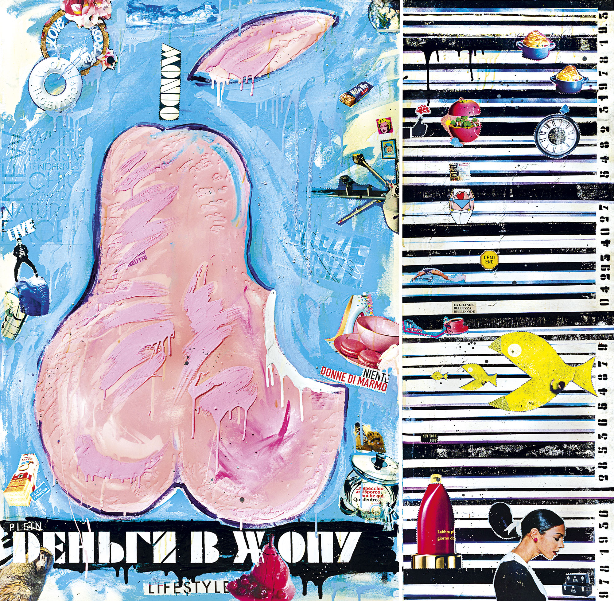 DOPO UN LUNGO PERCORSO DI SPERIMENTAZIONE CREATIVA, I 40 ANNI HANNO STIMOLATO L’ARTISTA E FASHION DESIGNER LUDMILLA RADCHENKO A RICERCARE NUOVI SPUNTI TRA LE CONTRADDIZIONI DELLA QUOTIDIANITÀ. OGGI LA PITTRICE SIBERIANA SI SENTE IN GRADO DI IRONIZZARE SUL CAOS SOCIALE ED ECONOMICO CHE CI METTE DAVANTI AD UNA CONTINUA PROVOCAZIONE. STA A NOI DECIDERE QUALE SIA IL LIMITE TRA LOGICA E LEGGEREZZA, PER CERCARE DI VIVERE SERENI E POSITIVI. FUCK MONEY, OPERA D'ARTE 150X150CM DI LUDMILLA RADCHENKO REALIZZATA NEL 2019, SERIE "KOMPOT", TECNICA COLLAGE, ACRILICO E RESINA SU TELA. C’È UN DETTO CHE TUTTI CONOSCONO “I SOLDI NON FANNO LA FELICITÀ”. FORSE NON LA FELICITÀ, MA LA STABILITÀ E L’INDIPENDENZA, QUELLE SI; LA PERA DELL’OPERA RAPPRESENTA UNA DELLE MAGGIORI FORTUNE DELLA VITA (IL COSIDDETTO “CULO”), CIOÈ QUELLA DI TROVARE UN EQUILIBRIO TRA PROFITTI E CONSUMO, IMPIEGANDO IL GUADAGNO PER COSTRUIRE RICORDI, VIVERE EMOZIONI E VIAGGIARE. KOMPOT - LA TRADIZIONALE BEVANDA RUSSA, A BASE DI FRUTTA BOLLITA E IMMERSA IN SCIROPPO DI ZUCCHERO. E’ QUESTO IL NOME CHE L’ARTISTA SIBERIANA HA SCELTO PER LA SUA NUOVA SERIE ARTISTICA, L’ISPIRAZIONE DELLA QUALE PARTE DALL’IDEA DI RAPPRESENTARE I PIACERI DELLA VITA, IRONIZZANDO E GIOCANDO SULLA SESSUALITÀ MASCHILE E FEMMINILE ATTRAVERSO LE FORME SIMBOLICHE DEI PRODOTTI ALIMENTARI; UN VIAGGIO SENSORIALE AL QUALE L’ARTISTA CI INVITA, METTENDO ALLA PROVA IL SUO SPETTATORE E PROVOCANDOLO A DECIFRARE I DOPPI SENSI.C’È UN DETTO CHE TUTTI CONOSCONO “I SOLDI NON FANNO LA FELICITÀ”. FORSE NON LA FELICITÀ, MA LA STABILITÀ E L’INDIPENDENZA, QUELLE SI; LA PERA DELL’OPERA RAPPRESENTA UNA DELLE MAGGIORI FORTUNE DELLA VITA (IL COSIDDETTO “CULO”), CIOÈ QUELLA DI TROVARE UN EQUILIBRIO TRA PROFITTI E CONSUMO, IMPIEGANDO IL GUADAGNO PER COSTRUIRE RICORDI, VIVERE EMOZIONI E VIAGGIARE. AFTER A LONG JOURNEY OF CREATIVE EXPERIMENTATION, THE 40 YEARS HAVE STIMULATED THE ARTIST AND FASHION DESIGNER LUDMILLA RADCHENKO TO SEEK NEW IDEAS AMONG THE CONTRADICTIONS OF EVERYDAY LIFE. TODAY THE SIBERIAN PAINTER FEELS CONFORTABLE TO BE IRONIC ABOUT THE SOCIAL AND ECONOMIC CHAOS THAT PUTS US IN FRONT OF A CONTINUOUS PROVOCATION. IT IS UP TO US TO DECIDE WHICH IS THE LIMIT BETWEEN LOGIC AND LIGHTNESS, IN ORDER TO LIVE SERENE AND POSITIVE. KOMPOT - THE TRADITIONAL RUSSIAN DRINK, BASED ON BOILED FRUIT AND DIPPED IN SUGAR SYRUP. THIS IS THE NAME THAT THE SIBERIAN ARTIST HAS CHOSEN FOR HER NEW ARTISTIC SERIES, THE INSPIRATION OF WHICH, STARTS FROM THE IDEA OF REPRESENTING THE PLEASURES OF LIFE, MAKING FUN AND PLAYING ON, MALE AND FEMALE SEXUALITY THROUGH THE SYMBOLIC FORMS OF FOOD PRODUCTS; A SENSORY JOURNEY WHERE THE ARTIST INVITES US, PUTTING HER VIEWER BY TESTING AND PROVOKING HIM TO DECODE THE DOUBLE MEANINGS. IN 2015, ON THE OCCASION OF EXPO AND INSPIRED BY THE THEME, THE ARTIST DEDICATED HERSELF TO A SERIES ENTIRELY DEVOTED TO FOOD, WHICH IS STILL ONE OF THE MOST POP EVER MADE; THE FEEDING'S THEME, TOPIC OF OUR CULTURE, EXPLORES AND IRONICALLY ANALYZES THE TREND OF TODAY'S CONSUMPTION, ALSO THROUGH CLEAR REFERENCES TO THE CRISIS FACED BY SOME COUNTRIES IN THE WORLD. BEHIND THE EVIDENT VIVIDNESS OF THE COLORS, THE AIM OF THESE WORKS IS TO STIMULATE THE VIEWER'S REFLECTION, GUIDING IT TOWARDS GREATER AWARENESS. EACH OF THE SIX WORKS IN THE SERIES HAS A STRONG PERSONALITY, CONFERRED BY THE SIBERIAN ARTIST BY COMBINING THE COLLAGE TECHNIQUE WITH A MAJESTIC WORK OF HANDMADE RESIN, ACRYLIC AND POLISH DETAILS: THE VISUAL IMPACT RESULTS TO BE MATERIAL AND THREE-DIMENSIONAL, ALMOST A TACTILE INSPIRATION. THERE IS A SAYING THAT EVERYONE KNOWS "MONEY DOES NOT MAKE HAPPINESS". PERHAPS NOT HAPPINESS, BUT STABILITY AND INDEPENDENCE, YES; THE PEAR OF THE WORK REPRESENTS ONE OF THE GREATEST FORTUNES OF LIFE (THE SO-CALLED "HAVE LUCK"), THAT IS THAT OF FINDING A BALANCE BETWEEN PROFITS AND CONSUMPTION, USING THE GAIN TO BUILD MEMORIES, LIVE EMOTIONS AND TRAVEL.