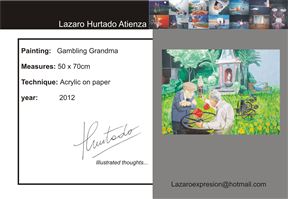 Lázaro Hurtado is an argentinian artist currently living in Buenos Aires, Argentina, were he works .Graduate Fine arts “ Bachillerato de Bellas Artes “ affiliated National University of La Plata. He states than more than an artist, he is a thinker.His work born from the necesity of expressing thoughts and conceptions of the World that surrounds him. The images he offers us project humanistic messages, the nature of mankind, the possible and the ridiculous. He makes comments about reality and the social forces and orders, but at the same time he demostrates a playful face, ironic in some cases. The transcription of inner alchemies into paintings of surrealist character wakes a curiosity in the viewer. The spectators would often find themselves been tickle by the ideas and concepts on reality and human behaviour that he seems to contemplate and rebuilt on his mind. The images you see are the working mechanics of a brain on a mind made world... Media: www.facebook.com/lazaroexpresion http://lazaro-hurtado.pixels.com http://www.redbubble.com/people/lazarohurtado https://twitter.com/lazaroexpresion 2019 _ Bio-Art Contest winner Excellence Prize . Seoul, South korea _ Premios a la Creación Artistica. Universidad de Belgrano. 27° Edición. Buenos Aires 2018 _ Artplu and Artron Art Auction: Western Modern & Contemporary Art _Picturesque Hotel . Wuxi, China 2017 _ X-Power Gallery Taipei . Taiwan _ Shenzhen International Art Fair. China _ Secoo 707 Deco Art Festival. China _ Artplu & Yidian China Art Auction:Western Contemporary Art Auction. China _ Art Nanjing- Baijiahu Art Mansion. China _ Art revolution Taipei 2017. Taiwan _ Get Art Museum Taipei, Taiwan 2016 _ Eggo Art Fair . Buenos Aires. _ ‘Thoughts’ curated by Tintin Yue JCCAC . Hong Kong _ 22 Salon de Pintura Palermo Viejo. Newbery Central Gallery. _ ‘Out of Gallery’ Hilton Hotel. Nanjin City. China _ Art Suning Plaza Collective Exhibition China _ Exposition at School Freud Lacan La Plata . Argentina 2015 _ Premio a la Creación Artística Universidad de Belgrano Buenos Aires _ Ar(t)gentina and Friends Castello Di Coazzolo (AT) Piemonte Italy _ Ar(t)gentina and Friends Pinacoteca Civica Camo ? Museo di Camo (CN) Piemonte Italy _ Ar(t)gentina and Friends Badnight Café Temporary Home Art Gallery Turín Italy _ ‘Illustrated thoughts’ Instituto de Capacitación Política. Argentina _ Museum of Contemporary Art, Artplu Shanghái, China _ 'Art on the Clouds', The Blue Skyline, Camphorwood, Wuxi City, China. _ " VIDEO KILLED THE ART STAR #2 "Spazio Arte 24, Via Corte 24, Dogliani Italy _ Tokyo International Art Fair Digital showcase Quest Hall Harajuku , Tokyo, Japan . _ Art Revolution Taipei 2015 Taiwan _ Arte La Plata stand unipersonal Argentina _ ‘ Colours of the World’ International Collective Exposition Bellas Artes. Museum And Academy., Bs As Argentina _ Motor Village Gallery City of Turin. Italy_ _ "il colori latini nell'arte contemporanea" Mondovi Piazza City of Mondovi, Cuneo, Italy 2014 _ ‘Becoming Conscience’ Cultural Centre Islas Malvinas Bs.As. Argentina _ 160th Stock Market Anniversary Buenos Aires. Argentina _ 1st Salón Municipal de Ilustration .La Plata . Argentina _ That Damned Show Detroit 2014 with a fineart canvas print ‘Lost sometimes’ USA