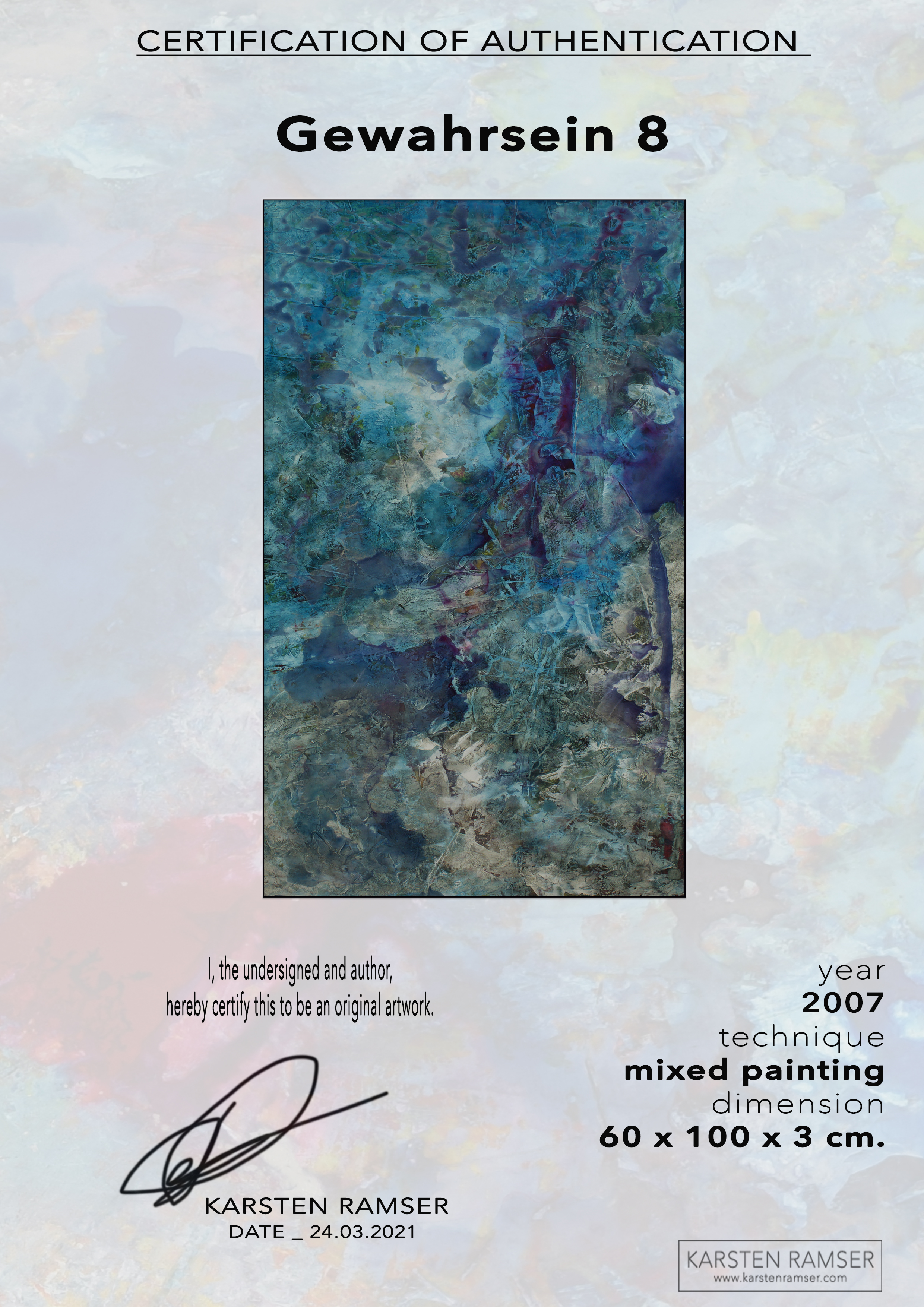 1.963 Born in Hamburg, (West) Germany. 1.968 First experience with painting in the studio of his father. 1.978-82 Working with music. 1.980-82 Working with experimental music in (West) Berlin. 1.983 Retaking the painting. 1.984-89 Exposition in Berlin, Wuppertal, Düsseldorf, München, Las Palmas de Canaria and Teror. 1.984-89 Working in Sculpturing. 1.985 Collaboration with the gallery Paranorm in Berlin, Germany. 1.988-89 Working with "Light-Objects". 1.989 Break of the professional activities as an artist. 1.989-93 Works in clay. 1.989-2.018 Painting becomes the tool of self-investigation. A period of searching for the meaning of life and what it means to be human. 1.989 He moves to the mountain in Gran Canaria and lives for years a life far away from civilisation. 1.995-2007 Study of the Perennial Philosophy (Perennial Wisdom). 2.007 Begin of Art&Consciousness. 2.007 Creation of the Gewahrsein paintings. 2.007 Begin of the conscious work. 2.007-2013 Working as a Reconnecting healer and therapist. 2.009-2016 Creation of short videos about consciousness. 2.009 Coaching becomes an integral part of his conscious work. 2.011 Publikation of his first book El Camino Sabio (The wise path). 2.015 Recognised as a nondual teacher and master. 2.017-18 ArtWork Becoming sculptures in wood. 2.018 Publikation of his second book The Tao of the 21st century. 2.018 Beginn of the artwork PhotoPainting. 2.018 Coming back to the professional activity as an artist. 2.018 Exposition with the art collective Las Figueras. Gata de Gorgos, Spain. 2.019 Collaboration with the Salón la ñ, Denia, Spain. 2.019 Exposition individual, Salon la ñ, Denia, Spain. The unity of life and death. 2.019 Collaboration with the Adsubia Gallery.