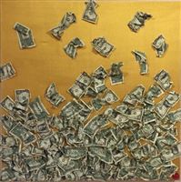 TECNICA MATERICA, COLORE ACRILICO ORO SU TELA CON APPLICAZIONE DI BANCONOTE AMERICANE 1$. QUESTE OPERE NASCONDONO UN SEGRETO, UNA BANCONOTA VIENE SEGNATA A TRACCIATA NEL SITO WWW.WHERESGEORGE.COM NELL'OTTICA DI VEDERE VIAGGIARE L'OPERA PER GALLERIE E MUSEI DI TUTTO IL MONDO .