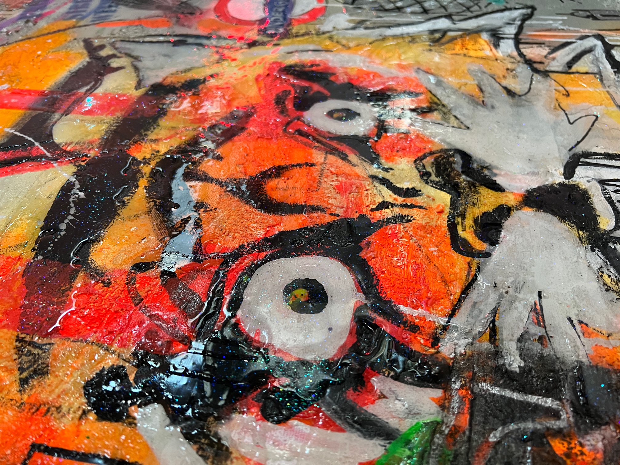 TECHNIQUE: COLLAGE, ACRYLIC, RESIN ON CANVAS