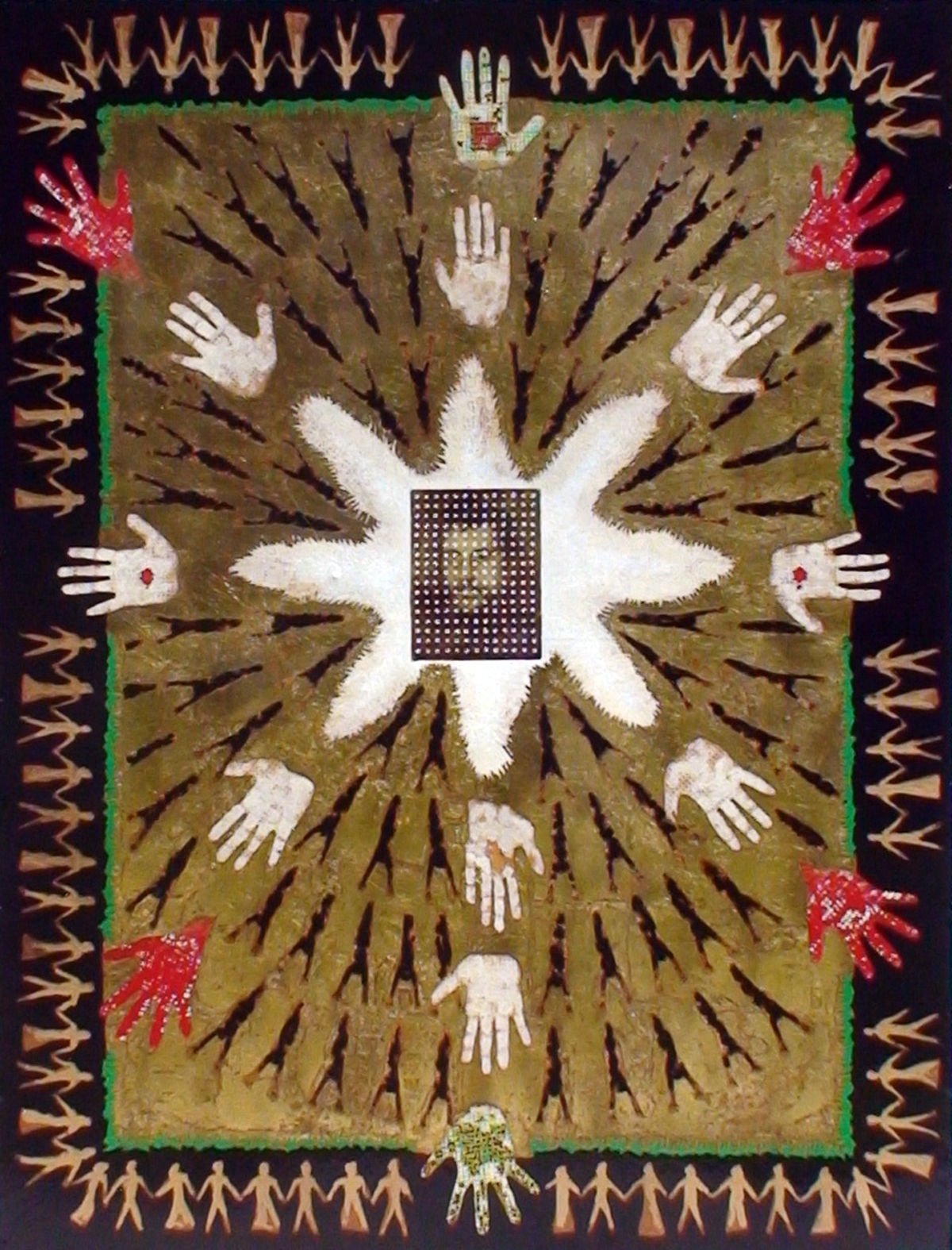 IN ESSO SI RIFLETTE UN UOMO (ME STESSO) CHE COSTANTEMENTE È IN OGNI UOMO-DONNA. A QUESTO ESSERE MI CONFESSO SENZA MENZOGNA E FALSITÀ. IN QUEST’ATTO SCOPRO LA LIBERTÀ, CHE M’INIZIA AD UN VIAGGIO VERSO UN SPAZIO DORATO DI LUCE DIVINA.