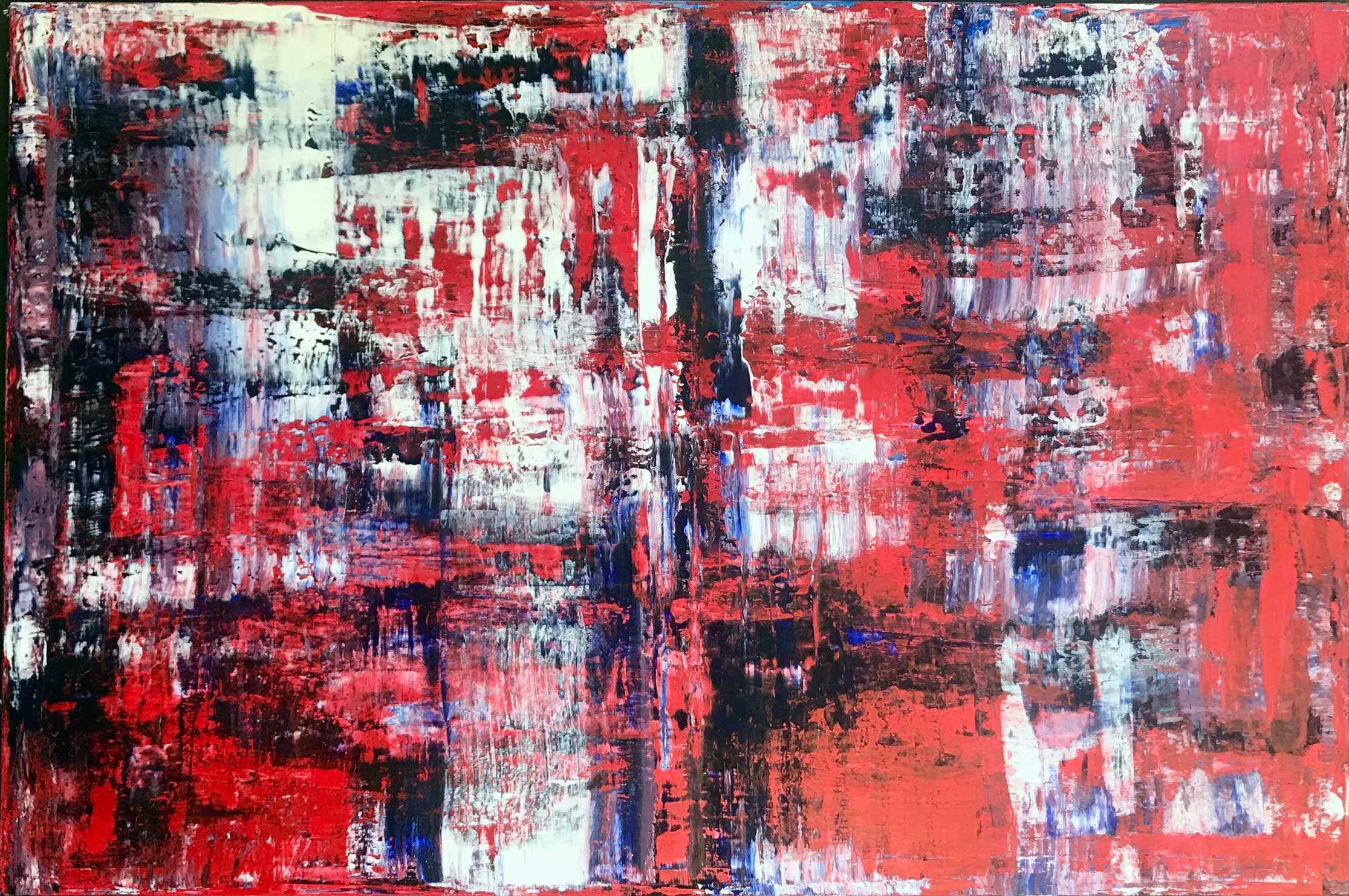 ALL OF ZT TOSHA’S PAINTINGS ARE MADE IN A MULTI-STEP PROCESS OF REPRESENTATION. HE STARTS WITH A BLANK CANVAS, ADDING GRAY AERIAL PERSPECTIVE, WHILE CONSTANTLY ROTATING THE CANVAS. THEN HE POURS OR SPLASHES PAINT DIRECTLY FROM THEIR TUBES ONTO A HORIZONTAL SURFACE (DRIP TECHNIQUE), ENABLING HIM TO VIEW AND PAINT HIS CANVASES FROM ALL ANGLES. TAKING HIS COLOR PALETTE FROM THE SCENE THAT HE SEES AT THAT MOMENT, HE PAINTS TO REPLICATE THE LOOK OF THE ORIGINAL SCENE. HIS HALLMARK “BLUR” IS SOMETIMES ACHIEVED WITH A HARD SMEAR MADE BY AN AGGRESSIVE PULL WITH A SQUEEGEE.