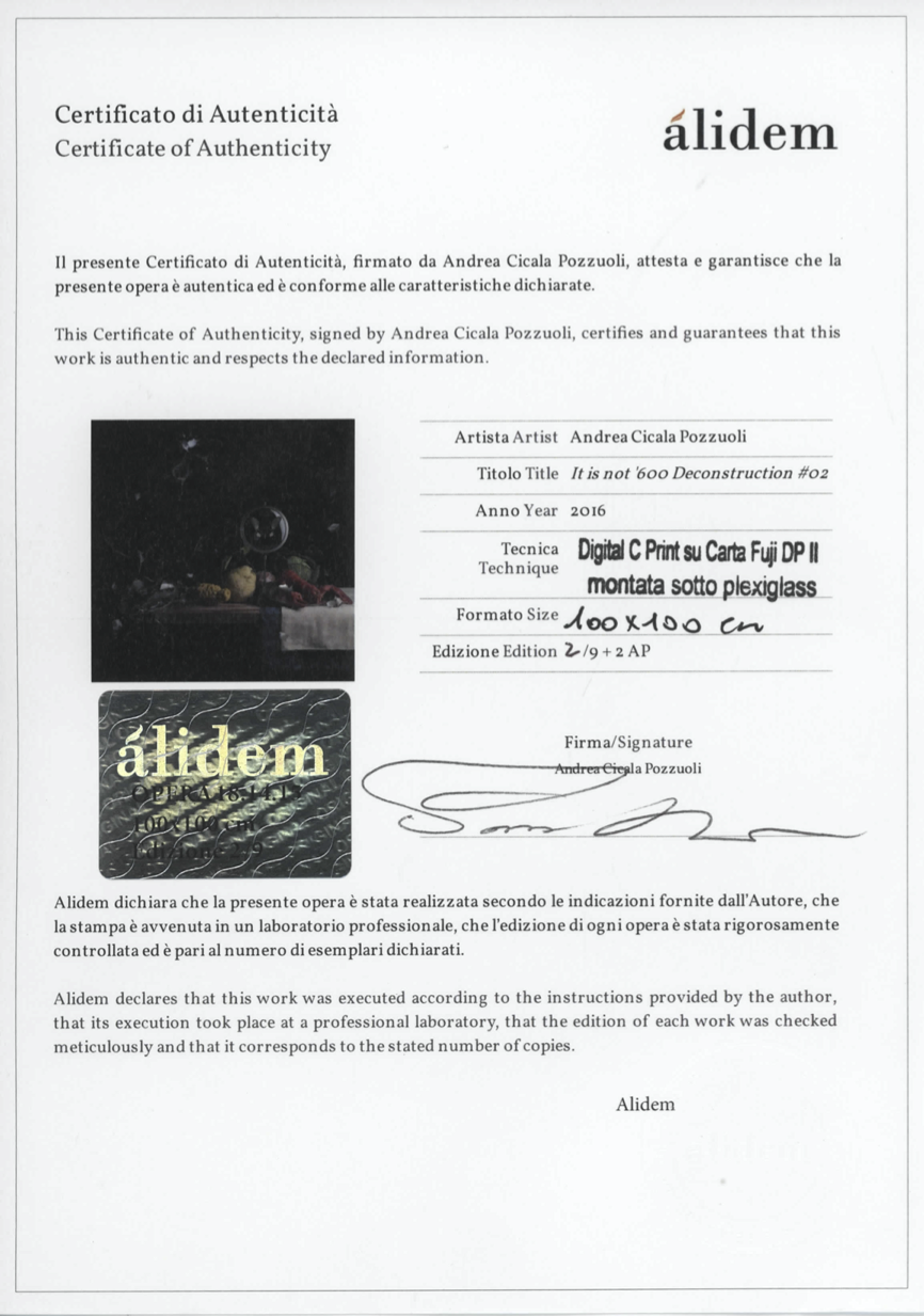 EN Andrea Pozzuoli showed his artistic talent at an early age, trying his hand at sculpture and painting. He grew up in an artistic environment that offered him countless stimuli, both avant-garde and traditionalist, that oriented him towards new horizons but also attracted him to the values of classicism. Pozzuoli then trained in the visual arts: he attended the State Art Institute in Cantù and completed his studies at the G. Terragni Art High School, where he started to photograph subjects to be transported to canvas. His gradual move towards photography, following in his father’s footsteps, culminated with his enrolment at the Italian Photography Institute (IIF) in Milan, where he experimented with various approaches – from fashion photography to portraiture and still life – to mould his personal artistic vision. In 2010, for the first Italian Photography Festival organized by the AFI – Italian Photography Archive – at the Fondazione Bandera per l’Arte in Busto Arsizio, he was one of the leading figures in the exhibition by students at the IIF, entitled Landscape – Vision from Young Photographers curated by Erminio Annunzi, photographer and teacher of photographic technique at the IIF. The following year he participated in MIA – Milan Image Art Fair, exhibiting at the IIF stand. In 2011 he was also one of the semi-finalists for the Cairo Prize in the photography section. Three years later – in 2014 – he returned to MIA – Milan Image Art Fair, where he had a solo stand in the ‘Proposta MIA’ section, at which he illustrated a subjective and relativistic world through the photographs in the It Is Not ’600 series. IT Andrea Pozzuoli sin dalla giovane età esprime il proprio talento artistico cimentandosi nella scultura e nella pittura. Cresce in un ambiente artistico da cui riceve stimoli sia avanguardistici sia tradizionalisti, che lo orientano verso orizzonti nuovi e al contempo lo attraggono verso i valori della classicità. Intraprende un percorso formativo che si inscrive nel segno delle arti visive: frequenta l’Istituto Statale d’Arte a Cantù e conclude gli studi presso il Liceo Artistico G. Terragni, dove inizia a fotografare soggetti da trasporre su tela. Il graduale avvicinamento alla fotografia, seguendo le orme paterne, culmina con l’iscrizione all’Istituto Italiano di Fotografia (IIF) di Milano, dove sperimenta diversi approcci – dalla fotografia di moda alla ritrattistica fino allo still life – per dare forma alla sua personale visione artistica. Nel 2010, in occasione del primo Festival Fotografico Italiano, organizzato dall’AFI – Archivio Fotografico Italiano – presso la Fondazione Bandera per l’Arte di Busto Arsizio, è tra i protagonisti della mostra degli studenti dell’IIF Landscape – Vision from young photographers curata da Erminio Annunzi, fotografo e docente di tecnica fotografica all’Istituto Italiano di Fotografia. L’anno successivo partecipa al MIA – Milan Image Art Fair esponendo con lo stand dell’Istituto Italiano di Fotografia. Sempre nel 2011 è tra i semifinalisti al Premio Cairo nella sezione fotografia. Tre anni più tardi, nel 2014, si ripresenta al MIA – Milan Image Art Fair, dove è protagonista con uno stand personale nella sezione ‘Proposta MIA’, in cui racconta un mondo soggettivo, relativistico, attraverso le fotografie della serie It is not ’600.
