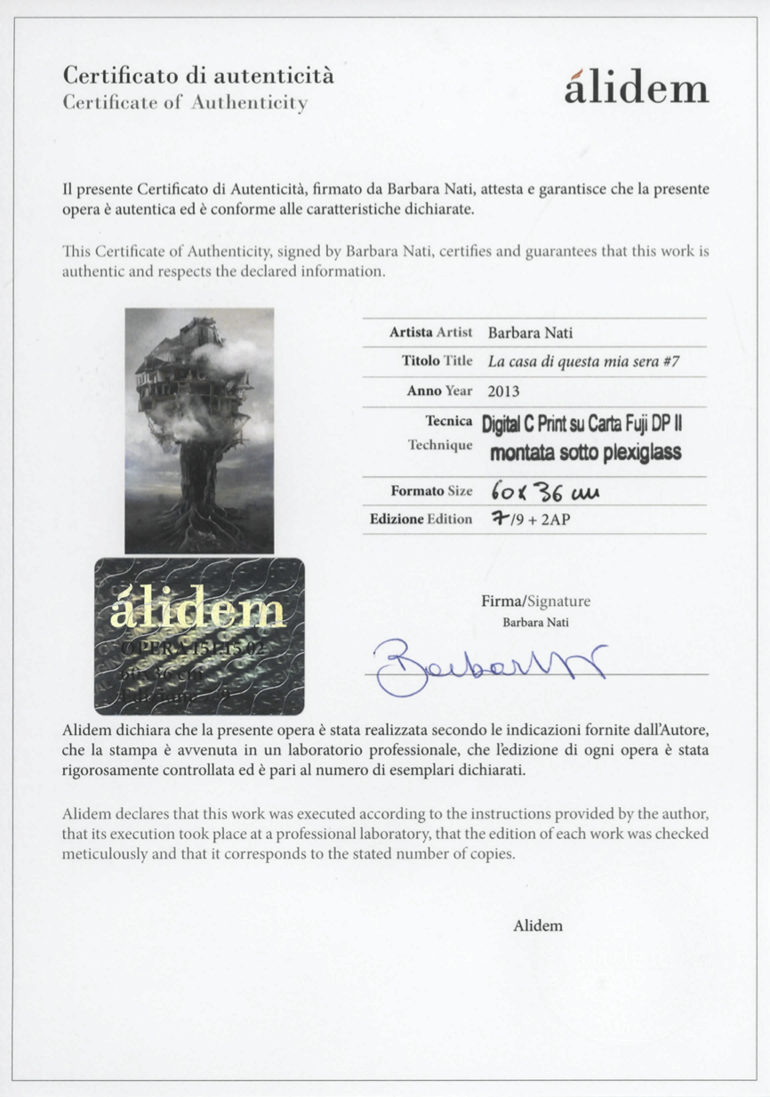 EN Barbara Nati debuted in the art world in 2006 when her first solo exhibition was staged at C.A.O.S – Cultural Artist Open Space (Rome). In 2009, after being named as a finalist for the Arte Laguna Prize and the Terna Prize, she was selected to participate in an artist-in-residence programme in Belfast. Since then, her artistic path and photography exhibitions have been divided between Italy – chiefly Rome and Milan – and Great Britain, where she is based in London. In 2010 the Italian Cultural Institute of London awarded her the Renaissance Prize. In 2013, following the solo exhibition curated by Massimo Sgroi, entitled Unpredictable Trees, she had a residency in Olofström, Sweden. Between 2014 and 2015 Nati was featured in solo shows as well as collective exhibitions in Italy and outside the country. In 2014 she received the first Mantegna Cercasi Prize in the category of photography; the following year she was a finalist for the Columbia Threadneedle Prize and received the Ashurst London Prize. She is often featured at Art Verona (2009, 2014) and has exhibited her work at other prestigious contemporary art and photography fairs, including MIA – Milan Image Art Fair (Milan) in 2015, The Other Art Fair (London) in 2015 and 2013, Asia Contemporary Art Show (Hong Kong) in 2014 and Link Art Fair (Hong Kong) in 2013. Nati currently lives and works in Great Britain. IT Barbara Nati fa il suo ingresso nel mondo dell’arte nel 2006 con la sua prima mostra personale allestita negli spazi C.A.O.S – Cultural Artist Open Space (Roma). Nel 2009, dopo essere stata tra i finalisti di Premio Arte Laguna e Premio Terna, è selezionata per partecipare a una residenza d’artista a Belfast. Da allora il percorso artistico ed espositivo della fotografa si divide tra l’Italia, prevalentemente a Roma e Milano, e il Regno Unito, a Londra. Nel 2010, presso l’Italian Cultural Institute of London è vincitrice del Renaissance Prize. Nel 2013, dopo la mostra personale curata da Massimo Sgroi, Unpredictable trees, è protagonista in Svezia di una residenza d’artista a Olofström. Tra il 2014 e il 2015 le vengono dedicate mostre personali e collettive in territorio nazionale e internazionale. Nel 2014 riceve il primo premio MantegnaCercasi nella categoria fotografia, l’anno successivo è finalista per il Columbia Threadneedle Prize e riceve il premio Ashurst London. Spesso protagonista ad Art Verona (2009, 2014), ha esposto il suo lavoro in altre prestigiose fiere d’arte contemporanea e di fotografia, tra cui MIA - Milan Image Art Fair (Milano) nel 2015, The Other Art Fair (Londra) nel 2015 e nel 2013; Asia Contemporary Art Show (Hong Kong) nel 2014 e Link Art Fair (Hong Kong) nel 2013. Attualmente vive e lavora nel Regno Unito.
