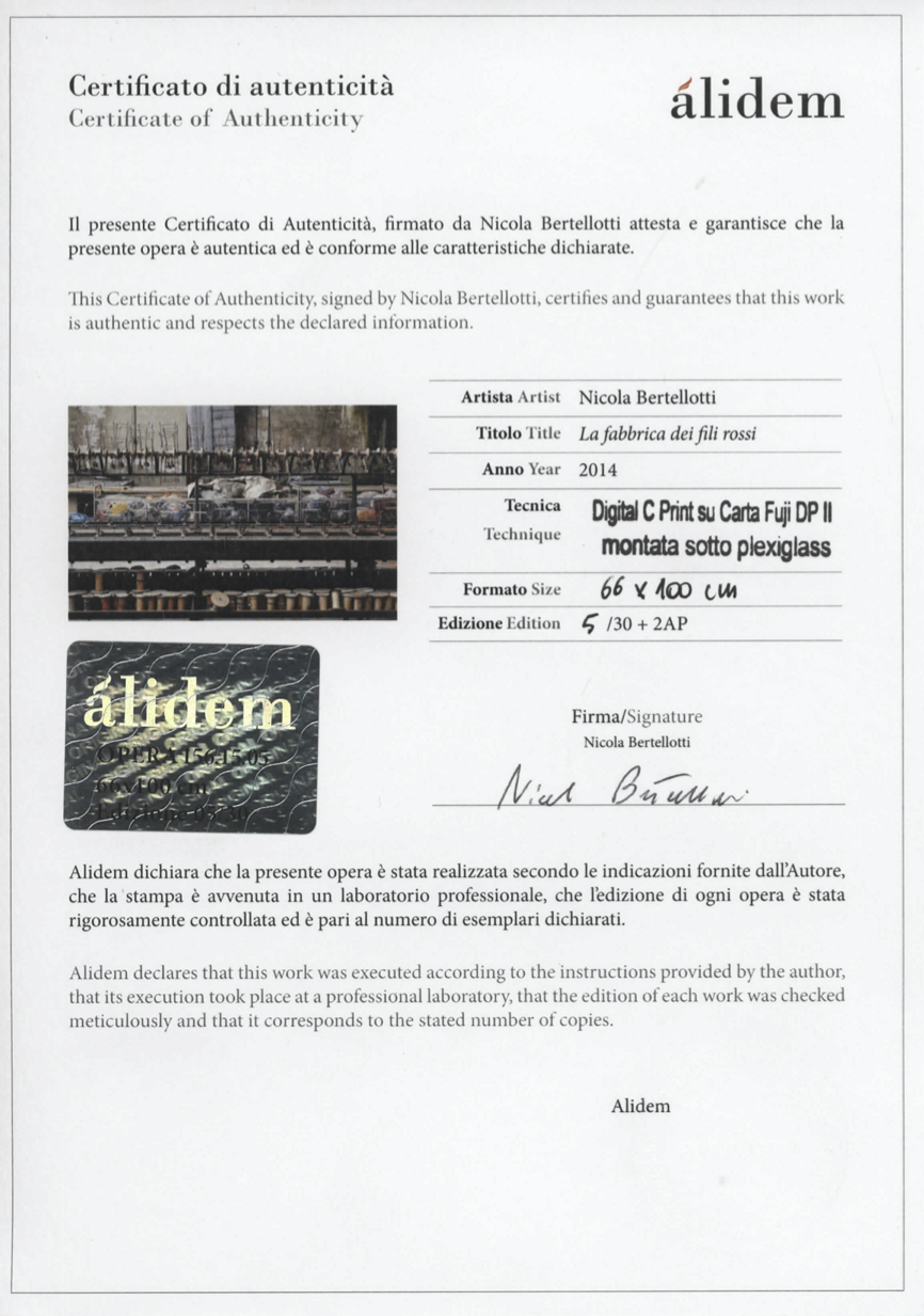 EN After studying history at the University of Pisa, Nicola Bertellotti developed a personal vision oriented towards an aesthetic of decline, in which the sense of the fleetingness of all things is profoundly rooted. His research emerged in his first solo exhibition, Fenomenologia della Fine, held in the province of Lucca in 2013. The exhibition was staged again in 2014, in Pisa, and the same year Petrartedizioni published the catalogue with essays by Pier Luigi Pinelli, entitled Fenomenologia della Fine. In 2014 Bertellotti participated in the European Photographic Festival (Busto Arsizio), where he exhibited Damnatio Memoriae, and in Tuscany he featured with the exhibition Focus on/ così com’è that Francesca Sensi Arte a Colori Galleria devoted to him. He participated in the Affordable Art Fair and the Set Up Art Fair in 2015. That year the #091LAB exhibition space (Palermo) devoted a solo show to him, Il lungo addio. In addition to photography, Bertellotti is also active at conferences and workshops. In 2016 he organized exhibition Hic Sunt Dracones at Castel dell’Ovo (Naples). In 2017 he realized the social project Blue eye at the Museum of Contemporary Art LIMEN, Permanent collection (Vibo Valencia) and in 2016 he took par in the CODICE MIA at the MIA Photo Fair (Milan). IT Dopo gli studi di storia presso l’Università di Pisa, Nicola Bertellotti elabora una personale visione orientata verso un’estetica della decadenza, in cui è profondamente radicato il senso di caducità di ogni cosa. La sua ricerca si concretizza nella prima mostra personale Fenomenologia della Fine che gli viene dedicata nel 2013 in provincia di Lucca. L’esposizione si ripete nel 2014, a Pisa, e nello stesso anno Petrartedizioni ne fa una pubblicazione con testi di Pier Luigi Pinelli. Nel 2014 prende parte al Festival Fotografico Europeo (Busto Arsizio) dove espone Damnatio Memoriae ed è protagonista in Toscana con la mostra Focus on/ così com’è che Francesca Sensi Arte a Colori Galleria gli tributa. Partecipa ad Affordable Art Fair e a Set Up Art Fair nel 2015. Nello stesso anno lo spazio espositivo #091LAB (Palermo) gli dedica la mostra personale Il lungo addio. Nicola Bertellotti è attivo nell’intervento a conferenze e workshop. Nel 2016 espone Hic Sunt Dracones a Castel dell’Ovo (Napoli). Nel 2017 realizza il progetto speciale Blue eye al Museo D’Arte Contemporanea LIMEN, Collezione Permanente (Vibo Valentia) e nel 2016 partecipa con CODICE MIA al Mia Photo Fair (Milano).