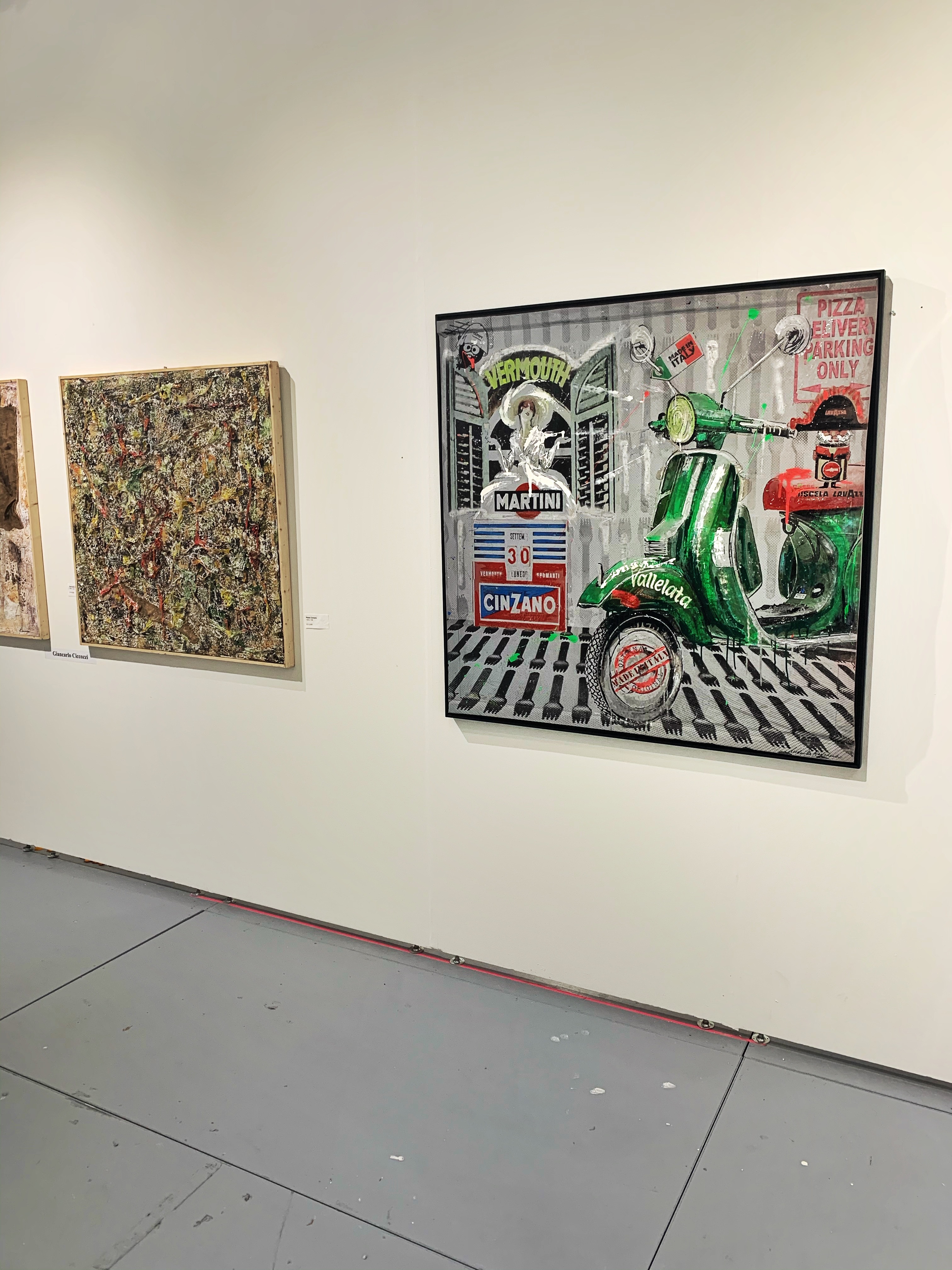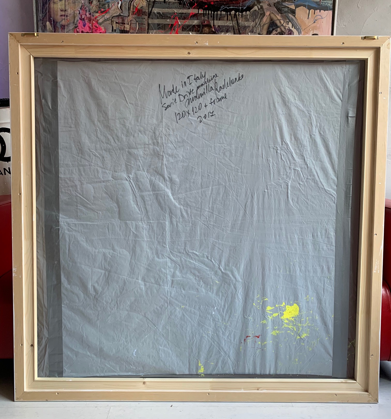 DRIVE MACHINE DAI MODELLI SPORTIVI E VELOCI DI FERRARI E LAMBORGHINI, FINO AL MEMORABILE FURGONCINO VOLKSWAGEN, SIMBOLO DI UN’INTERA GENERAZIONE, PASSANDO PER I MITI ITALIANI FIAT 500 E VESPA... GLI ESEMPLARI PIÙ ICONICI DELLA STORIA DEI VEICOLI A MOTORE HANNO ISPIRATO LA SERIE “DRIVE MACHINE”, REALIZZATA DALL’ARTISTA NEL CORSO DELL’ANNO 2017. UN PROGETTO TANTO INNOVATIVO QUANTO COMPLESSO, PARTITO DA UN IMPONENTE LAVORO DI GRAFICA CHE HA ESTRAPOLATO VARI ELEMENTI DALLE FOTOGRAFIE DI VIAGGIO, DANDO ALLA LUCE LE BASI PER LA STAMPA SU UNO SPECIALE TESSUTO CATARIFRANGENTE. IL RISULTATO È UNA SERIE D’ISPIRAZIONE ORIGINALE E CARATTERIZZATA DA COLORI ACCESI, STESI MANUALMENTE SU UN TESSUTO CAPACE DI MUTARE COSTANTEMENTE A SECONDA DELLA LUCE, CHE GARANTISCE UN EFFETTO SEMPRE NUOVO E STUPEFACENTE. DRIVE MACHINE FROM THE SPORTY AND FAST MODELS OF FERRARI AND LAMBORGHINI TO THE MEMORABLE VOLKSWAGEN VAN, THE SYMBOL OF AN ENTIRE GENERATION, PASSING THROUGH THE ITALIAN MYTHS FIAT 500 AND VESPA ... THE MOST ICONIC MODELS IN THE HISTORY OF MOTOR VEHICLES INSPIRED THE SERIES " DRIVE MACHINE ", CREATED BY THE ARTIST DURING THE YEAR 2017. A PROJECT AS INNOVATIVE AS IT IS COMPLEX, WHICH STARTED WITH AN IMPRESSIVE GRAPHIC WORK THAT HAS EXTRAPOLATED VARIOUS ELEMENTS FROM TRAVEL PHOTOGRAPHS, GIVING BIRTH TO THE BASIS FOR PRINTING ON A SPECIAL REFLECTIVE FABRIC. THE RESULT IS A SERIES OF ORIGINAL INSPIRATION AND CHARACTERIZED BY BRIGHT COLORS, APPLIED MANUALLY ON A FABRIC CAPABLE OF CONSTANTLY CHANGING ACCORDING TO THE LIGHT, WHICH GUARANTEES AN ALWAYS NEW AND AMAZING EFFECT. SERIES ARTWORK MADE IN 2017, UNIQUE PIECE TECHNIQUE - DIGITAL COLLAGE PRINTING ON REFLECTIVE FABRIC (WITH THE CHARACTERISTIC THAT REFLECTS DIRECT LIGHT, GENERALLY USED FOR "WORK IN PROGRESS" VESTS IN ROAD PROTECTION), ACRYLIC AND FLEXIBLE RESIN. EACH ARTWORK MAY HAVE A FRAME DESCRIBING THE FINAL COLLECTOR.