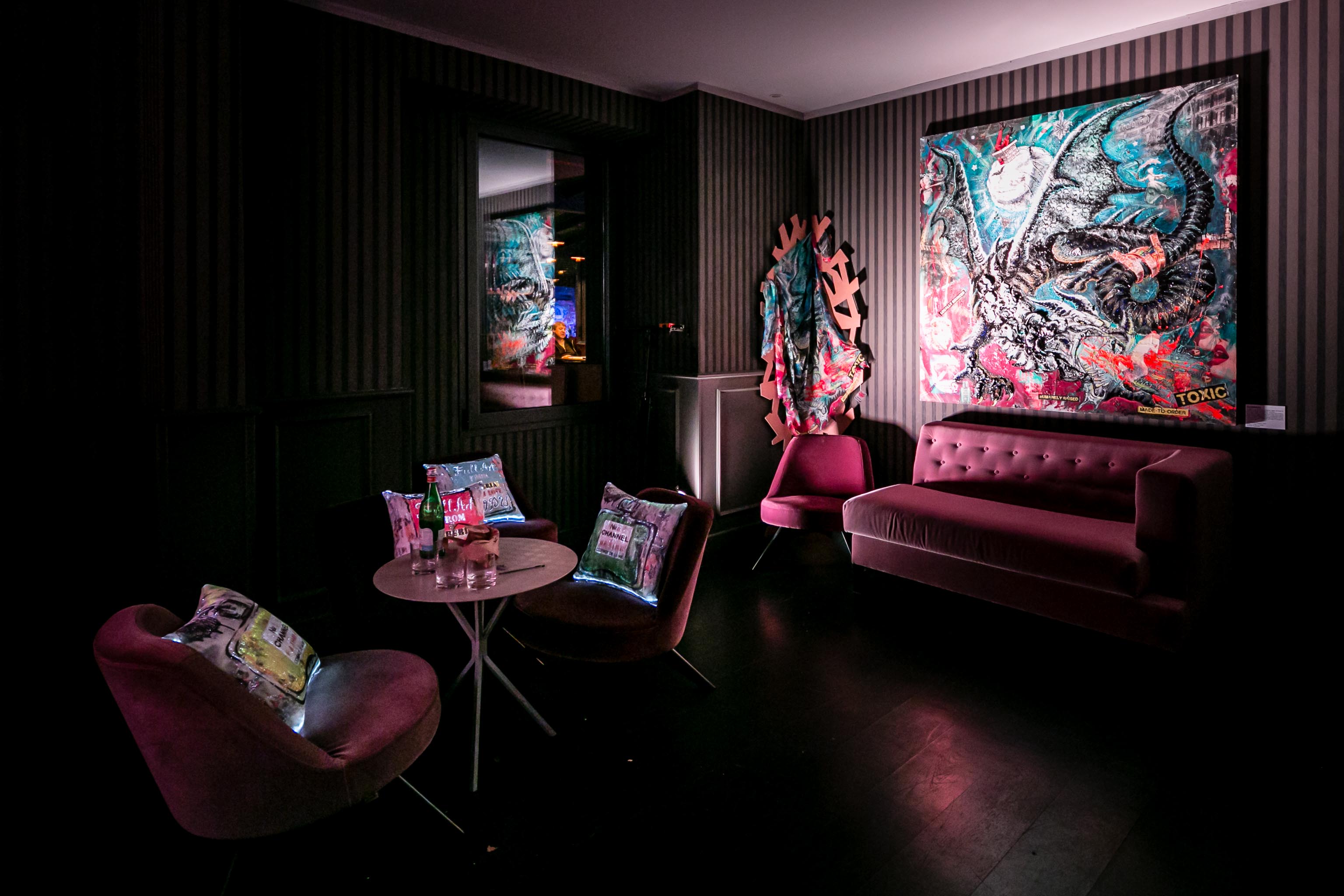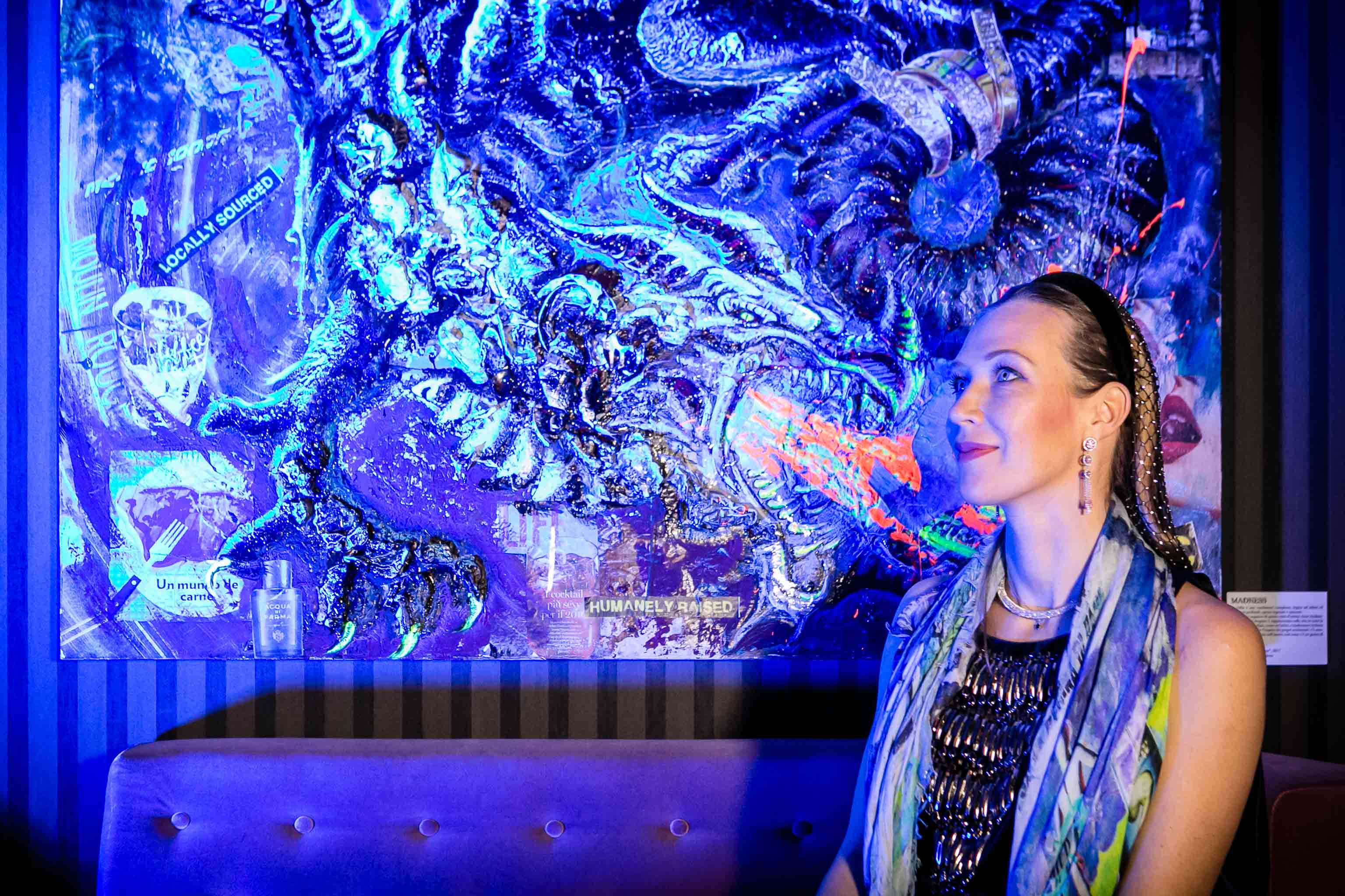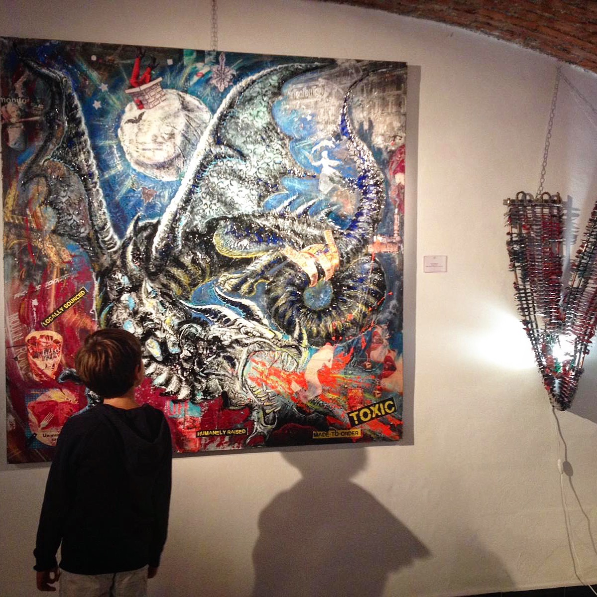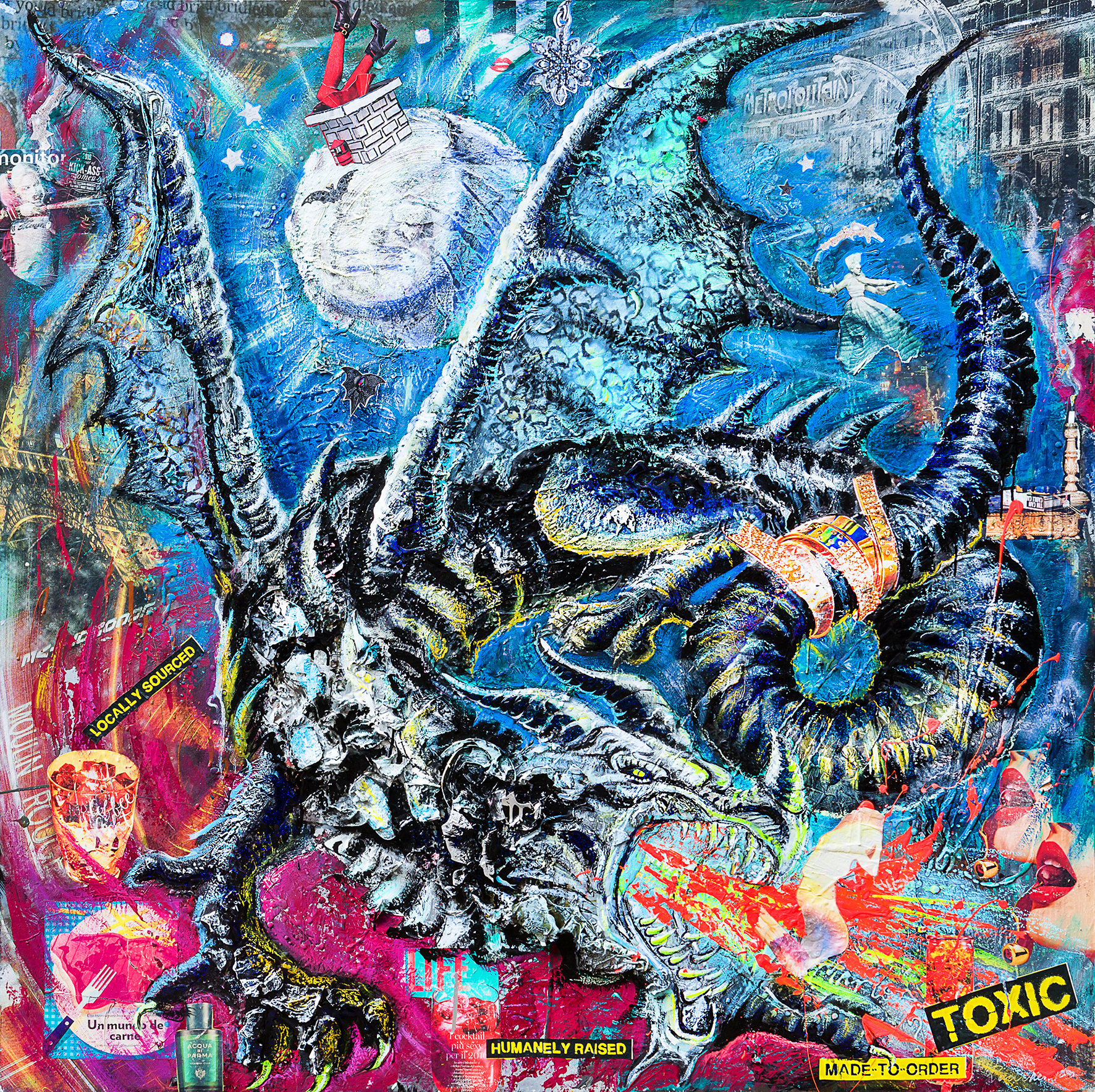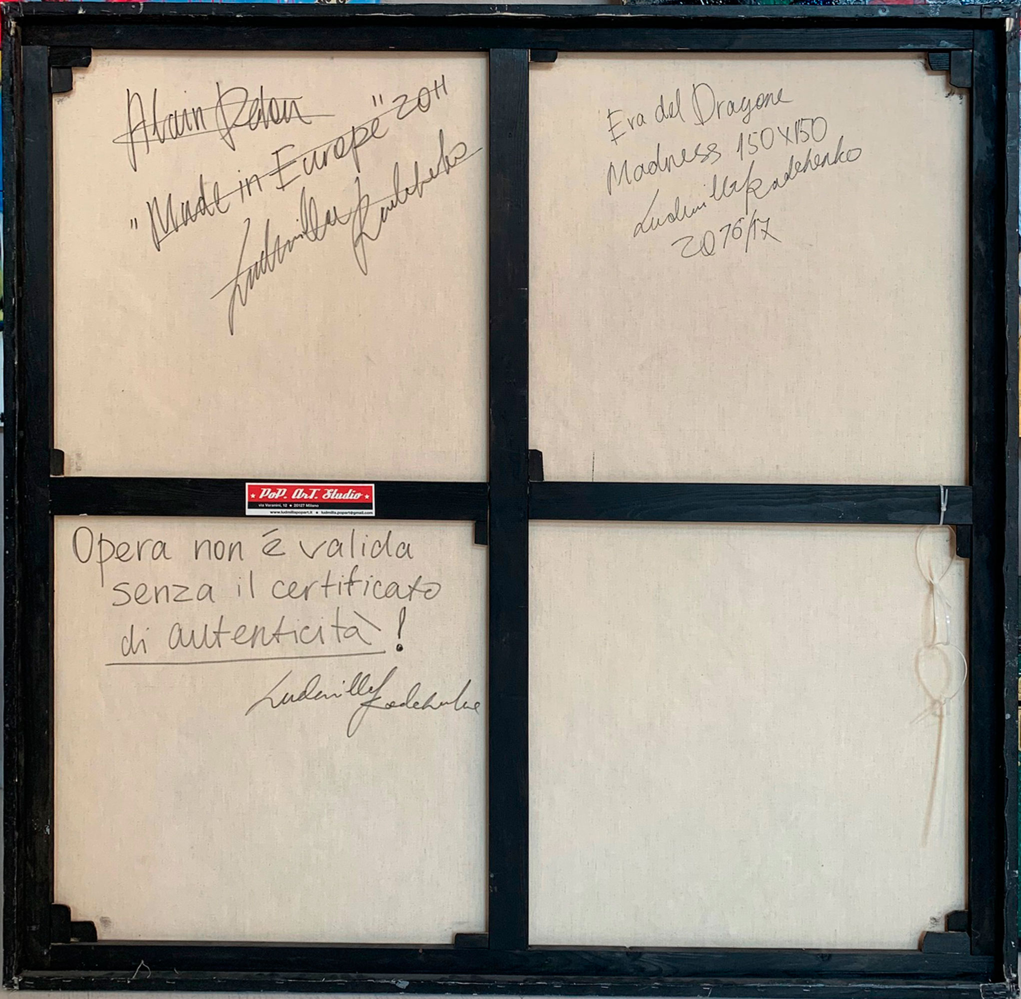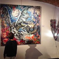 MOMENTO CRUCIALE DELLA STORIA, UN PUNTO DI NON RITORNO PER L’UMANITÀ. NE NASCE UN VISCERALE DESIDERIO DI ESSERE TRASPORTATI ALTROVE.. ... LA DOVE L’ANIMA EMERGE, PAVENTANDO IL SUO SPAZIO ALL’IMPROVVISO, IN UN MONDO PARALLELO, UNA DIMENSIONE SURREALE AFFIANCATA DALLA PURA FANTASIA, FACENDOLA EVOLVERE NELLA DINAMICA POP.VIBRAZIONI PROFONDE SOTTO LE SETOLE DEI PENNELLI DELL’ARTISTA SIBERIANA. LUDMILLA RADCHENKO, ALL’APICE DEL SUO DESIDERIO DI TRASMETTERE LA VULNERABILITÀ DEI PROPRI SENTIMENTI, CI PORTA PREPOTENTEMENTE COSI’ COME MAGICAMENTE ATTRAVERSO QUESTE OPERE A SCOPRIRE IL SUO MONDO PERMEATO DI RACCONTI FIABESCHI. ECCOCI DOLCEMENTE IMMERSI IN UN AMBIENTE INCANTATO, DOVE LE SIRENE CON IL LORO CANTO ADDOLCISCONO IL TRANSITO DI NOI NOVELLI ULISSE, L’ UNICORNO SPIEGA PREPOTENTEMENTE LE SUE ALI IN RADIOSI ARCOBALENI, DOVE IL FAMOSO “SPECCHIO DELLE MIE BRAME” TI SFIDA A GUARDARE DENTRO TE STESSO. I LUOGHI DELLA MENTE E DELL’ANIMA DOVE I DRAGHI MOSTRANO IL LORO NON ESSERE MOSTRI, I LORO SENTIMENTI, LA LORO ANIMA “GIGANTE” E MAI INGOMBRANTE. DOVE L’ATTESA DEL SOGNO INCONTRA LA REALTÀ... L’ ARTISTA STESSA SI IMMEDESIMA PROFONDAMENTE NEL RUOLO DI TUTTI I SUOI PERSONAGGI, CALZANDO, FACENDO SOMMESSAMENTE SCIVOLARE LA SUA ANIMA SOTTO LA LORO PELLE. LE SUE MANI PLASMANO, COSTRUISCONO, MODELLANO, IL SUO MONDO IRREALE, PEZZO DOPO PEZZO DAI PRODOTTI DI UNA REALTA FATTA DEL SOLO CONSUMO: RITAGLI DEI GIORNALI, PUBBLICITÀ, PIZZI, ADESIVI E ACCESSORI DIVERSI E VARI CHE SEMBRANO SPESSO CIANFRUSAGLIE DI TEMPI LONTANI, DELLE NONNE, RIPORTANDO VITA IN TUTTO, OGGETTI DI UN TEMPO SMARRITO MA PRESENTE, PERSO E RITROVATO A TRATTI, CON GIOIA PROFONDA. UNDICI PEZZI ASSOLUTAMENTE UNICI RAPPRESENTANO LA CREATIVITÀ MANUALE DELLA RADCHENKO A 360 GRADI, LA TECNICA DEL DECOUPAGE E DEL COLLAGE INSIEME RENDONO OGNI OPERA DEL’ARTISTA ASSOLUTAMENTE IRRIPETIBILE.UN MONDO FATTO D’INCANTO CHE TRASCINA ED AVVILUPPA LO SGUARDO INCANTATO DELLO SPETTATORE. I DRAGHI SONO DENTRO DI NOI. CI SPIANO L’ANIMA. TENTANO DI SOVRASTARLA CON LA LORO MOLE, I LORO OCCHI INQUIETANTI, IL LORO FUOCO. L’ARTISTA LI ADDOMESTICA NELLA SUA NUOVA SERIE “ERA DEL DRAGONE”. LI RENDE VICINI A NOI. NELLA DOLCE “CONFUSIONE “ ORGANIZZATA DEL POP. MADNESS, 150X150CM LA FOLLIA È UNA CONDIZIONE COMPLESSA, LEGATA AD ISTINTI ED EMOZIONI PROFONDE, SPESSO REPRESSE E NASCOSTE. L’ACCEZIONE NEGATIVA DI QUESTO STATO D’ANIMO VIENE RIVALUTATA, LA FOLLIA DEL DRAGONE È RAPPRESENTATA SULLA TELA IN TUTTA LA SUA FORZA PRIMORDIALE, COME UN’INVITO A TRASFORMARE IN FORZA INVECE DI REPRIMERE L’IMPETO DEI PROPRI SENTIMENTI: C’È SEMPRE UN GRANO DI PAZZIA NELL’AMORE COSÌ COME C’È UN GRANO DI LOGICA NELLA FOLLIA. A CRUCIAL MOMENT IN HISTORY, A POINT OF NO RETURN FOR HUMANITY. THE RESULT IS A VISCERAL DESIRE TO BE TRANSPORTED SOMEWHERE ELSE .. ... WHERE THE SOUL EMERGES, FEARING ITS SPACE SUDDENLY, IN A PARALLEL WORLD, A SURREAL DIMENSION FLANKED BY PURE FANTASY, MAKING IT EVOLVE IN THE DYNAMIC POP. DEEP VIBRATIONS UNDER THE BRISTLES OF THE BRUSHES OF THE SIBERIAN ARTIST. LUDMILLA RADCHENKO, AT THE HEIGHT OF HER DESIRE TO CONVEY THE VULNERABILITY OF HER FEELINGS, LEADS US SO POWERFULLY AND MAGICALLY THROUGH THESE ARTWORKS TO DISCOVER HER WORLD PERMEATED WITH FAIRY TALES. HERE WE ARE GENTLY IMMERSED IN AN ENCHANTED ENVIRONMENT, WHERE THE SIRENS WITH THEIR SONG SWEETEN THE TRANSIT OF US NOVICES ULYSSES, THE UNICORN FORCEFULLY SPREADS ITS WINGS IN RADIANT RAINBOWS, WHERE THE FAMOUS "MIRROR OF MY DESIRES" CHALLENGES YOU TO LOOK INSIDE YOURSELF. PLACES OF MIND AND SOUL WHERE DRAGONS SHOW THEIR BEING NON-MONSTERS, THEIR FEELINGS, THEIR "GIANT" AND NEVER BULKY SOUL. WHERE THE EXPECTATION OF DREAMS MEETS REALITY ... THE ARTIST HERSELF IDENTIFIES HERSELF DEEPLY WITH THE ROLE OF ALL HER CHARACTERS, PUTTING ON HER, SOFTLY SLIPPING HER SOUL UNDER THEIR SKIN. HER HANDS MOLD, BUILD, SHAPE, THIS UNREAL WORLD, PIECE BY PIECE FROM THE PRODUCTS OF A REALITY MADE OF CONSUMPTION: NEWSPAPER CUTS IN LITTLE PIECES, ADVERTISEMENTS, LACE, STICKERS AND VARIOUS AND VARIOUS ACCESSORIES THAT OFTEN SEEM JUNK OF ANCIENT TIMES, BRING LIFE BACK INTO EVERYTHING, OBJECTS OF A LOST TIME BUT PRESENT, LOST AND REDISCOVERED AT TIMES, WITH PROFOUND JOY. ELEVEN ABSOLUTELY UNIQUE PIECES REPRESENT THE MANUAL CREATIVITY OF RADCHENKO AT 360 DEGREES, THE TECHNIQUE OF DECOUPAGE AND COLLAGE TOGETHER MAKE EACH ARTWORK OF THE ARTIST ABSOLUTELY UNREPEATABLE. A WORLD OF ENCHANTMENT THAT DRAWS AND ENVELOPS THE ENCHANTED GAZE OF THE VIEWER. DRAGONS ARE WITHIN US. THE SOUL SPIES ON US. THEY TRY TO DOMINATE IT WITH THEIR BULK, THEIR DISQUIETING EYES, THEIR FIRE. THE ARTIST TAMES THEM IN HER NEW SERIES " DRAGON'S ERA". MAKING THEM CLOSE TO US. IN THE SWEET "CONFUSION" ORGANIZED BY THE POP. MADNESS, 150X150CM MADNESS IS A COMPLEX CONDITION, LINKED TO DEEP INSTINCTS AND EMOTIONS, OFTEN REPRESSED AND HIDDEN. THE NEGATIVE MEANING OF THIS STATE OF MIND IS RE-EVALUATED, THE MADNESS OF THE DRAGON IS REPRESENTED ON THE CANVAS IN ALL ITS PRIMORDIAL STRENGTH, LIKE AN INVITATION TO TRANSFORM INTO STRENGTH INSTEAD OF REPRESSING THE IMPETUS OF ONE'S FEELINGS: THERE IS ALWAYS A GRAIN OF MADNESS IN LOVE AS THERE IS A GRAIN OF LOGIC IN MADNESS.