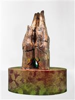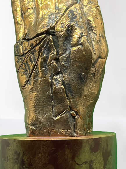 THIS BRONZE SCULPTURE IS A BRONZE FUSION CONDUCTED IN PIETRASANTA AT THE "FONDERIA VERSILIESE", THE SAME PLACE WHERE THE FAMOUS SCULTURER BOTERO CREATES HIS CREATIONS. THIS IS THE SOLE REALISATION AND IT'S ONE OF THE KERNEL OBJECT IN GIANNA MOISE'S ARTWORKS, AS THE 'PRAY' IS OMNIPRESENT IN HER ART, BOTH IN GLASS AND PAINT .