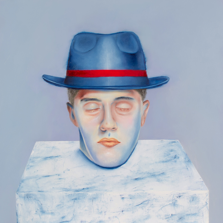 THE PAINTING IS PART OF A DIPTYCH AND SHOWS AN AB- SURD BEHEADED MAN, STILL AND SILENT