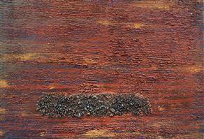IL SEGNO E LE CROMIE DELLE SUPERFICI DI QUESTA TELA SONO COME UNA SCIA DI “LIQUIDO BIOLOGICO” IN CUI SI TRASMETTE LA NECESSITÀ DI TOCCARE, RESPIRARE, VIVERE LE TRACCE MNEMONICHE DEL GESTO DELLA PITTURA. UNA TRAMA FITTISSIMA E STRATIFICATA DI CONFINI SMANTELLATI D’IDENTITÀ MONOCROMATICHE IN CUI INTRECCIARE I FILI DELLA NARRATIVA DEL MONDO CON L’IGNOTO E LA SPERANZA.
