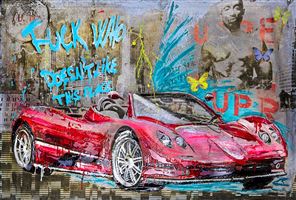 DRIVE MACHINE DAI MODELLI SPORTIVI E VELOCI DI FERRARI E LAMBORGHINI, FINO AL MEMORABILE FURGONCINO VOLKSWAGEN, SIMBOLO DI UN’INTERA GENERAZIONE, PASSANDO PER I MITI ITALIANI FIAT 500 E VESPA... GLI ESEMPLARI PIÙ ICONICI DELLA STORIA DEI VEICOLI A MOTORE HANNO ISPIRATO LA SERIE “DRIVE MACHINE”, REALIZZATA DALL’ARTISTA NEL CORSO DELL’ANNO 2017. UN PROGETTO TANTO INNOVATIVO QUANTO COMPLESSO, PARTITO DA UN IMPONENTE LAVORO DI GRAFICA CHE HA ESTRAPOLATO VARI ELEMENTI DALLE FOTOGRAFIE DI VIAGGIO, DANDO ALLA LUCE LE BASI PER LA STAMPA SU UNO SPECIALE TESSUTO CATARIFRANGENTE. IL RISULTATO È UNA SERIE D’ISPIRAZIONE ORIGINALE E CARATTERIZZATA DA COLORI ACCESI, STESI MANUALMENTE SU UN TESSUTO CAPACE DI MUTARE COSTANTEMENTE A SECONDA DELLA LUCE, CHE GARANTISCE UN EFFETTO SEMPRE NUOVO E STUPEFACENTE. DRIVE MACHINE FROM THE SPORTY AND FAST MODELS OF FERRARI AND LAMBORGHINI TO THE MEMORABLE VOLKSWAGEN VAN, THE SYMBOL OF AN ENTIRE GENERATION, PASSING THROUGH THE ITALIAN MYTHS FIAT 500 AND VESPA ... THE MOST ICONIC MODELS IN THE HISTORY OF MOTOR VEHICLES INSPIRED THE SERIES " DRIVE MACHINE ", CREATED BY THE ARTIST DURING THE YEAR 2017. A PROJECT AS INNOVATIVE AS IT IS COMPLEX, WHICH STARTED WITH AN IMPRESSIVE GRAPHIC WORK THAT HAS EXTRAPOLATED VARIOUS ELEMENTS FROM TRAVEL PHOTOGRAPHS, GIVING BIRTH TO THE BASIS FOR PRINTING ON A SPECIAL REFLECTIVE FABRIC. THE RESULT IS A SERIES OF ORIGINAL INSPIRATION AND CHARACTERIZED BY BRIGHT COLORS, APPLIED MANUALLY ON A FABRIC CAPABLE OF CONSTANTLY CHANGING ACCORDING TO THE LIGHT, WHICH GUARANTEES AN ALWAYS NEW AND AMAZING EFFECT. SERIES ARTWORK MADE IN 2017, UNIQUE PIECE TECHNIQUE - DIGITAL COLLAGE PRINTING ON REFLECTIVE FABRIC (WITH THE CHARACTERISTIC THAT REFLECTS DIRECT LIGHT, GENERALLY USED FOR "WORK IN PROGRESS" VESTS IN ROAD PROTECTION), ACRYLIC AND FLEXIBLE RESIN. EACH ARTWORK MAY HAVE A FRAME DESCRIBING THE FINAL COLLECTOR.