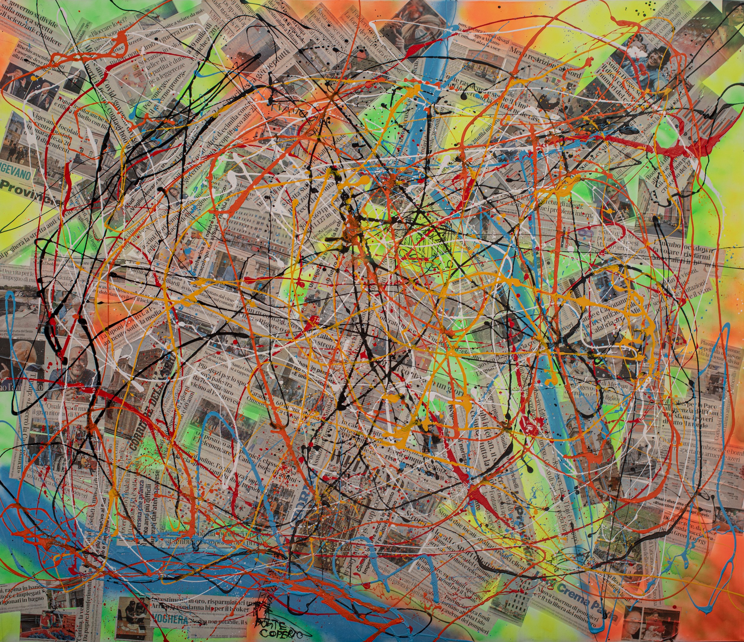COLLAGE E VERNICE ACRILICA SU TELA