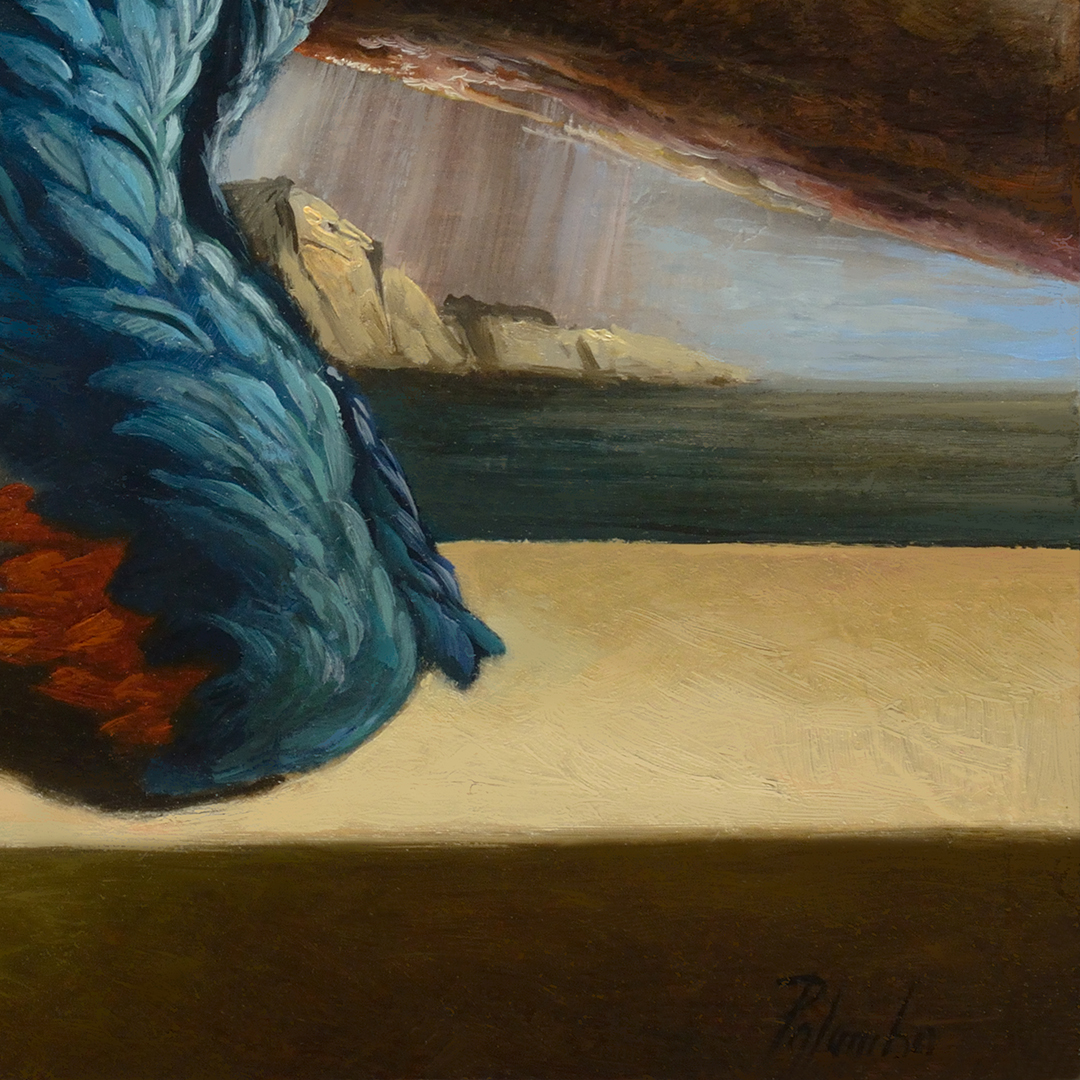 Nato a Zurigo nel 1965. Il suo percorso artistico prende l’avvio dalla poetica della scuola Metafisica di Giorgio de Chirico e Alberto Savinio, per reinventarne tuttavia i fondamenti secondo un’interpretazione personale del tutto originale. Nella sua ricerca procede attraverso momenti di contemplazione e silenzi metafisici, a cui si contrappongono espressività notturne e intimamente travagliate, dove si respira netto il distacco dall’immobilità silente che abita le tele del Pictor Optimus. Le sue opere si presentano dunque come palcoscenici in cui gli oggetti presenti sono portatori di simbologie oniriche. Ciro Palumbo non è solo un pittore, ma di fatto un poeta che riflette, agisce e compone per coniugare metafore sull’inafferrabilità del tempo e l’incommensurabilità dello spazio, mostrando quindi la sua capacità di approfondire l’osservazione non tanto della natura, quanto delle impressioni immaginifiche che provengono dalla memoria. Curioso ricercatore e studioso, lavora da qualche anno anche sul tema del Mito, interpretando la mitologia classica in chiave squisitamente moderna, e dandone una lettura profondamente colta e suggestiva. L’artista riesce dunque a sublimare e contestualizzare i miti antichi in spazi al di fuori del tempo, dimostrando la loro contemporaneità. La sua formazione di grafico pubblicitario lo porta ad esercitare per anni la professione di Art Director in Agenzie pubblicitarie di Torino. È durante questo percorso che scopre ed amplia le sue capacità visive e compositive. Successivamente, l’esperienza in una moderna bottega d’arte e la conoscenza di alcuni Maestri contemporanei, lo conducono ad approfondire la tecnica della pittura ad olio con velatura. Negli ultimi anni l’artista si dedica con successo anche alla scultura donando tridimensionalità, attraverso la terracotta, ai topos della sua poetica. Mostre ed eventi più recenti Mostre personali Rinascenza. Dolor et Furor a cura di Luca Cantore D’Amore presso Palazzo Velli Expo, Roma (in collaborazione con 7ettanta6ei Art, Milano) maggio 2021 Homo Viator. Il poeta visionario a cura di Salvo Daniele Torrisi presso Ex Chiesa del Carmine, Taormina (Me) (organizzata da Catania Art Gallery / con rappresentazione della pièce teatrale ispirata all’Homo Viator, scritta e interpretata da PierGiuseppe Francione) agosto 2020 Moby Dick mi disse a cura di Laura Tartarelli presso Laura Tartarelli Contemporary Art, Pietrasanta (Lu) luglio 2020 La pittura. Una finzione vera presso Castello Baronale di Minturno (Lt) (organizzata da Cristiano Art Gallery) 2019 Homo Viator. Il poeta visionario presso Stadio di Domiziano, Roma (organizzata da Canova Arte, Roma / con rappresentazione della pièce teatrale ispirata all’Homo Viator, scritta e interpretata da PierGiuseppe Francione) 2019 Rinascenza. Un risveglio per l’anima (all’interno della collettiva “Risvegli”) presso Museo civico di Palazzo della Penna, Perugia (organizzata da Michela Lupi e Antonello Turchetti / in collaborazione con 7ettanta6ei Art, Milano) 2019 The strenght of gods and heroes. La forza degli dei e degli eroi a cura di Angelo Crespi presso: . ST ART, Mondadori Megastore, Milano . Stadio di Domiziano, Roma 2018 Palumbo - Fellini. Immaginario surreale tra pittura e cinema (all’interno dell’Ischia Film Festival) presso Carcere Borbonico del Castello Aragonese d’Ischia, Ischia (Na) (organizzata da 7ettanta6ei Art, Milano) 2018 Rinascenza. La pittura, un segreto non ancora svelato presso Palazzo Medici Riccardi, Sale Fabiani, Firenze (organizzata da Riccardo Ferrucci / in collaborazione con 7ettanta6ei Art, Milano) 2018 Isole migranti a cura di Ivan Quaroni e Alessandra Redaelli presso Palazzo della Cultura, Catania 2017 Il volo del Poeta visionario con racconti in versi di Aldo Nove a cura di Alessandra Redaelli presso Sala Colonnato del Palazzo della Città Metropolitana di Bari, Bari 2016 Le Soglie dell’enigma a cura di Francesca Bogliolo presso Galleria Il Forte Antichità, Forte dei Marmi (Lu) 2016 Lo Spirito e la Carne a cura di Alessandra Redaelli presso Galleria Biffi Arte, Piacenza 2016 Homo Viator a cura di Flaminio Gualdoni / con testo di Riccardo Ferrucci presso Museo Piaggio, Pontedera (Pi) 2016 Sguardi eterni tra la terra e il cielo a cura di Alessandra Redaelli (organizzata dal MACS di Catania) presso: . MAUTO Museo Nazionale dell’Automobile di Torino . Castello di Schisò, Giardini Naxos (Me) . Castello Carlo V, Monopoli (Ba) 2015 I mulini di Dio a cura di Alessandra Frosini e Stefano Gagliardi (organizzata da ArToday Events, San Gimignano) presso Ex Ospedale San Rocco, Matera 2015 La solitudine di Prometeo Presso MACS Museo Arte Contemporanea Sicilia, Catania 2014 I mulini di Dio a cura di Alberto Agazzani (organizzata dalla Galleria Gagliardi, San Gimignano) presso Convento di Santo Spirito ex carceri, Nola (Na) 2014 Affinità silenti. Giorgio de Chirico e Ciro Palumbo a cura di Paolo Levi (organizzata da Sangiorgio International) presso Spazio Espositivo e Culturale della Società Bancaria Ticinese, Bellinzona, Svizzera 2014 Metafisiche visioni a cura di Stefania Bison presso Manni Art Gallery, Venezia Lido 2013 Islands and journeys. The color of silence presso Just Art - Contemporary Art Gallery, Providence (USA) 2013 Viaggi, naufragi, tempeste e nuove rotte a cura di Alberto D’Atanasio presso Galleria Arte Barbato, Scafati (Sa) 2013 Nuove terre e nuovi mari a cura di Alberto D’Atanasio presso Galleria Wikiarte, Bologna 2013 Al di là della realtà del nostro tempo presso Centrum Sete Sóis Sete Luas, Frontignan, Francia 2013 Il mistero dell’isola a cura di Alberto D’Atanasio presso CERP/Centro Espositivo Rocca Paolina, Perugia 2012 Paestum Arte 2012 (organizzata dall’ Associazione culturale G. Verdi) Paestum (Sa) 2012 Di aria, di acqua di terra, di fuoco, sono le sostanze dei sogni presso Civica Galleria d’Arte moderna “Giuseppe Sciortino”, Monreale (Pa) 2012 Il mistero dell