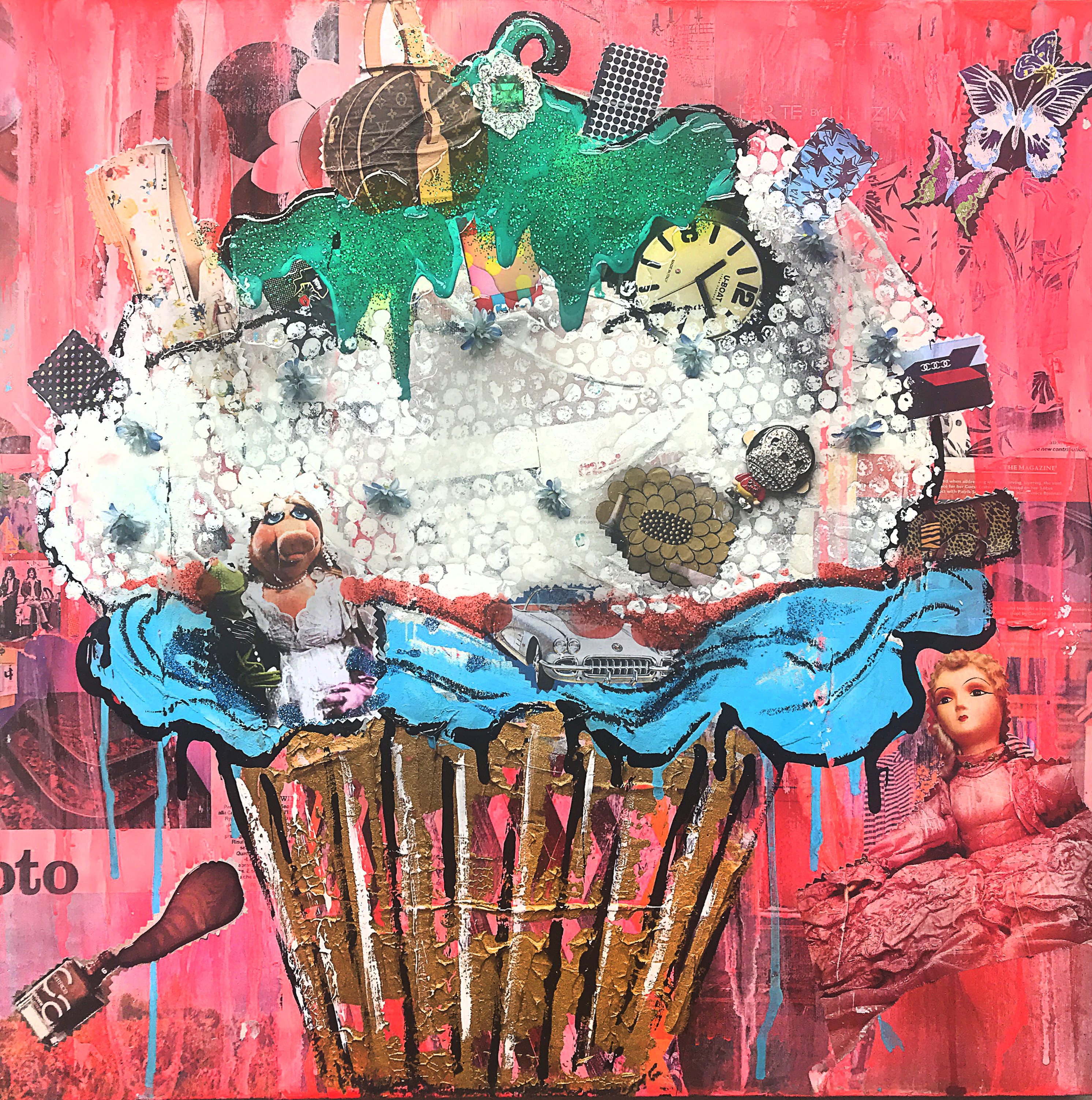 OGNUNA DELLE OPERE DELLA SERIE "POP CAKES", HA PER SOGGETTO VIVACI CUPCAKES, I DOLCI TREND DEL MOMENTO. CIASCUNA TELA PRESENTA UNA FORTE PERSONALITÀ, CONFERITA DALL’ARTISTA SIBERIANA CONIUGANDO LA TECNICA DEL COLLAGE CON UN DELICATO LAVORO DI DETTAGLI REALIZZATI A MANO, RIFINITI IN ACRILICO E RESINA. INSIEME, LE OPERE RAPPRESENTANO UNA “SWEET OVERDOSE”, UN IPERDOSAGGIO DI ARTE, COLORI ED ENERGIA. EACH OF THE ART WORKS IN THE "POP CAKES" SERIES HAS LIVELY CUPCAKES AS ITS SUBJECT, THE SWEET TRENDS OF THE MOMENT. EACH CANVAS HAS A STRONG PERSONALITY, CONFERRED BY THE SIBERIAN ARTIST BY COMBINING THE COLLAGE TECHNIQUE WITH A DELICATE WORK OF HANDMADE DETAILS, FINISHED WITH ACRYLIC AND RESIN. TOGETHER, THE WORKS REPRESENT A "SWEET OVERDOSE", AN OVERDOSE OF ART, COLORS AND ENERGY.