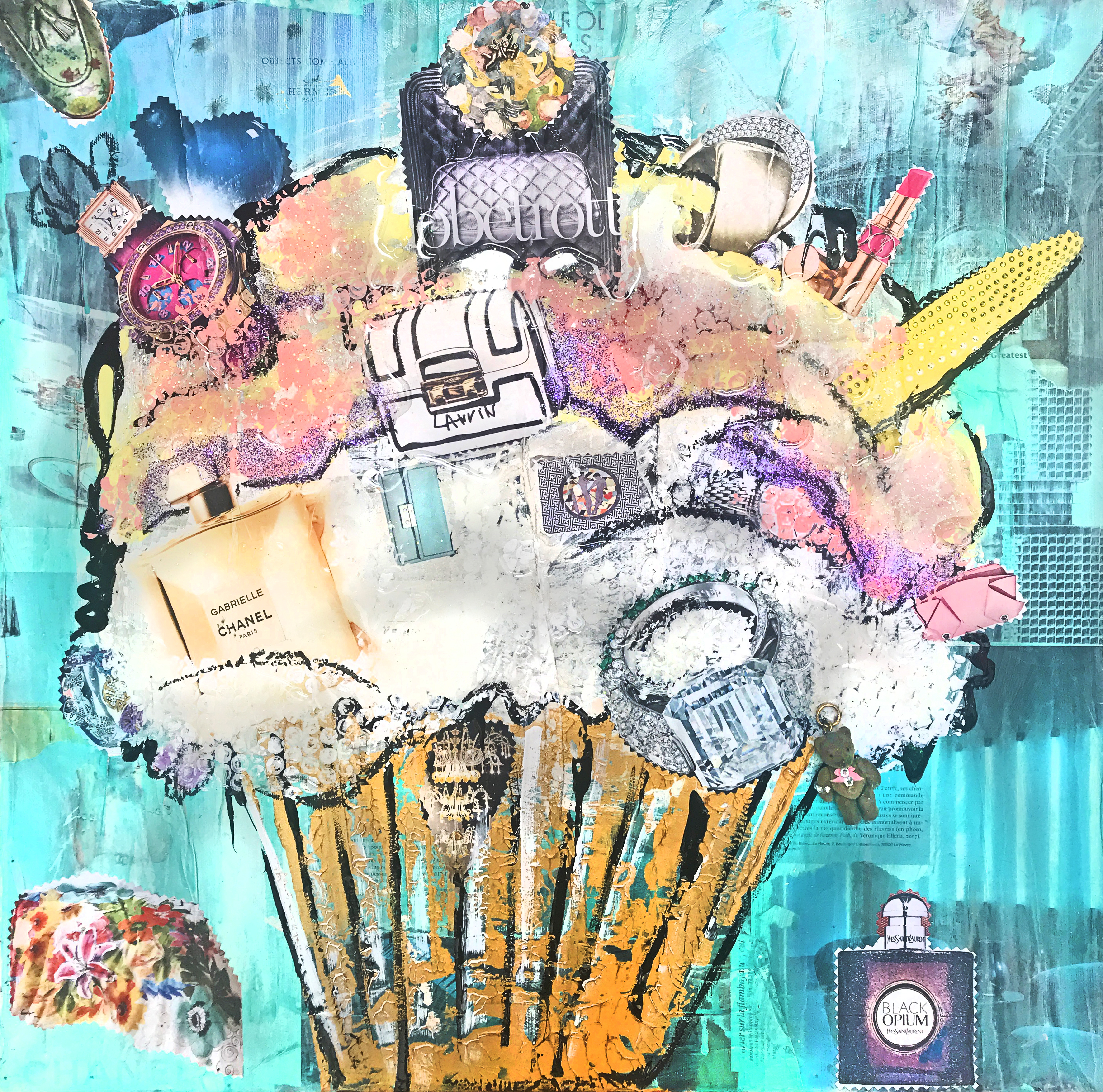 OGNUNA DELLE OPERE DELLA SERIE "POP CAKES", HA PER SOGGETTO VIVACI CUPCAKES, I DOLCI TREND DEL MOMENTO. CIASCUNA TELA PRESENTA UNA FORTE PERSONALITÀ, CONFERITA DALL’ARTISTA SIBERIANA CONIUGANDO LA TECNICA DEL COLLAGE CON UN DELICATO LAVORO DI DETTAGLI REALIZZATI A MANO, RIFINITI IN ACRILICO E RESINA. INSIEME, LE OPERE RAPPRESENTANO UNA “SWEET OVERDOSE”, UN IPERDOSAGGIO DI ARTE, COLORI ED ENERGIA. EACH OF THE ART WORKS IN THE "POP CAKES" SERIES HAS LIVELY CUPCAKES AS ITS SUBJECT, THE SWEET TRENDS OF THE MOMENT. EACH CANVAS HAS A STRONG PERSONALITY, CONFERRED BY THE SIBERIAN ARTIST BY COMBINING THE COLLAGE TECHNIQUE WITH A DELICATE WORK OF HANDMADE DETAILS, FINISHED WITH ACRYLIC AND RESIN. TOGETHER, THE WORKS REPRESENT A "SWEET OVERDOSE", AN OVERDOSE OF ART, COLORS AND ENERGY.