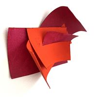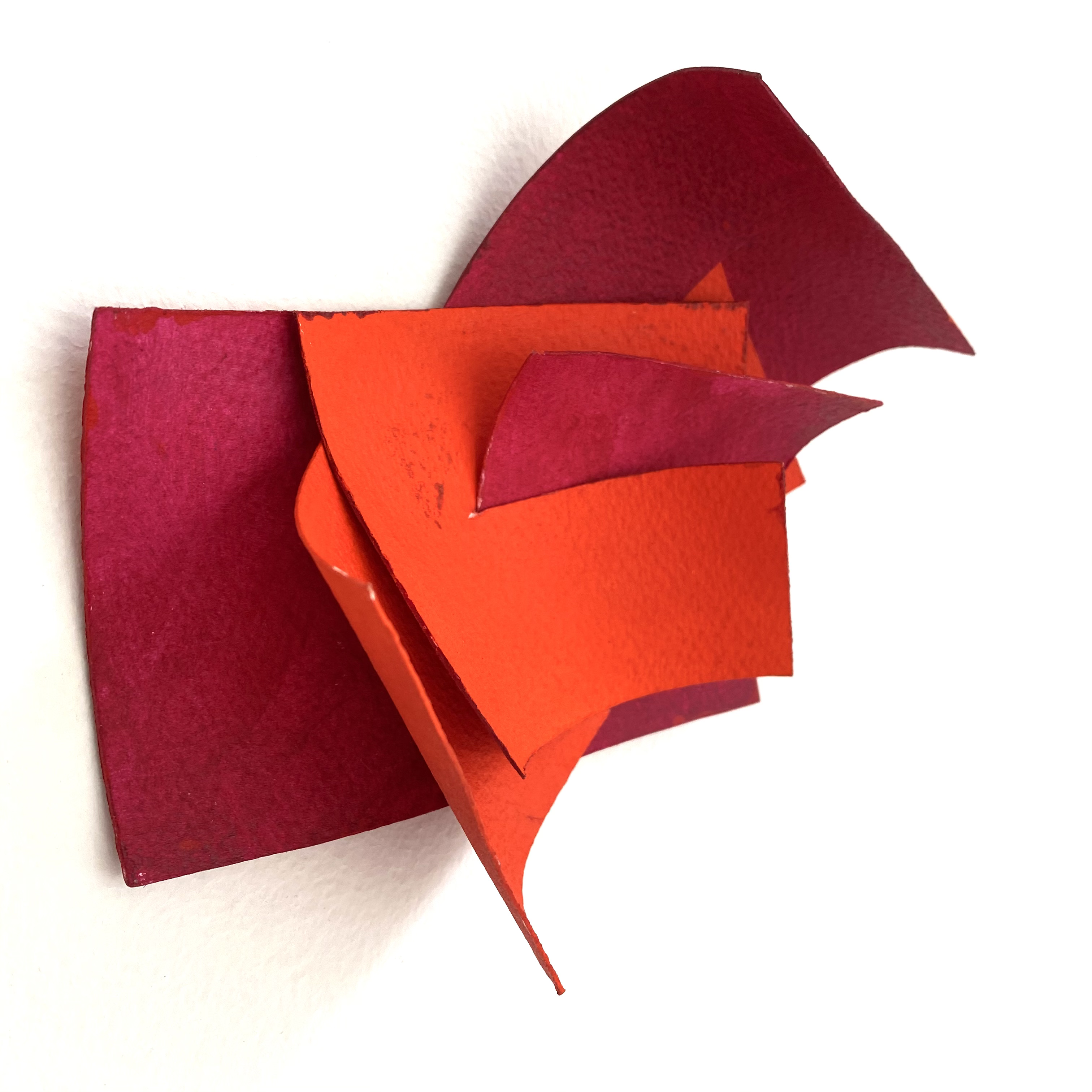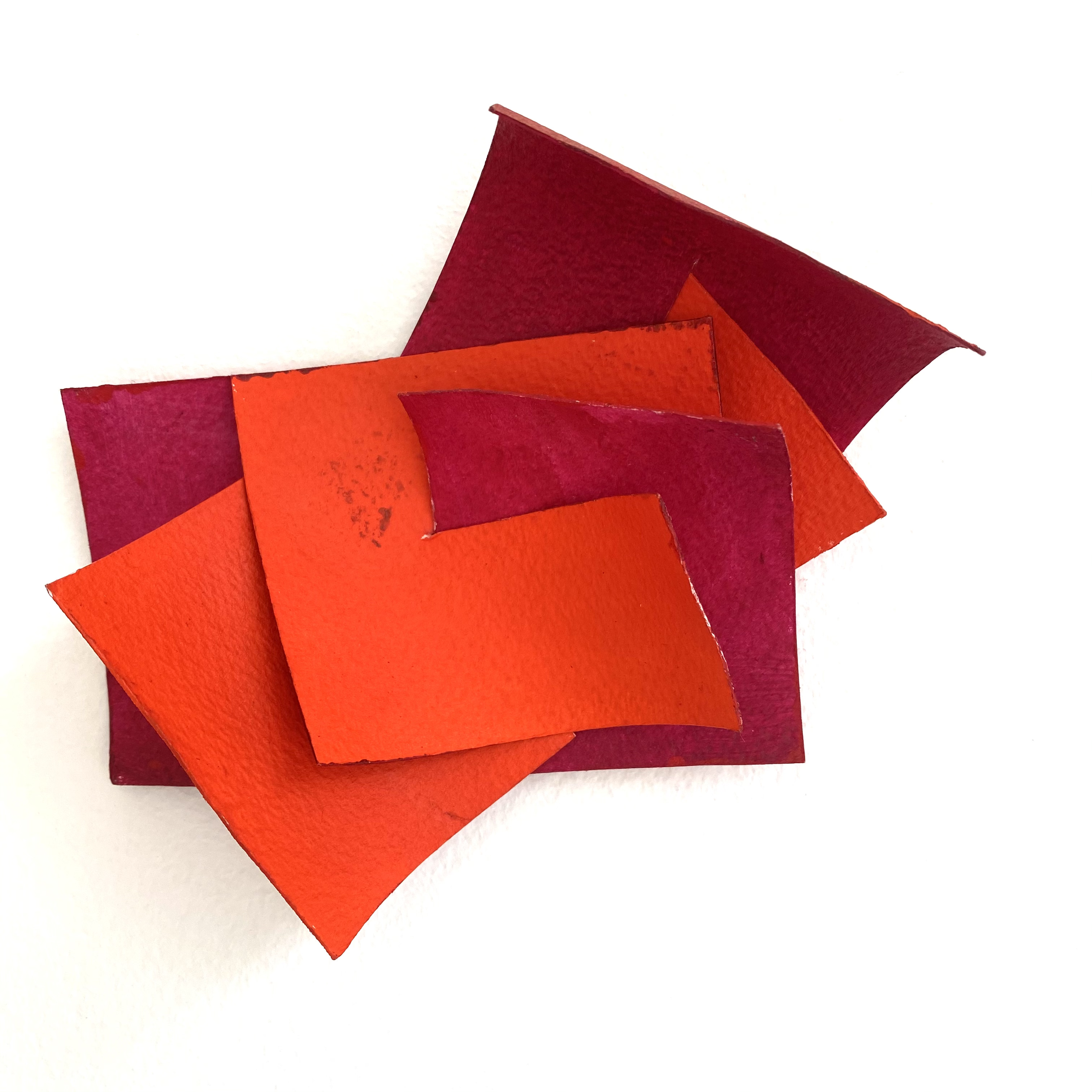 QUEST’ OPERA FA PARTE DELLA SERIE 'ONDE DI COLORE’. IL COLORE È PROTAGONISTA E VIENE USATO COME STRUMENTO PER TRASMETTERE VITALITÀ E ENERGIA. IL COLORE SI UNISCE ALLA FORMA DATA DALLA TRIDIMENSIONALITÀ DELL’OPERA. COLORE E FORMA DANZANO INSIEME CREANDO MOVIMENTO E RITMO. IL MOVIMENTO SUGGERITO NON È CONCLUSO IN QUANTO È CREATO DA UNA STRUTTURA MODULARE, CHE POTREBBE CONTINUARE ALL’INFINTO. LO SPETTATORE IN QUESTO MODO PUÒ CONTINUARLO NELLA SUA MENTE RICREANDO L’ARMONIA CHE DA ESSO SCATURISCE. HO SCELTO ARANCIO E ROSSO CICLAMINO, TONALITÀ CHE IL NOSTRO CERVELLO ASSOCIA ALLA GIOIA. L’OPERA È UNA SCULTURA SU CARTA DI COTONE NATURALE DI ALTISSIMA QUALITÀ