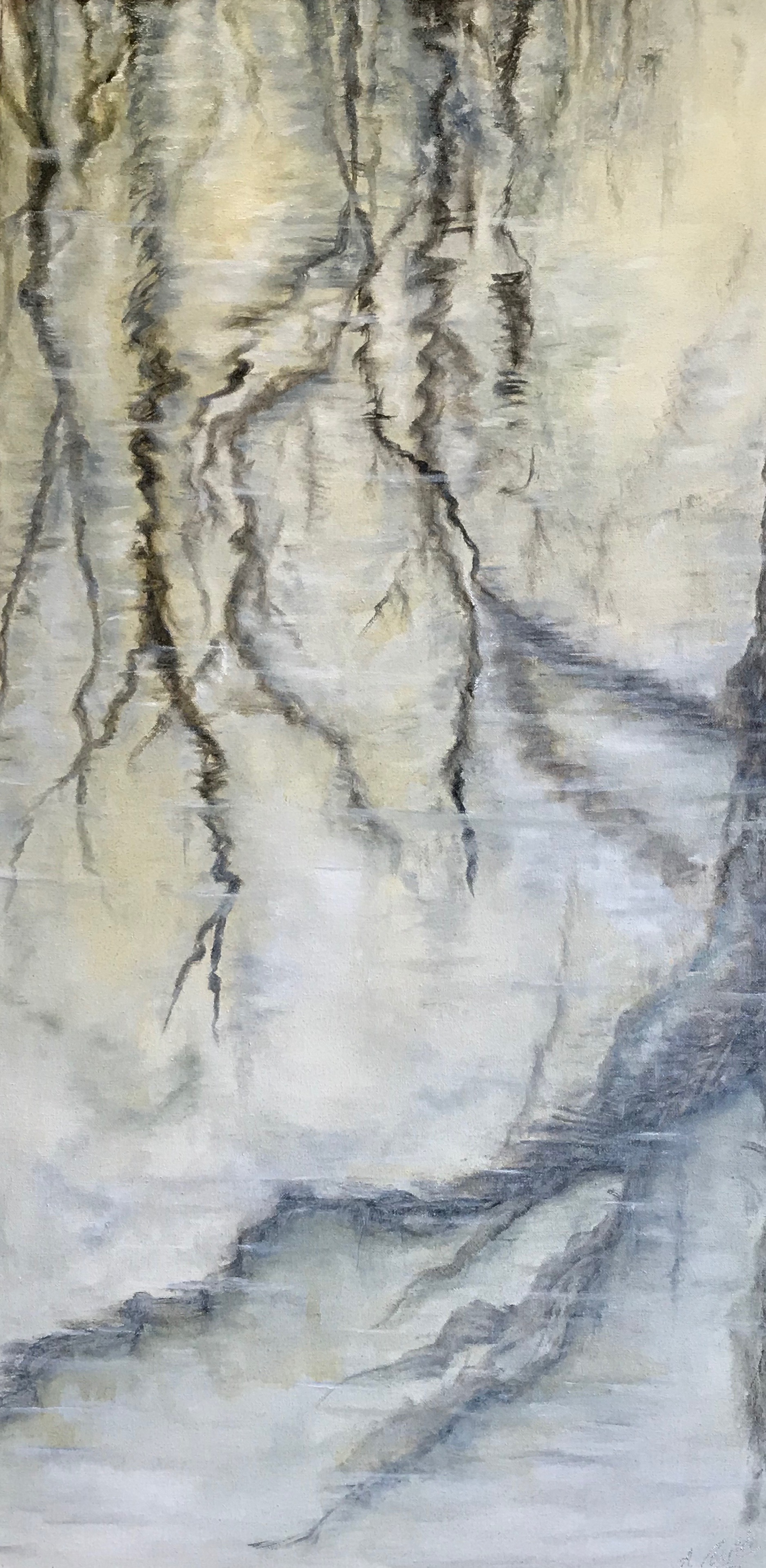 MIRADA DE LOS REFLEJOS PRODUCIDOS EN UN LAGO ARTIFICIAL A PRINCIPIOS DE INVIERNO.