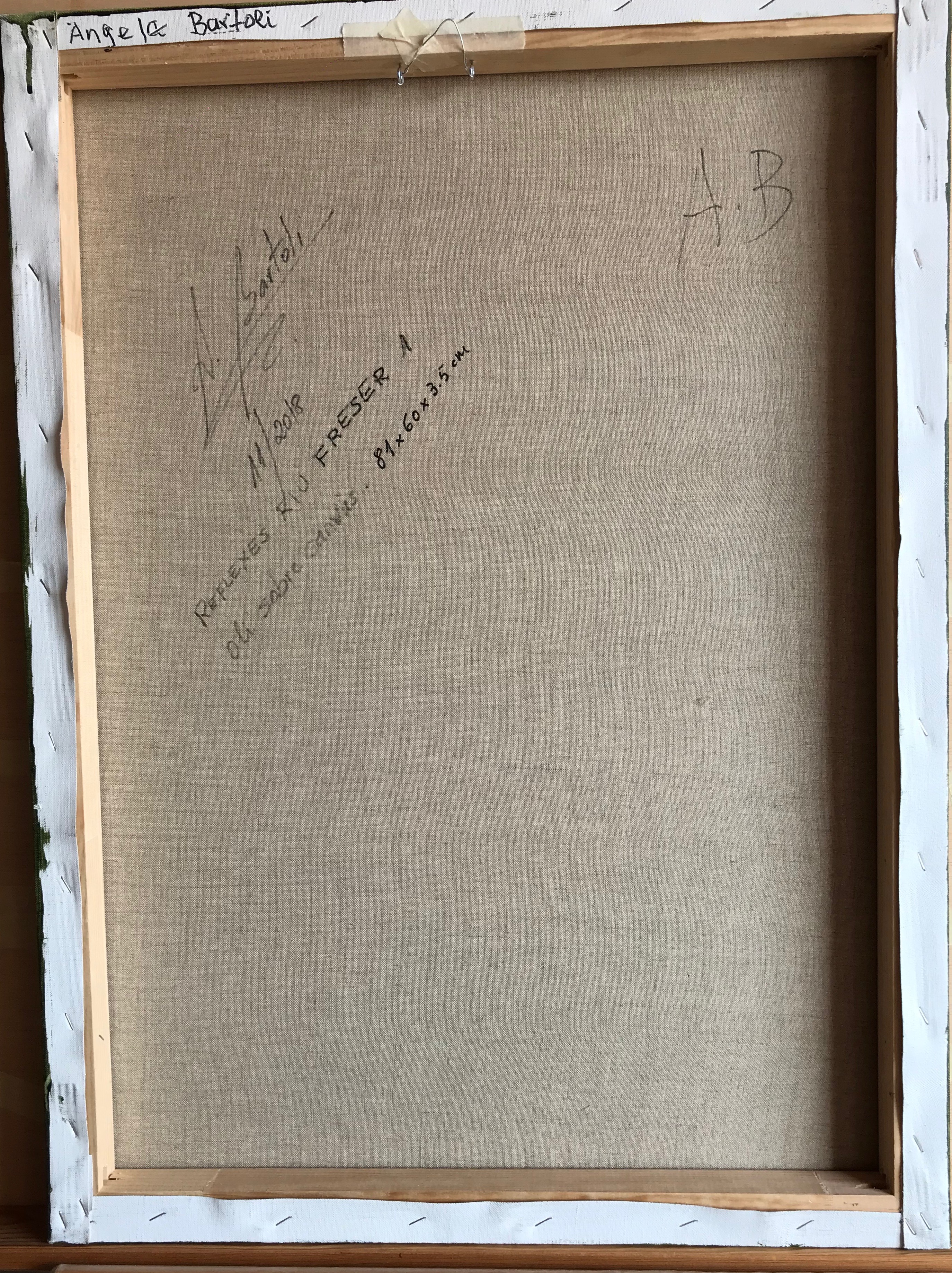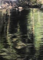 OBRA INSPIRADA EN LA NATURALEZA. ES LA MIRADA DESDE UNA DE LAS RIVERAS A LA OTRA DEL RIO FRESER. TONALIDADES DE VERDES, OCRES Y NEGRO VAN DEFINIENDO LOS DIFERENTES NIVELES Y DISTÁNCIAS DE LO QUE SE REFLEJA EN EL AGUA.