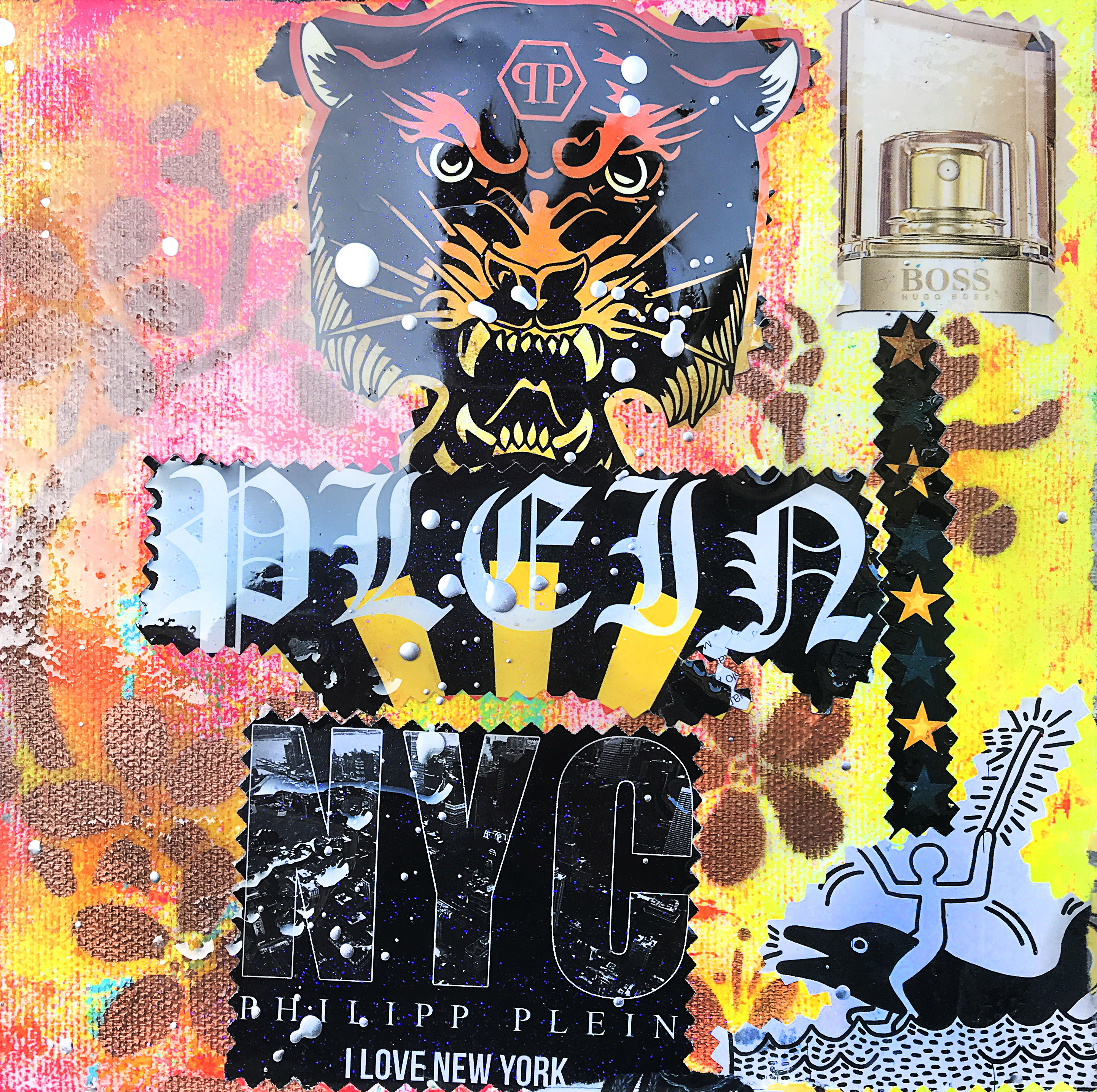 TECHNIQUE: COLLAGE, ACRYLIC, RESIN ON CANVAS