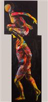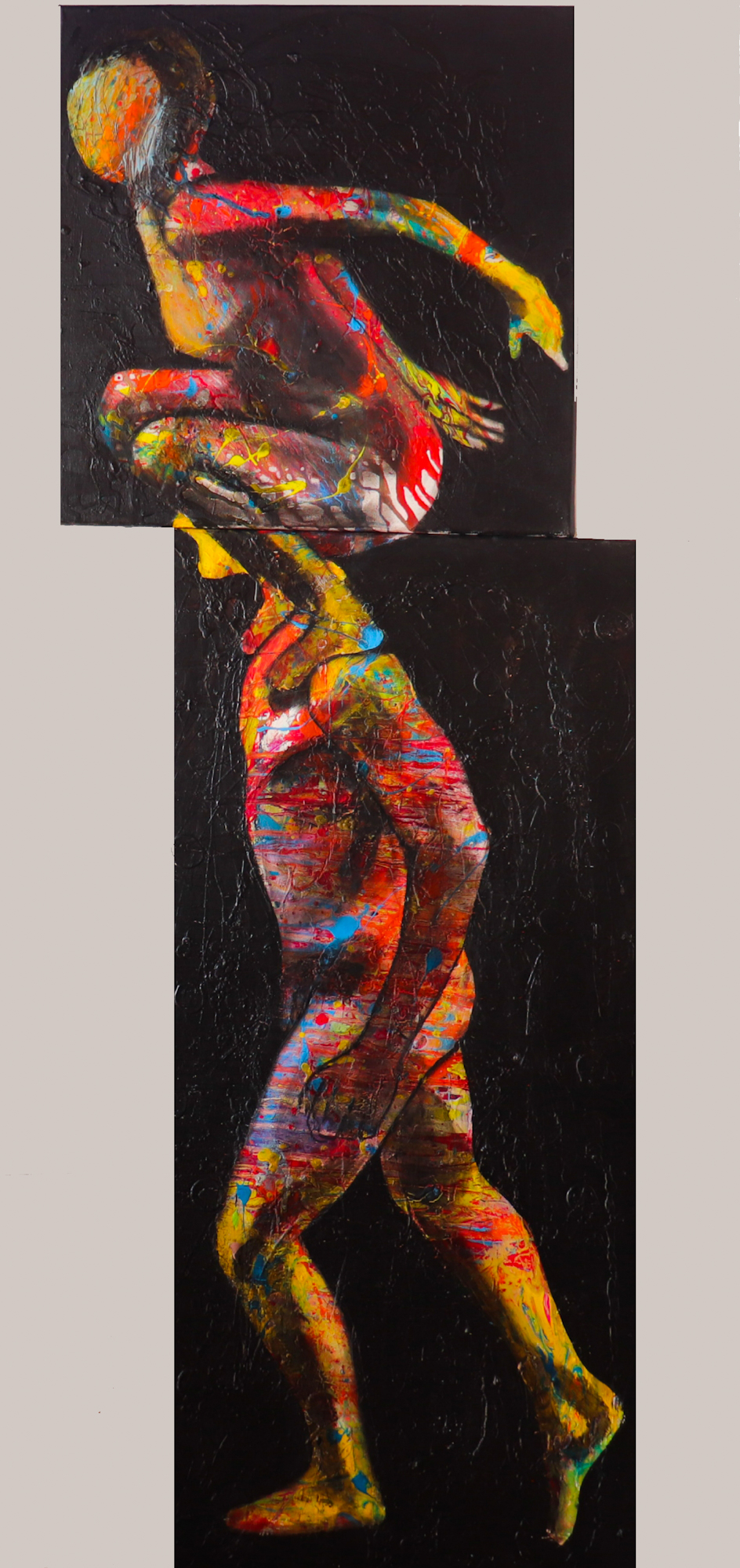 UN MARE DI COLORI EMERGONO DAL FONDO SCURO E DANNO FORMA A S-LANCIO: DUE FIGURE IN EQUILIBRIO CAMMINANO NELLA VITA INSIEME COME UN DUO, MA ANCHE SINGOLI NELLA LORO POSIZIONE BEN DEFINITA.